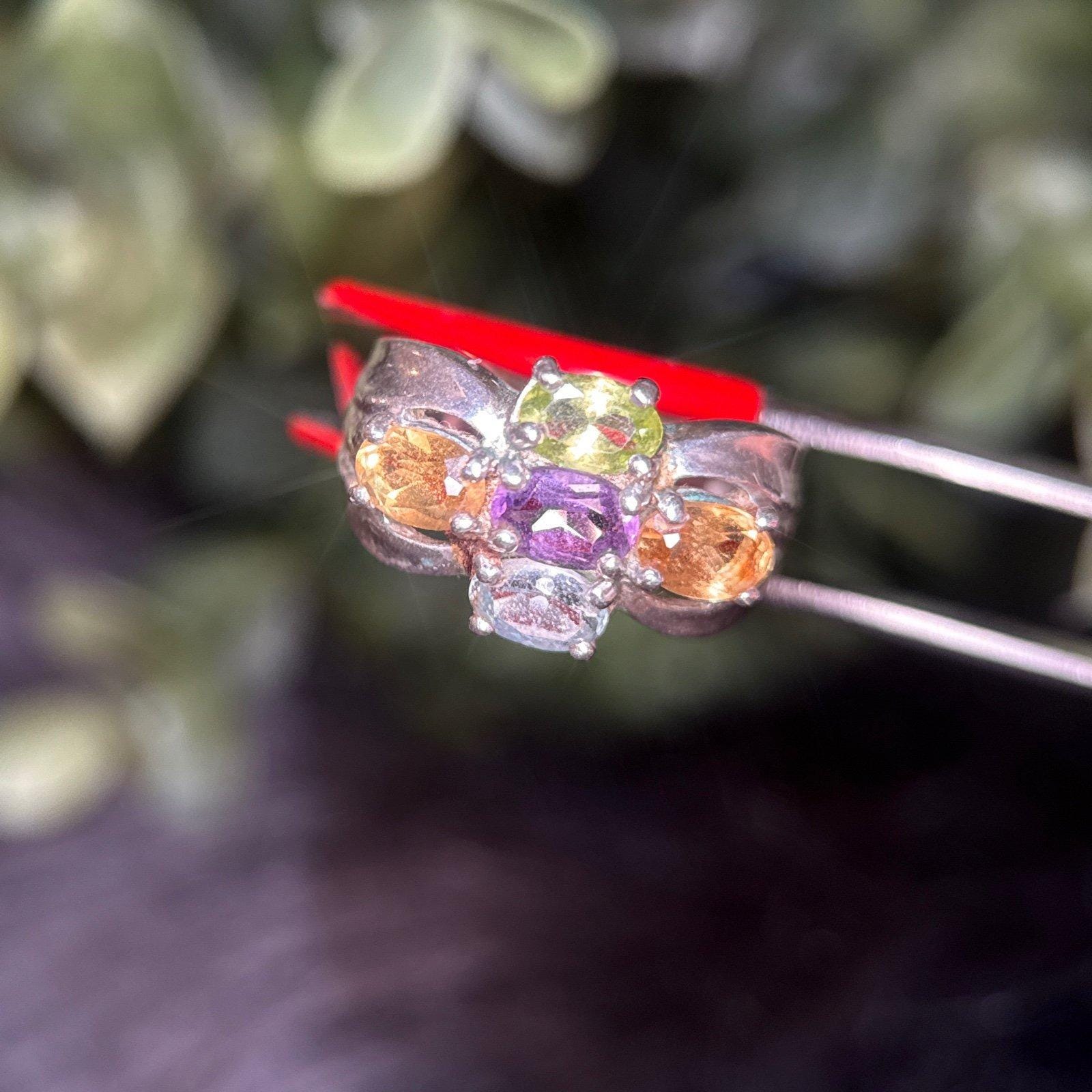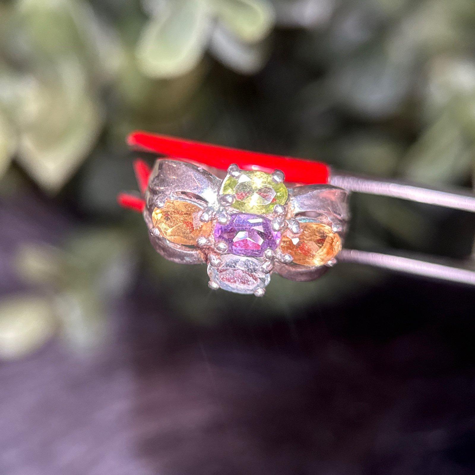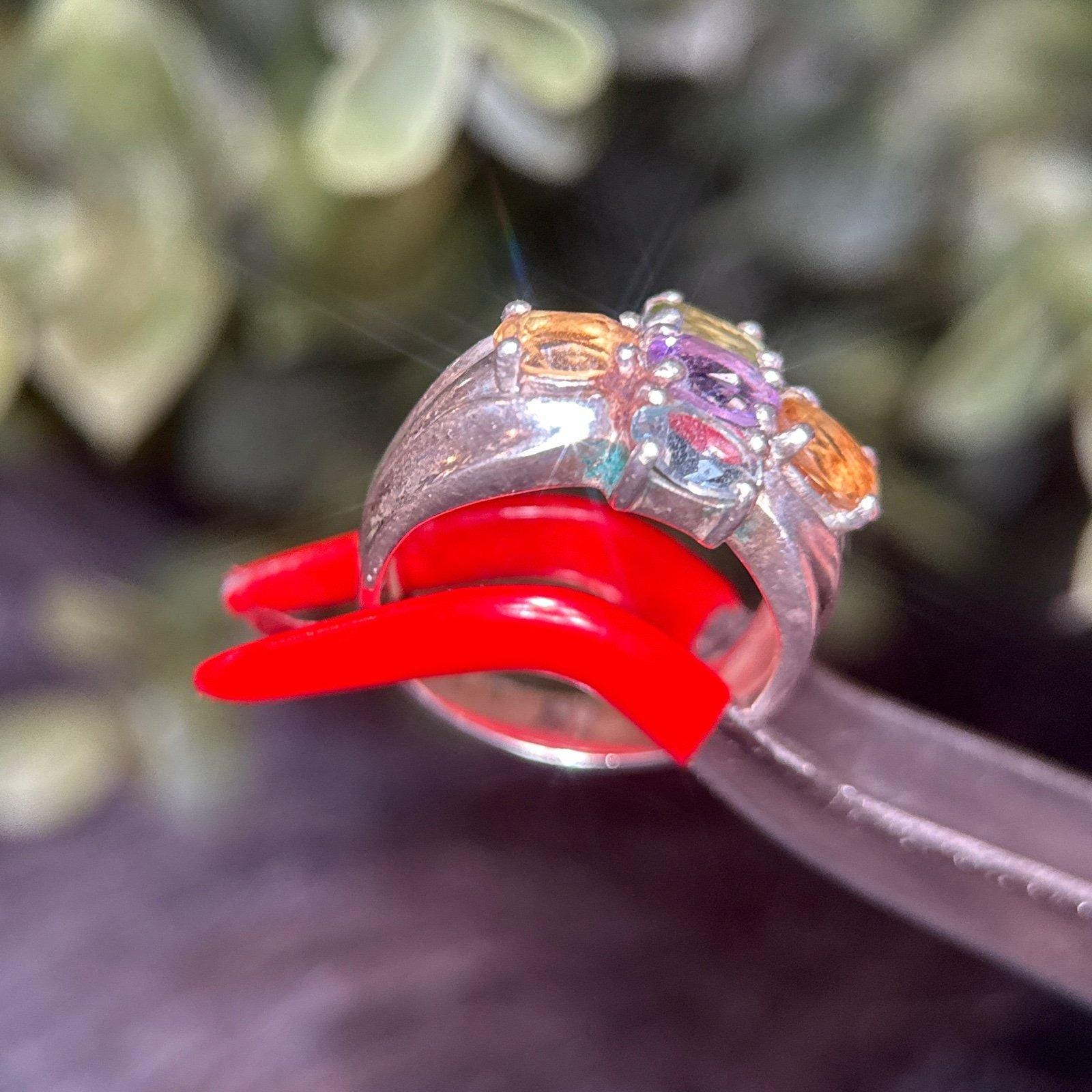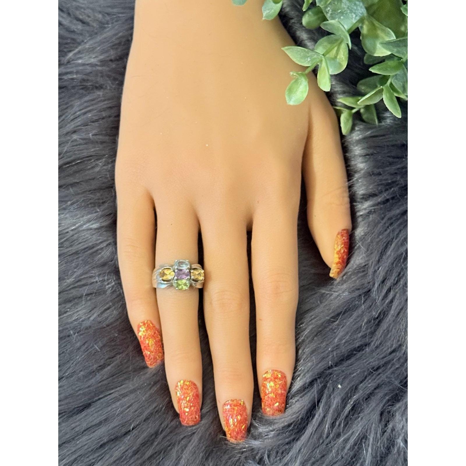 Sterling Silver 925 Multicolor Stones Ring.