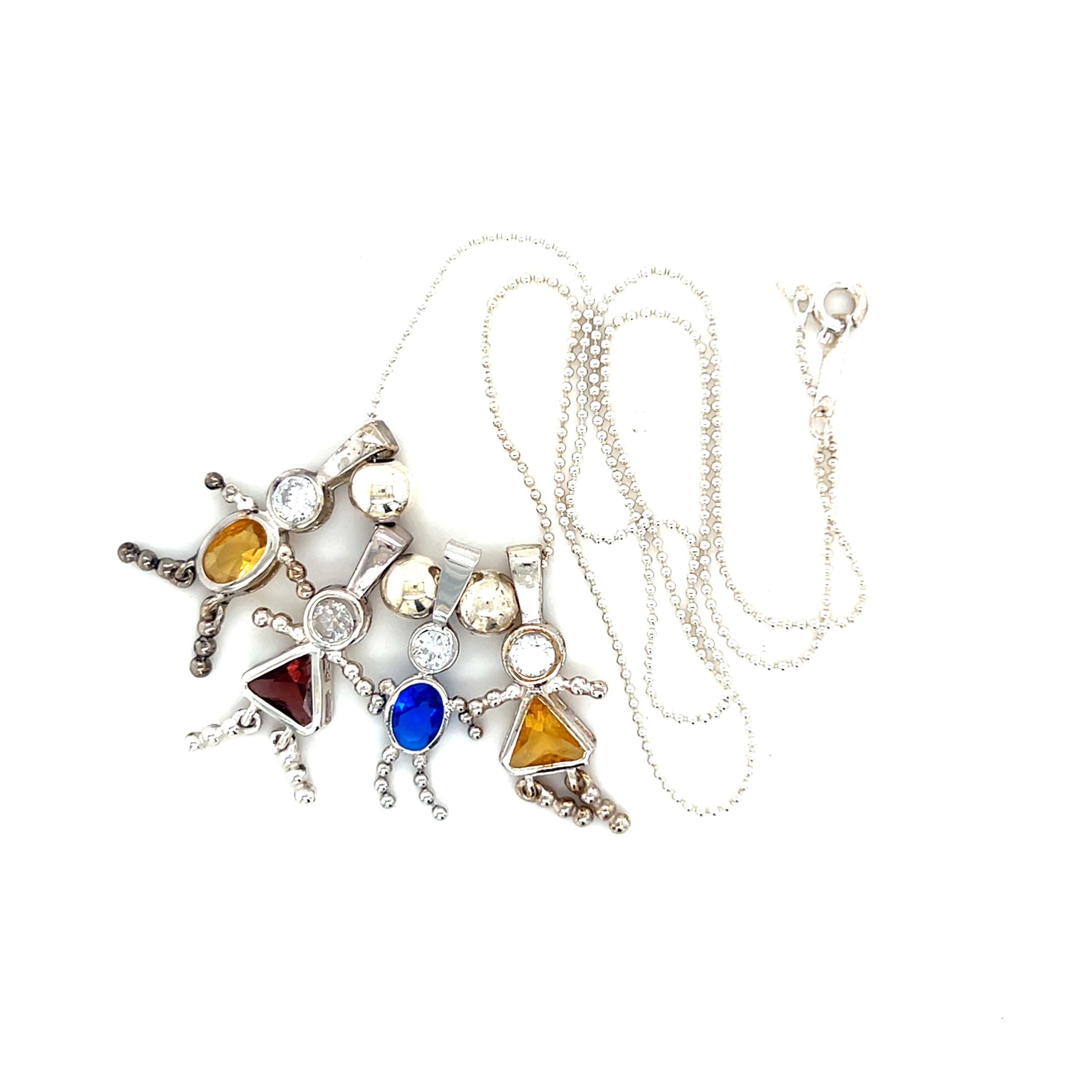 Sterling Silver 925 Boys/Girls Gemstones Pendant Necklace.