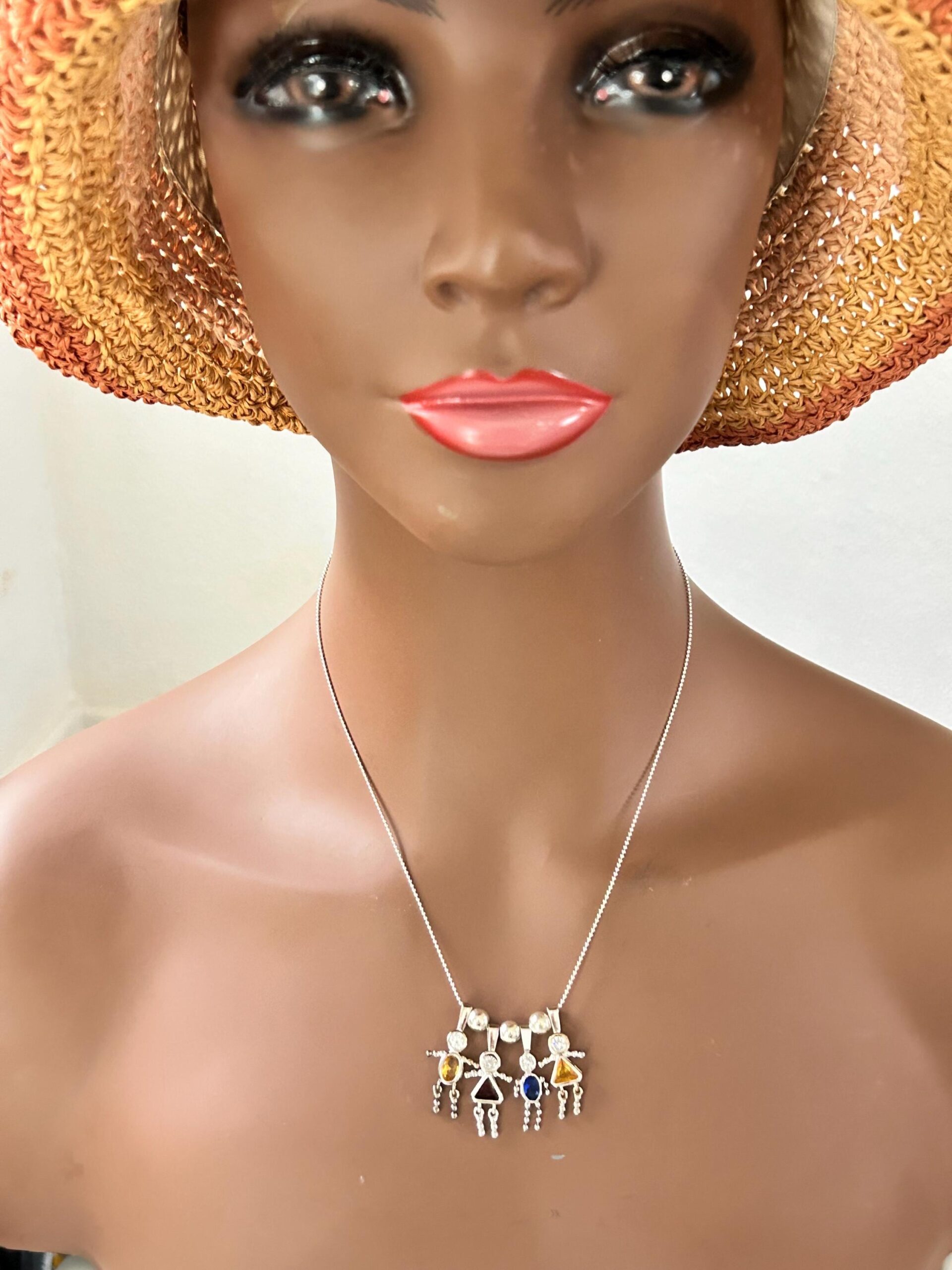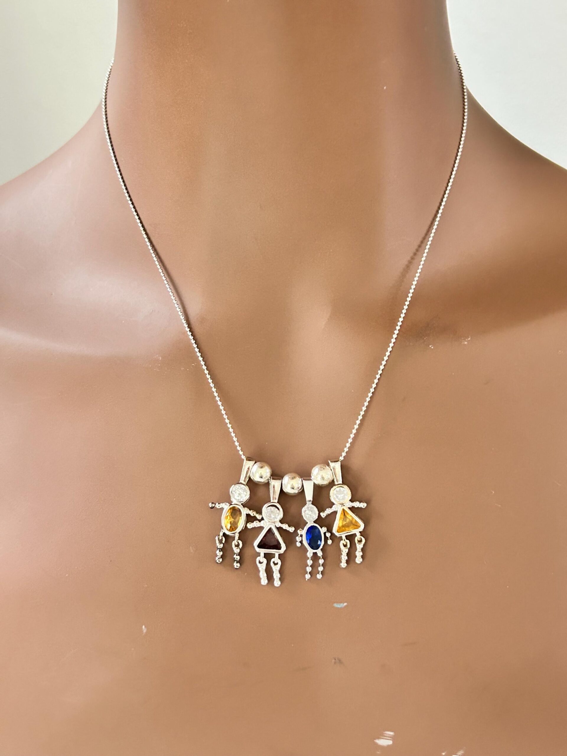 Sterling Silver 925 Boys/Girls Gemstones Pendant Necklace.