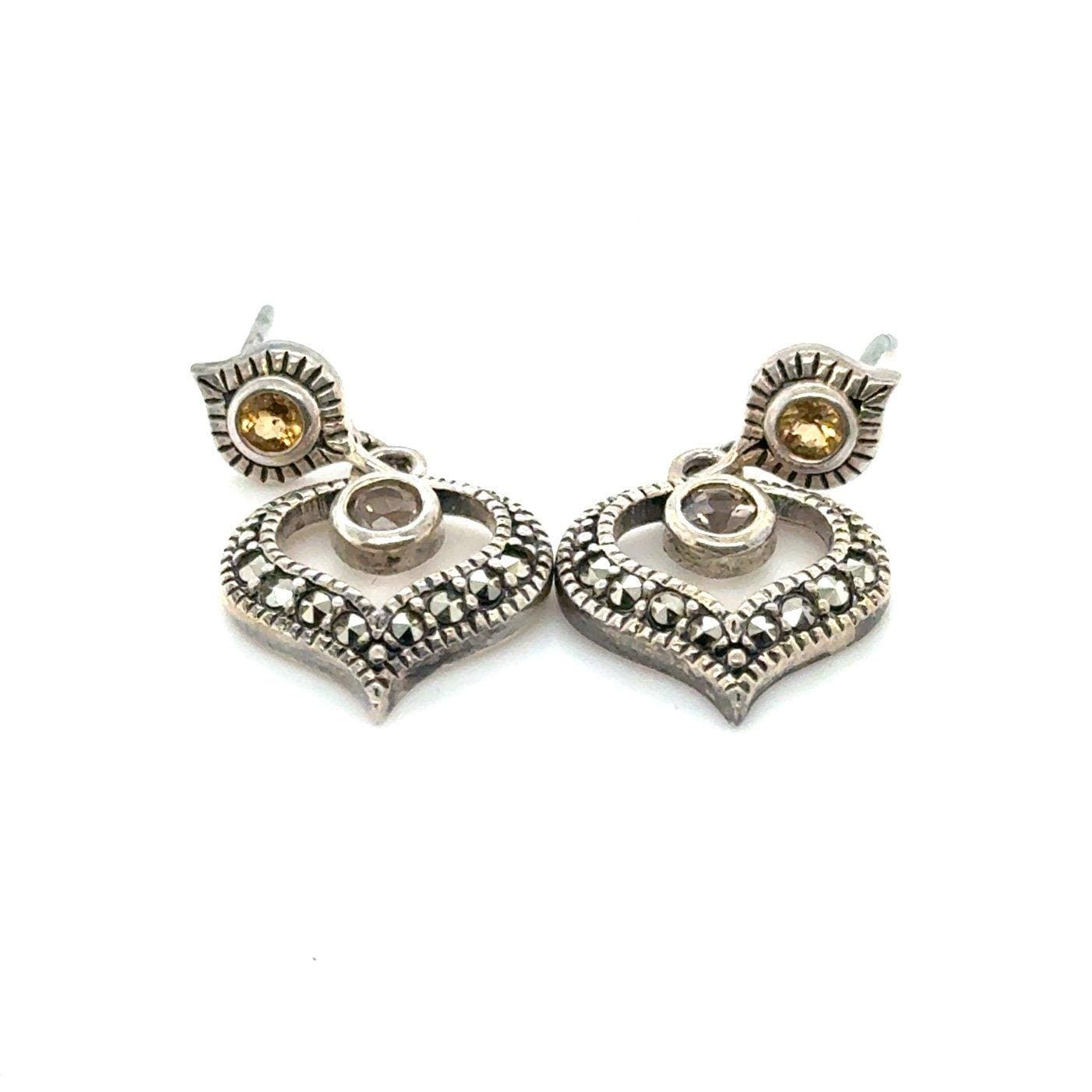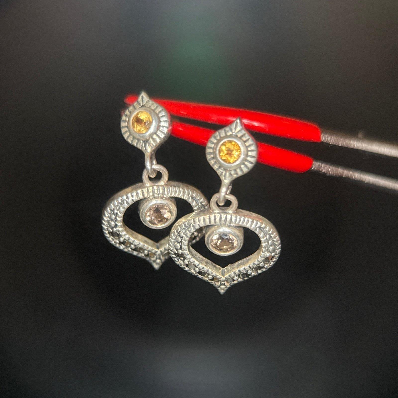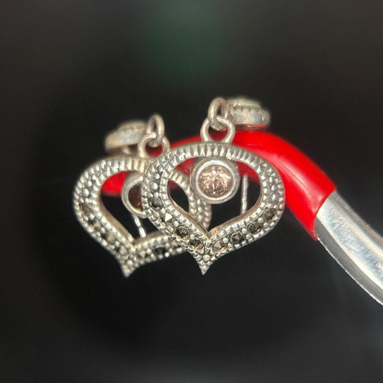 925 Silver Judith Jack Heart Shaped Stone Earrings .