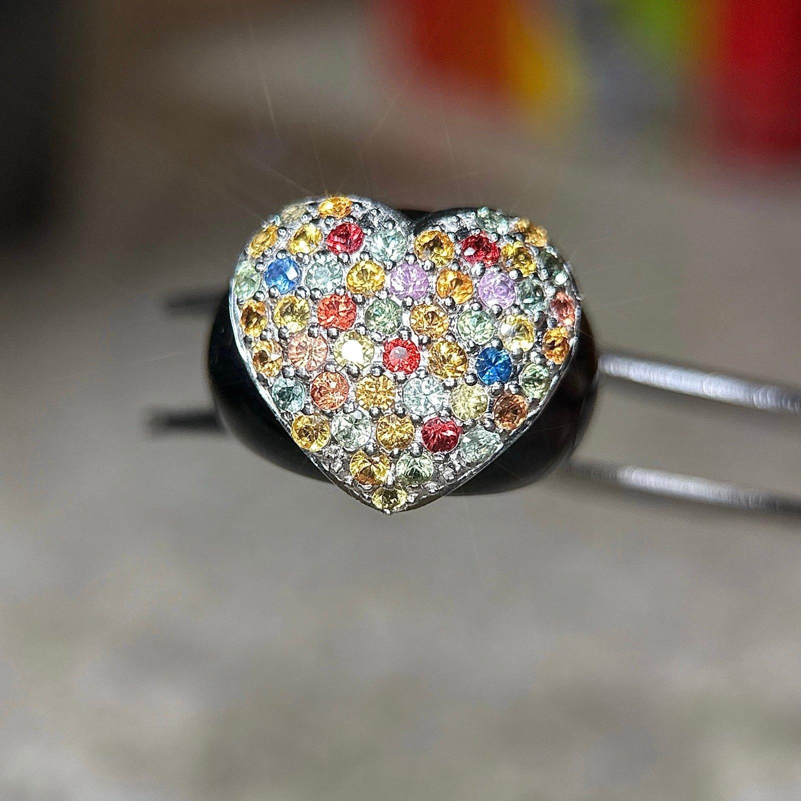 Be the first to review “925 Silver Pave Gemstones Heart Ring”