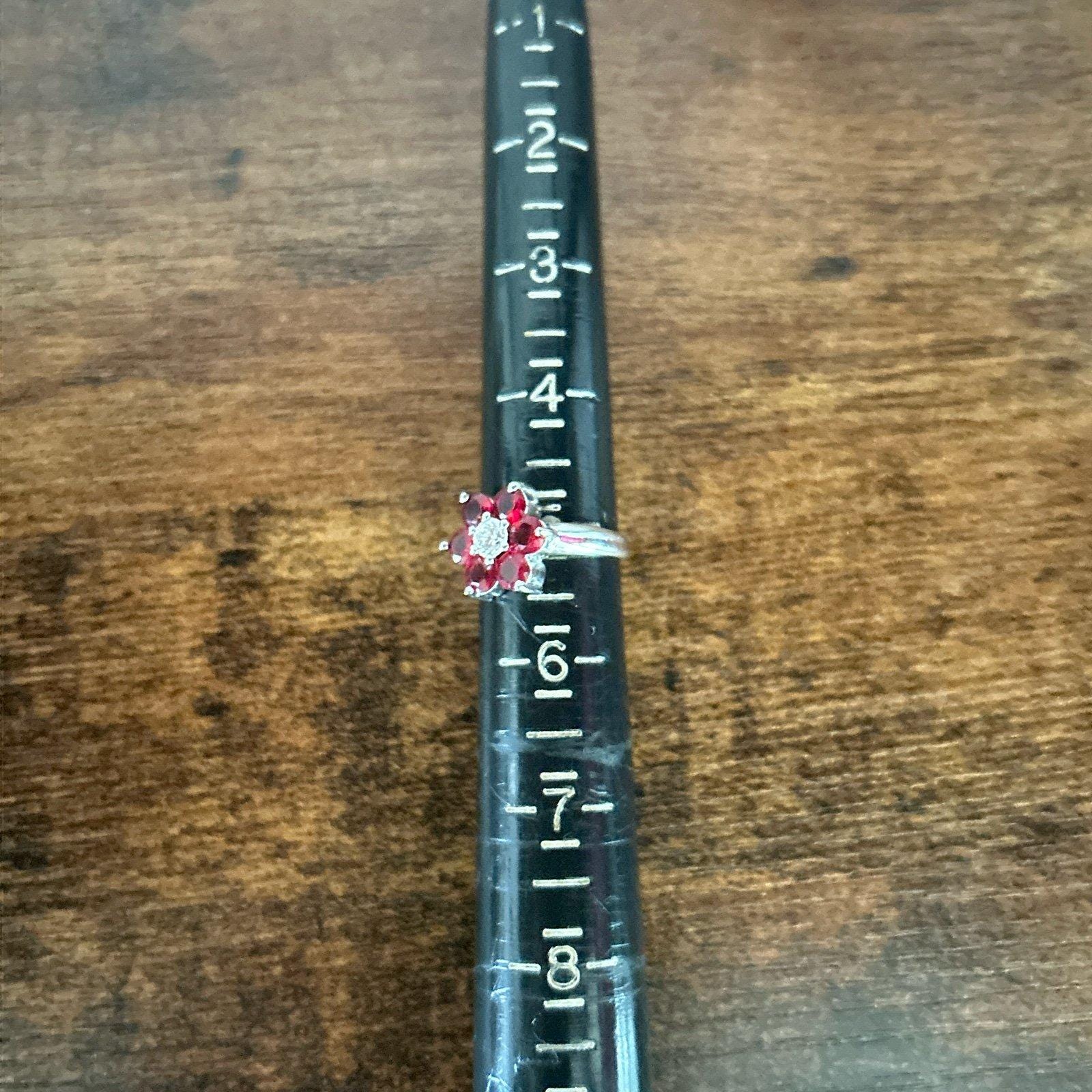 925 Silver Red/White Flower Ring