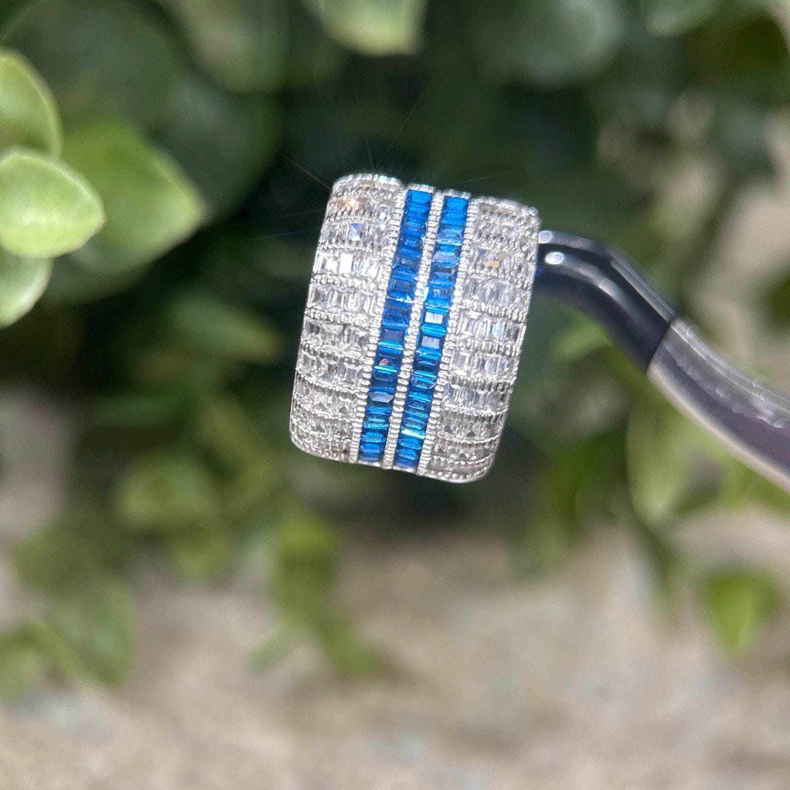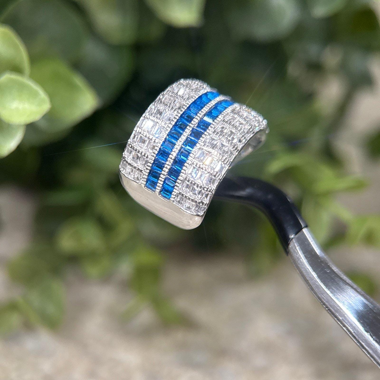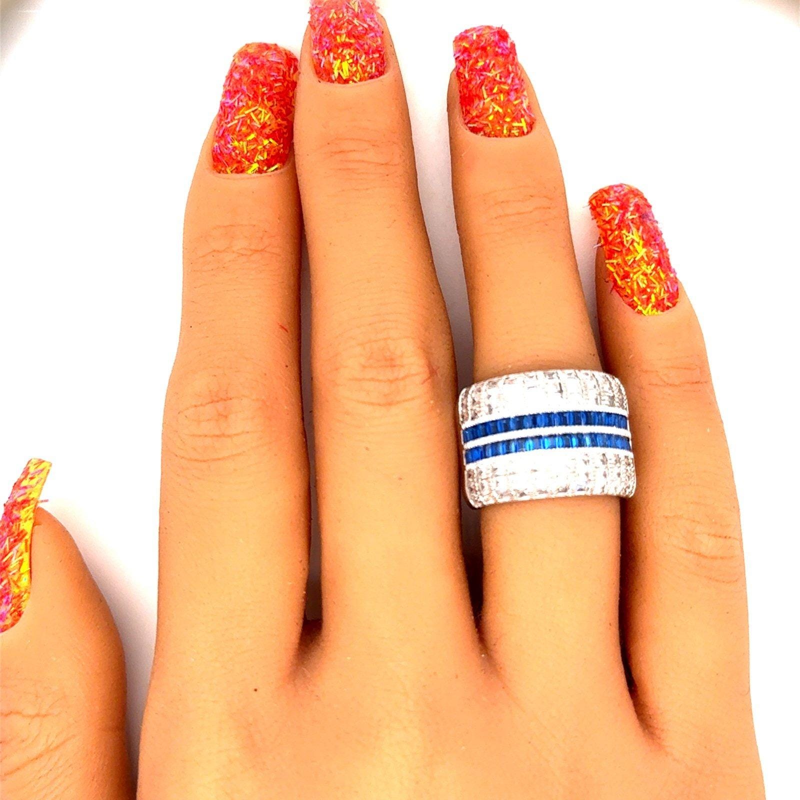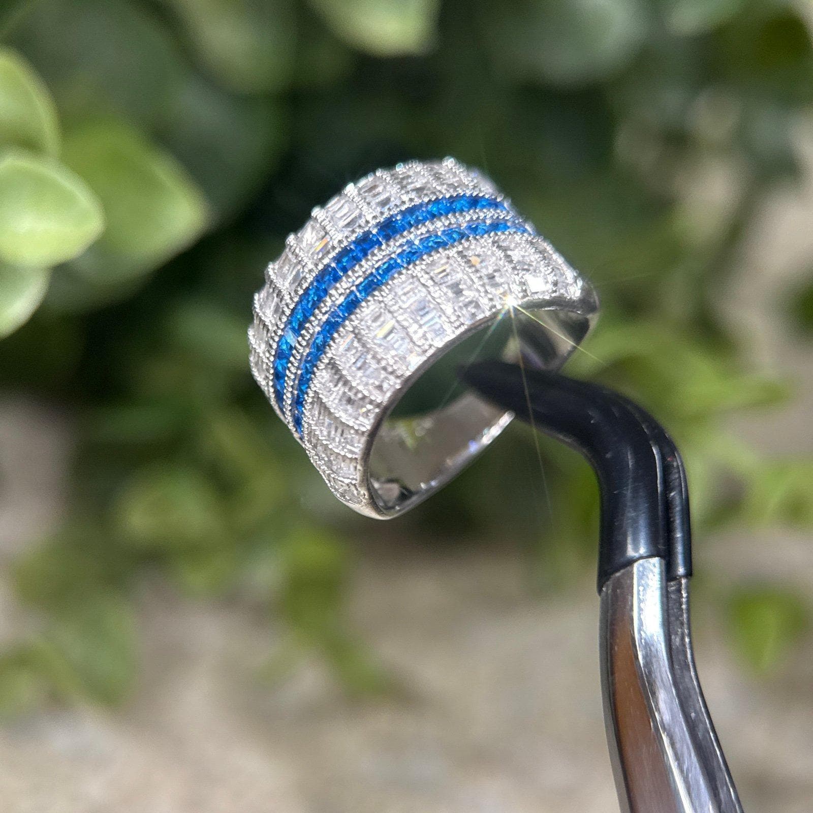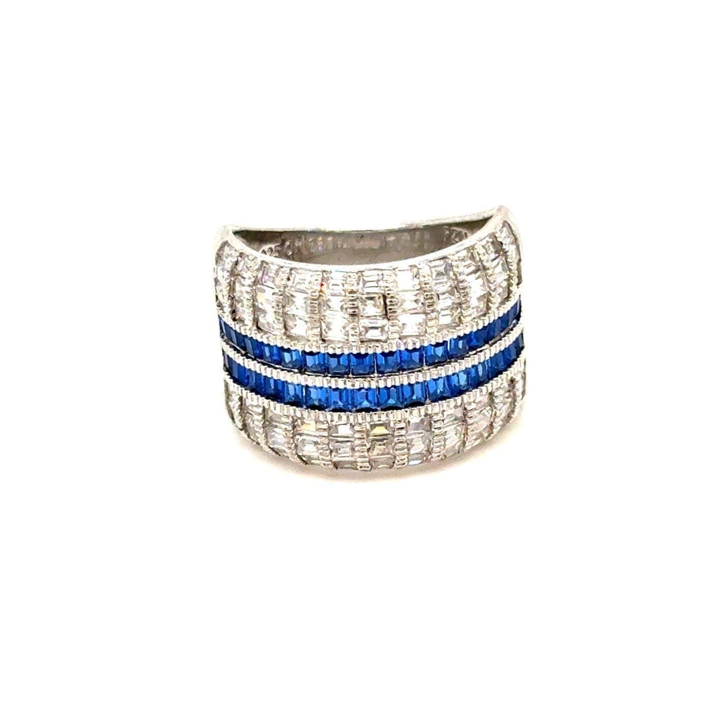 Sterling Silver 925 Rows of Syn. Blue Sapphires/Cz’s Ring.