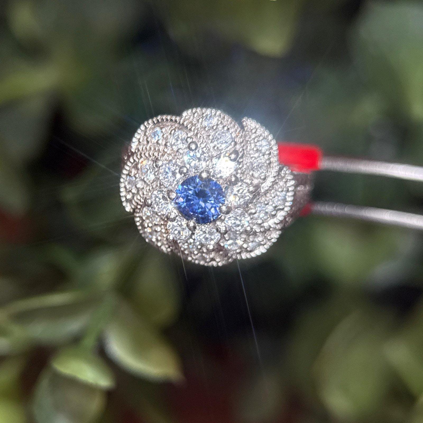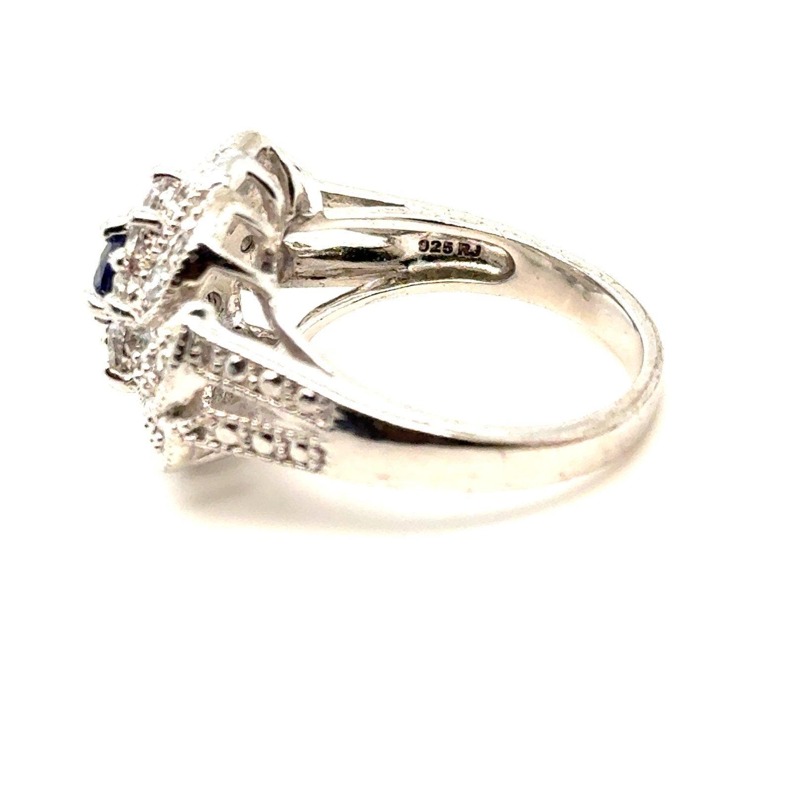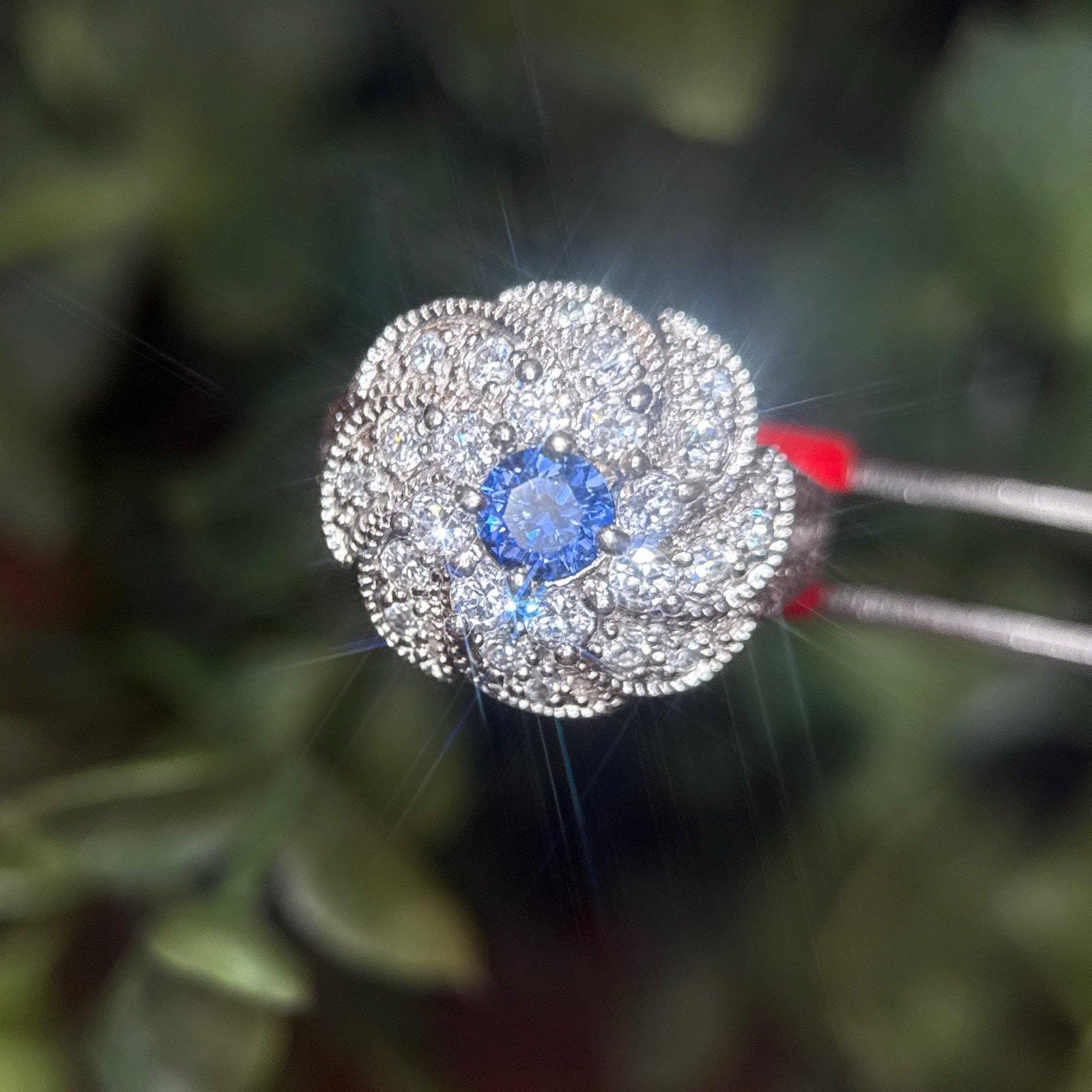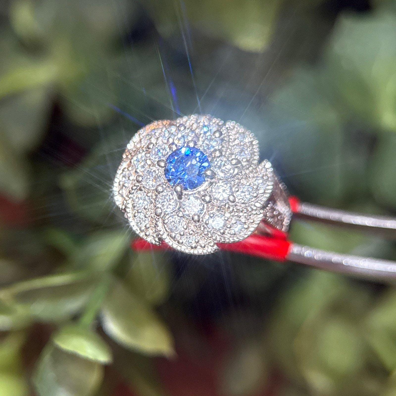 Sterling Silver Synthetic Sapphire and CZ’s Flower Ring.