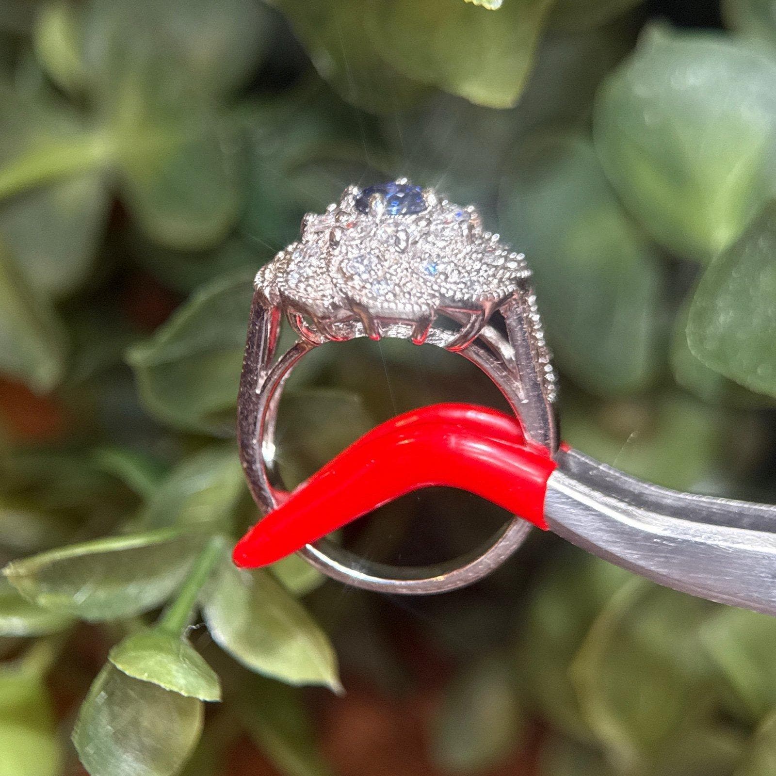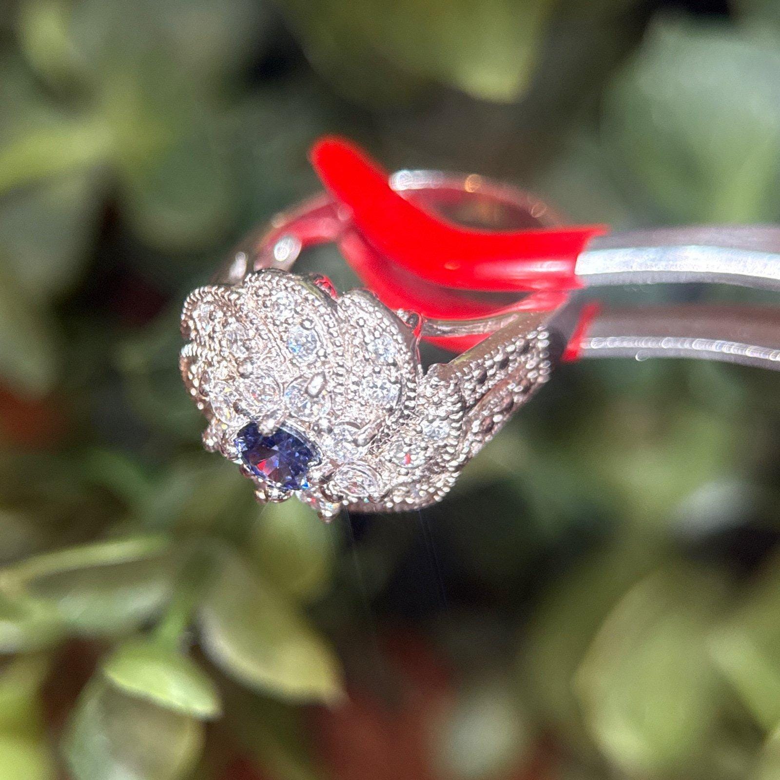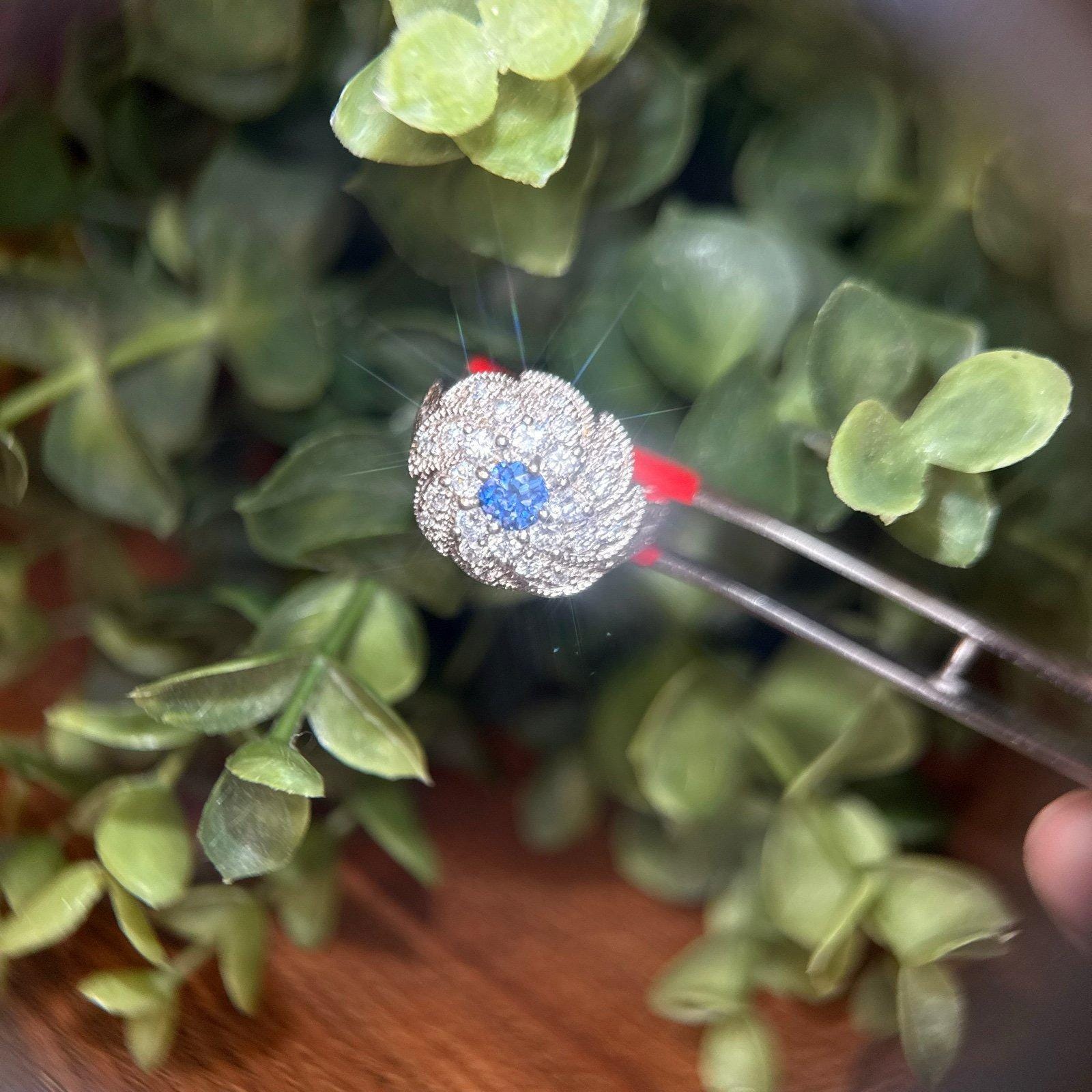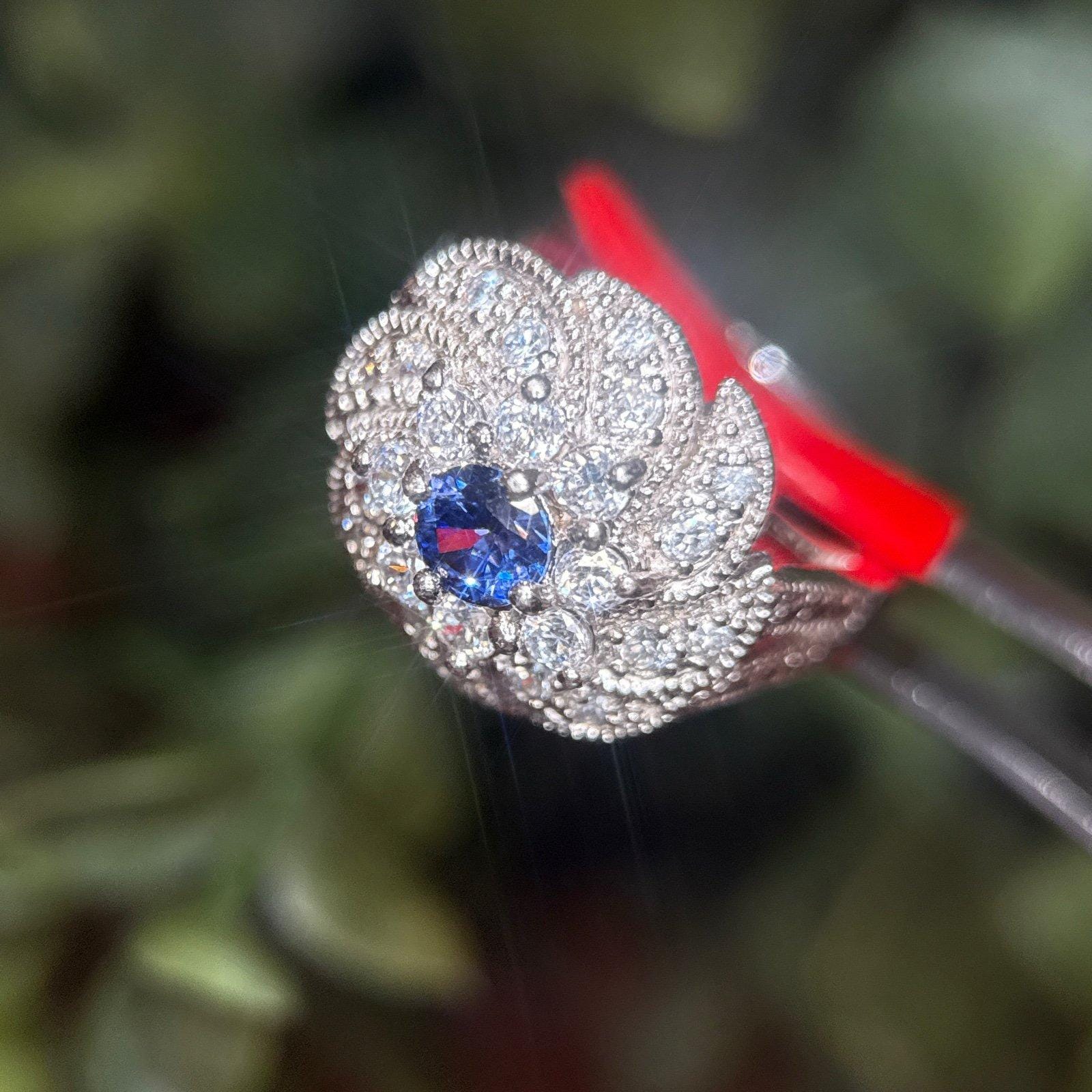 Sterling Silver Synthetic Sapphire and CZ’s Flower Ring.