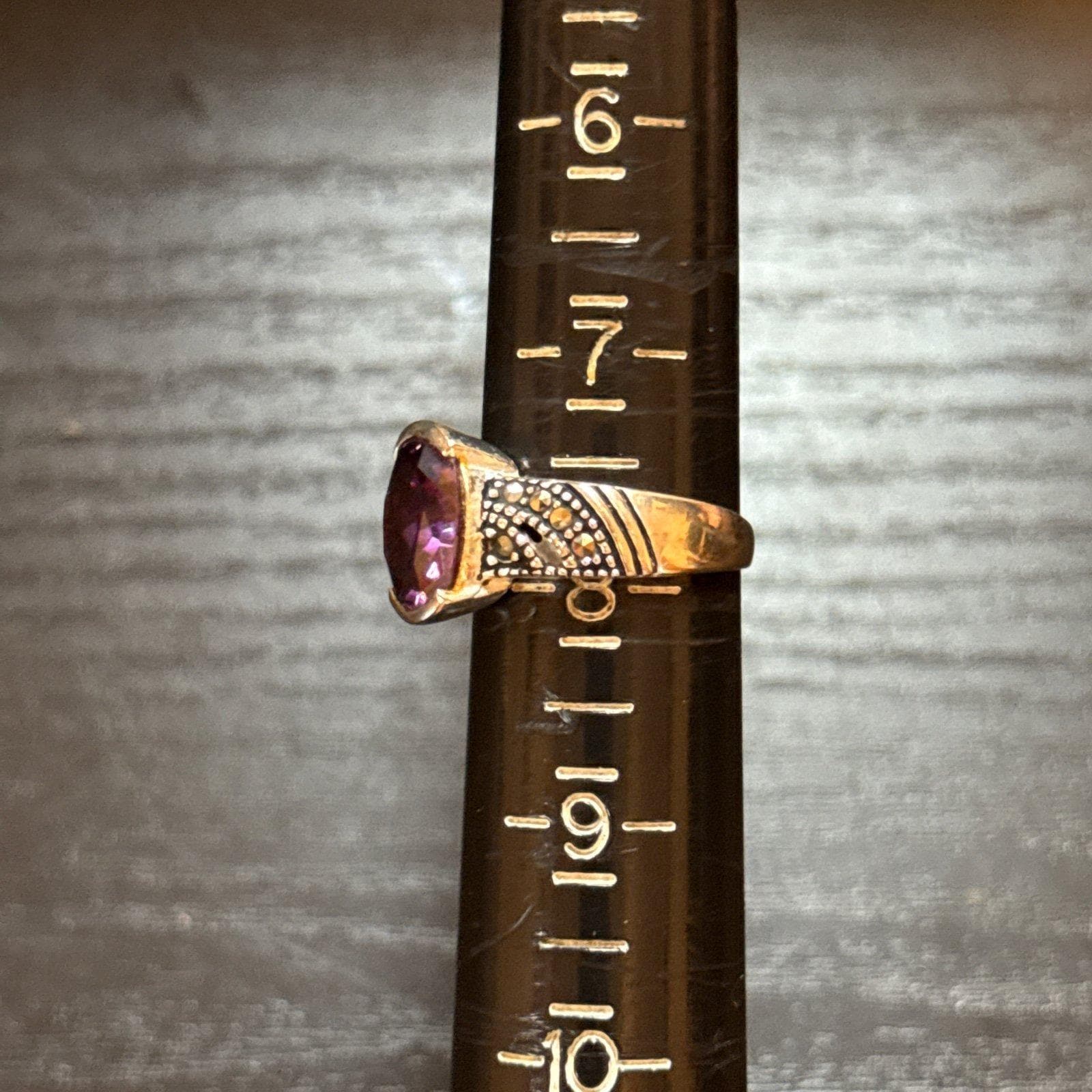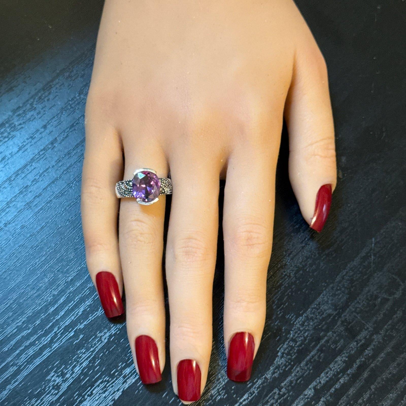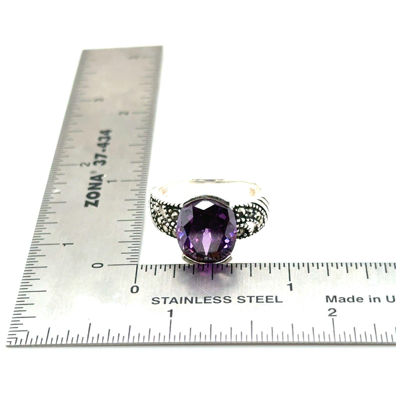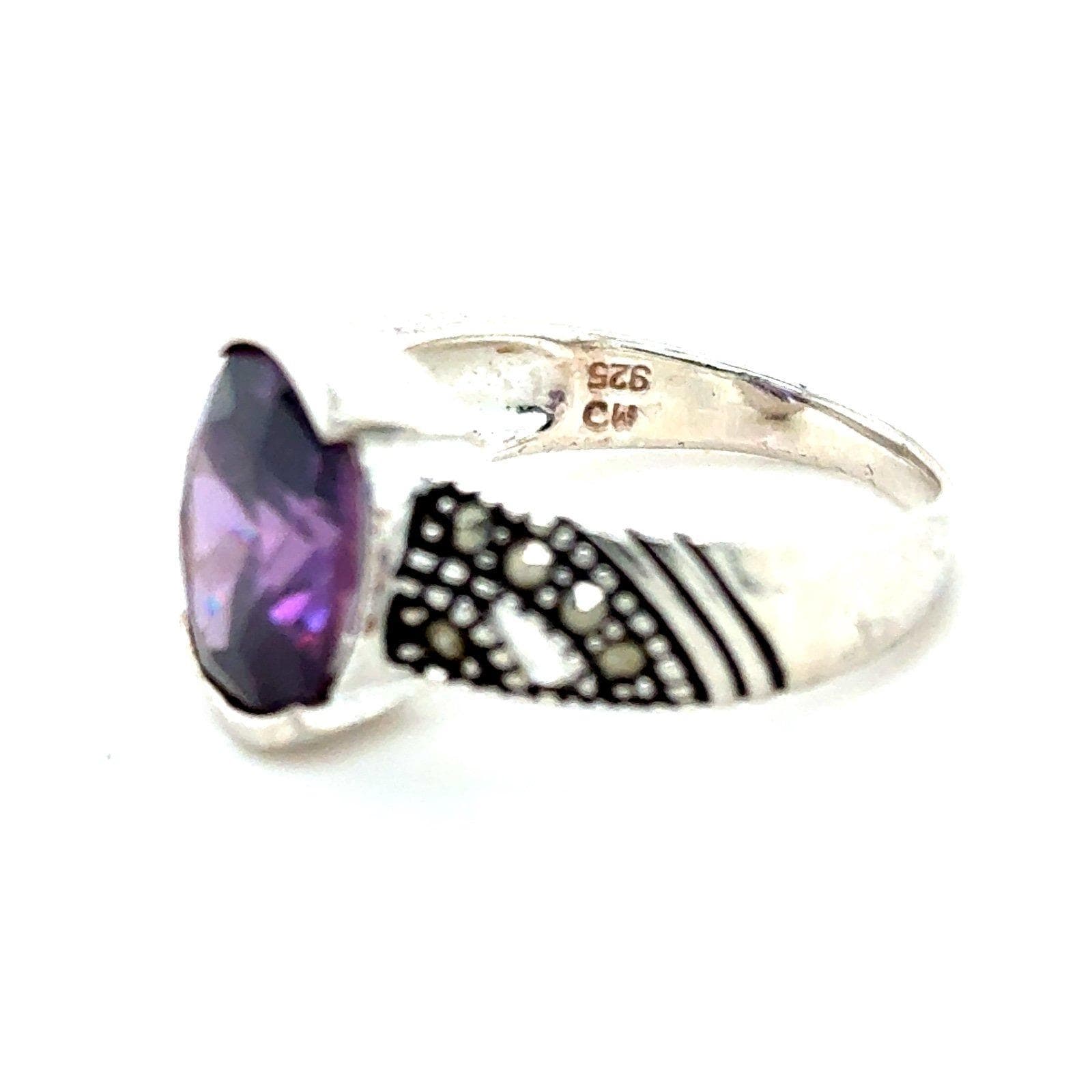 Sterling Silver 925 Single Amethyst/Marcasite Ring.