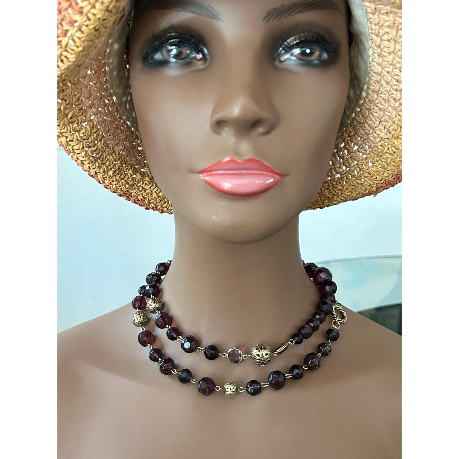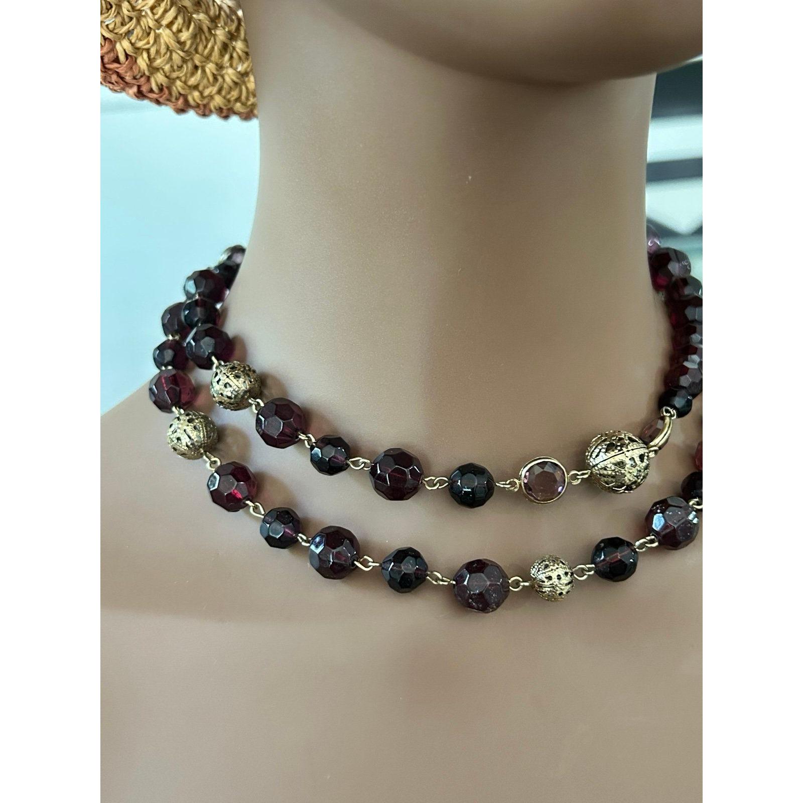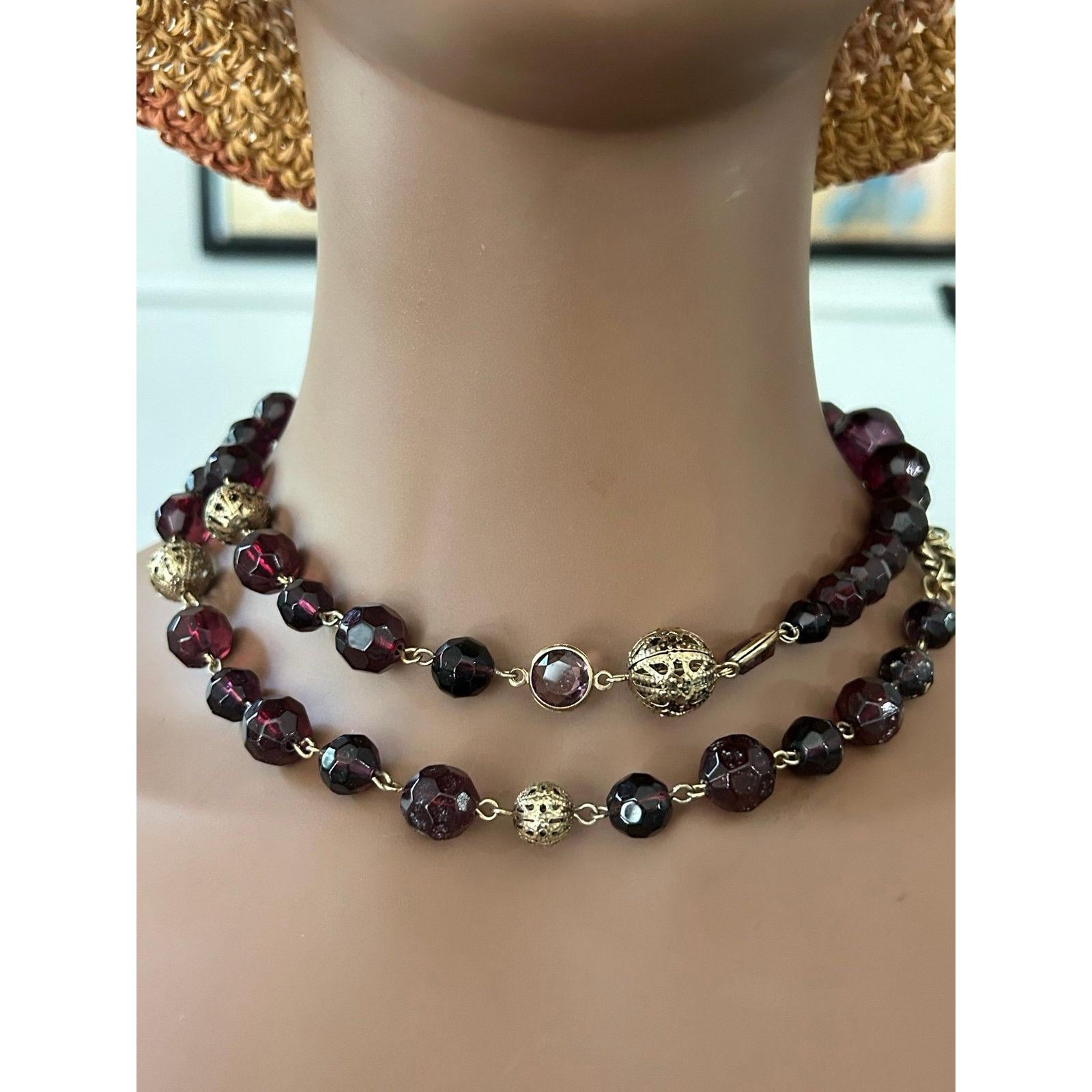 Long Amerhsyts Colored Monet Necklace Measures 36” L Vintage Preowned