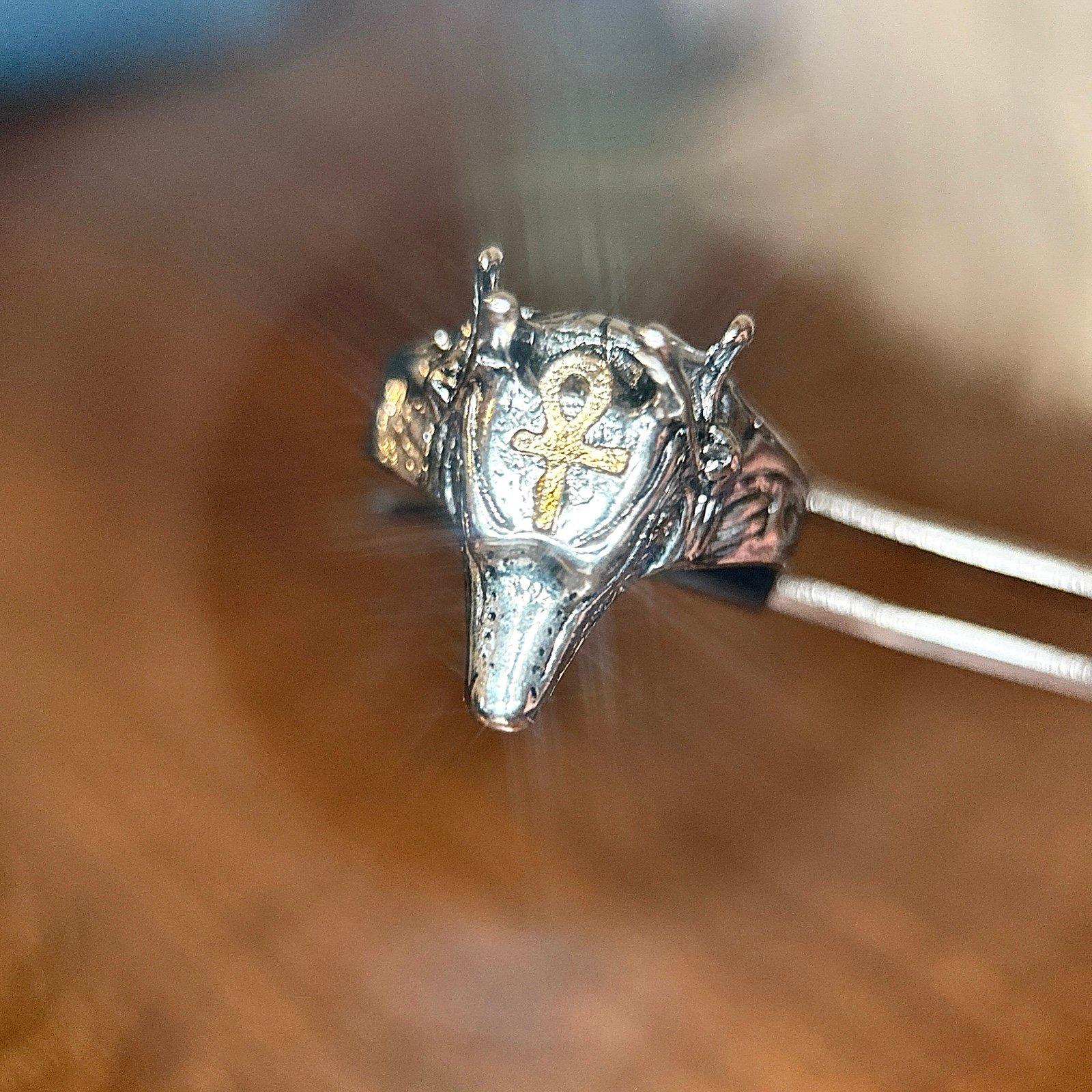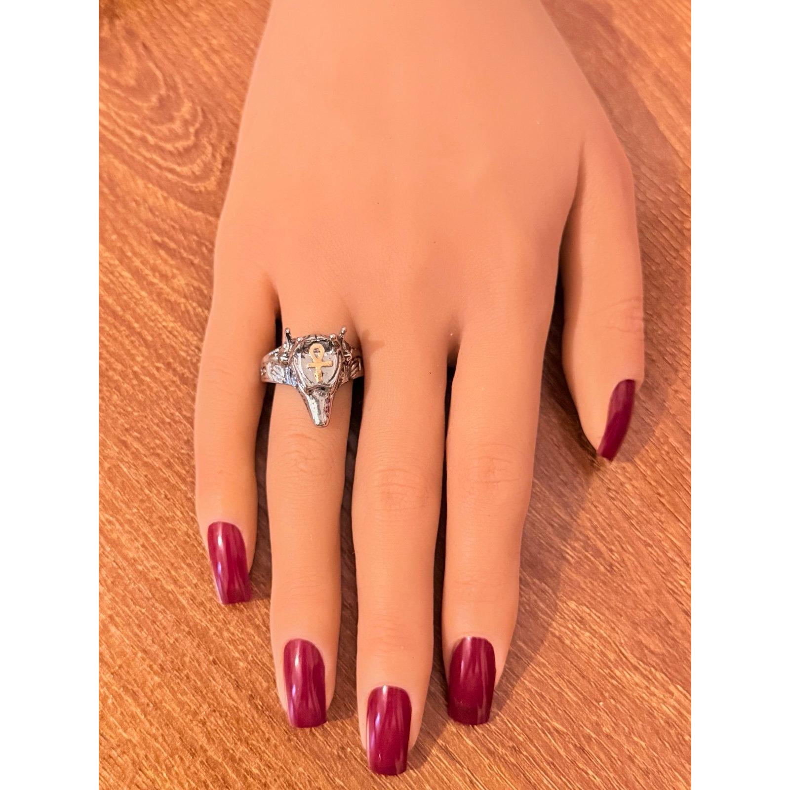 Animal Head with Gold Accent Cross Ring Excellent condition Size 10