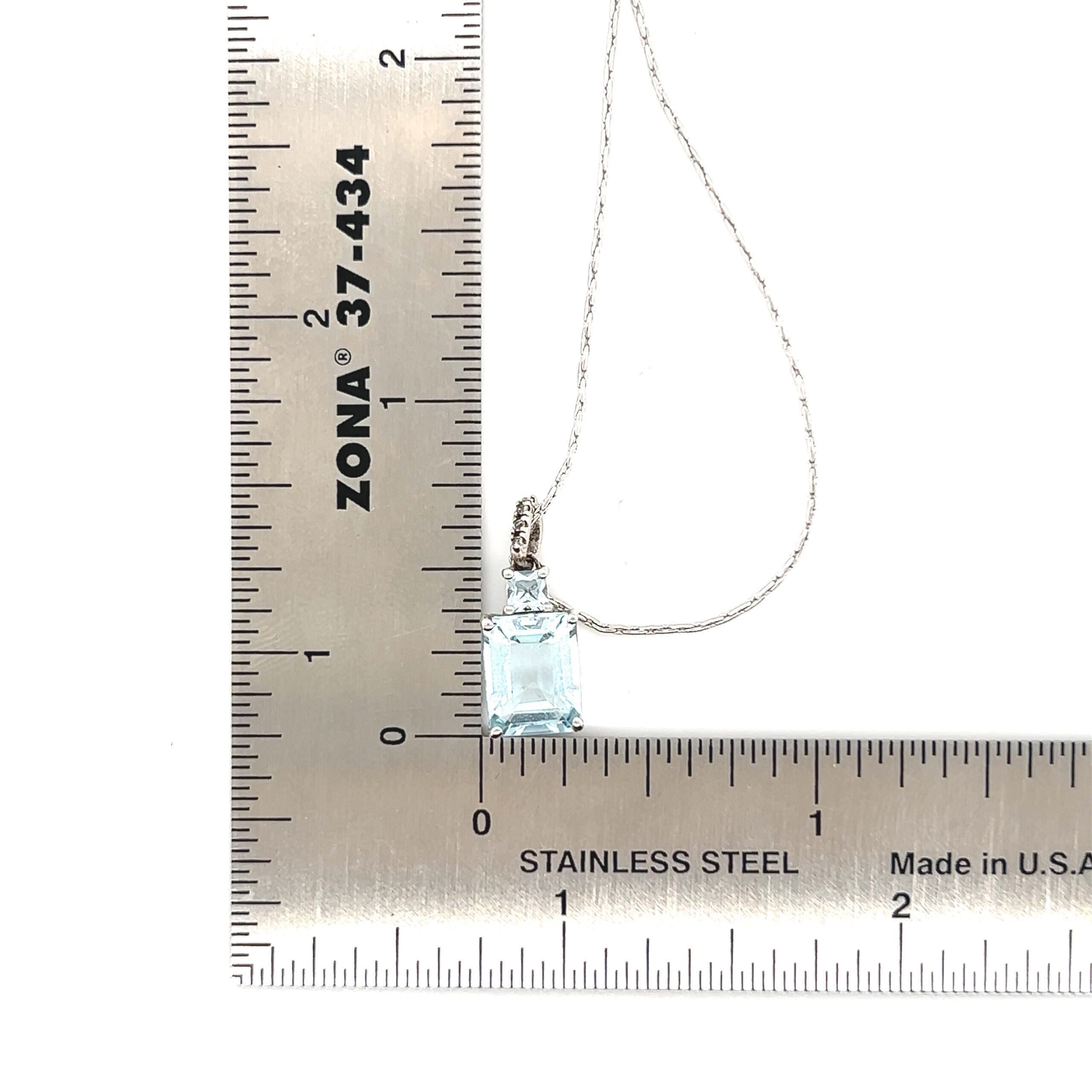 The pendant is Sterling silver 925 with aquamarine and diamonds. The chain is not stamped and I believe it’s not real silver, only the pendant.