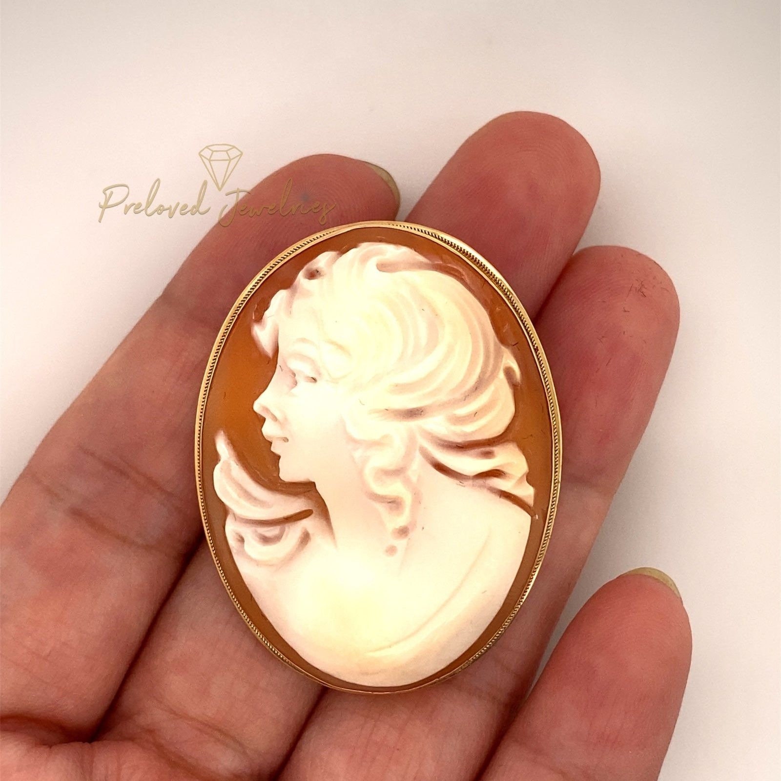 Real 14k Yellow Gold Cameo Pendant/Brooch , NOT GOLD PLATED OR GOLD FILLED.