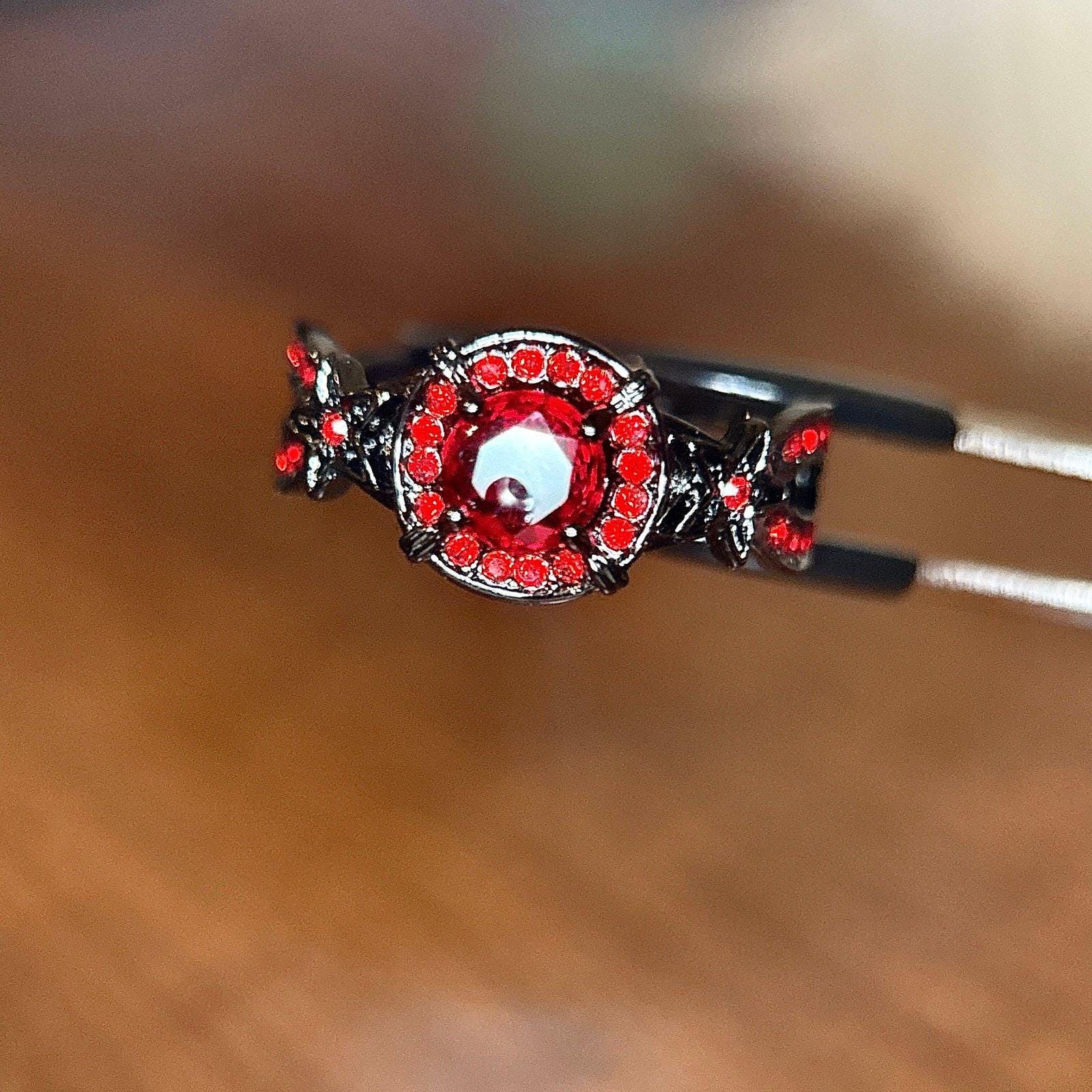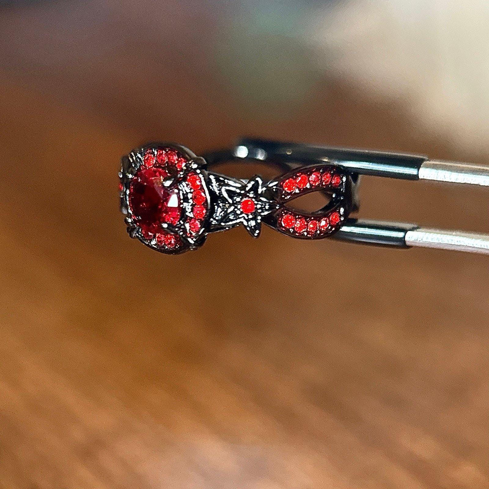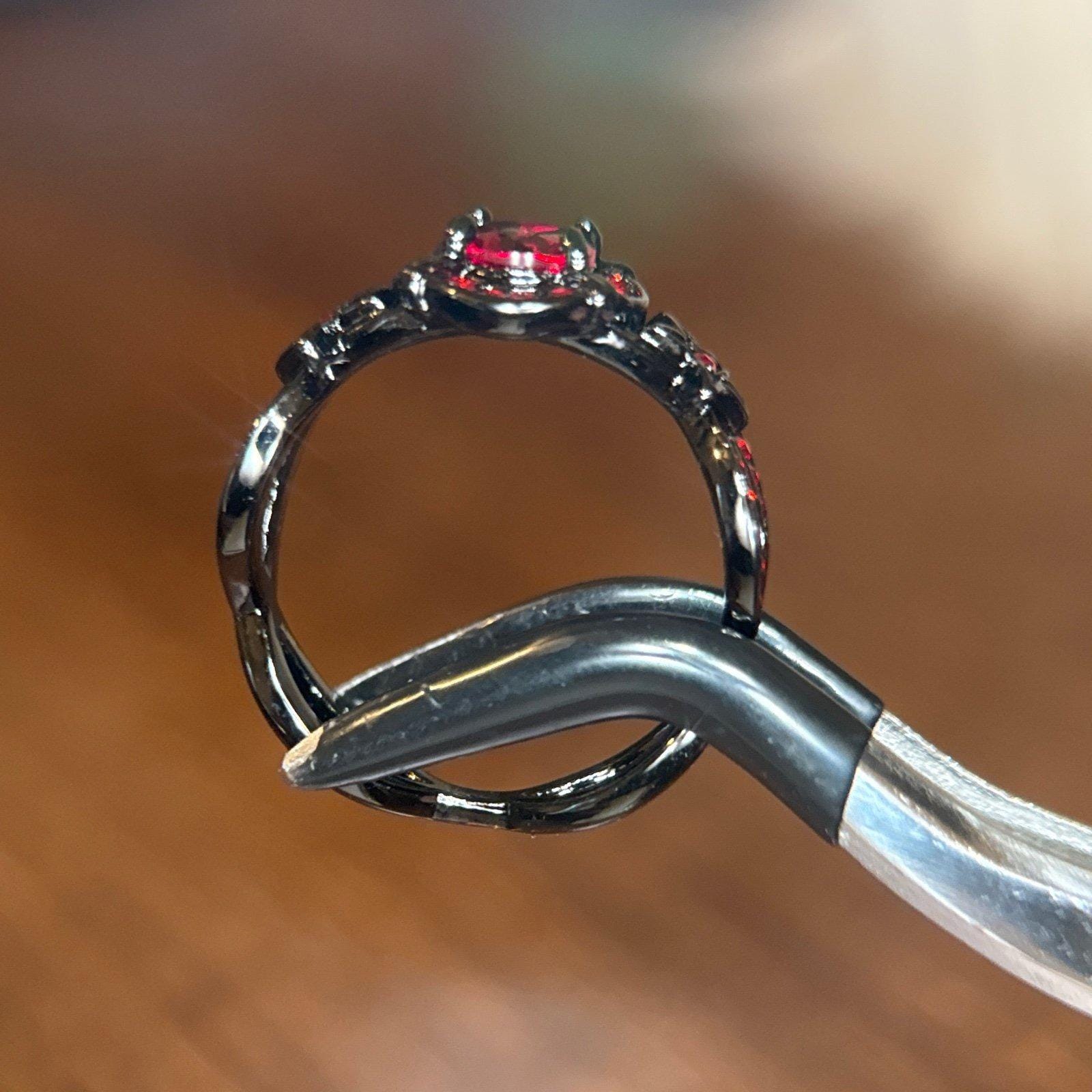 Black band faux garnet color RingExcellent condition Sz 9.5
