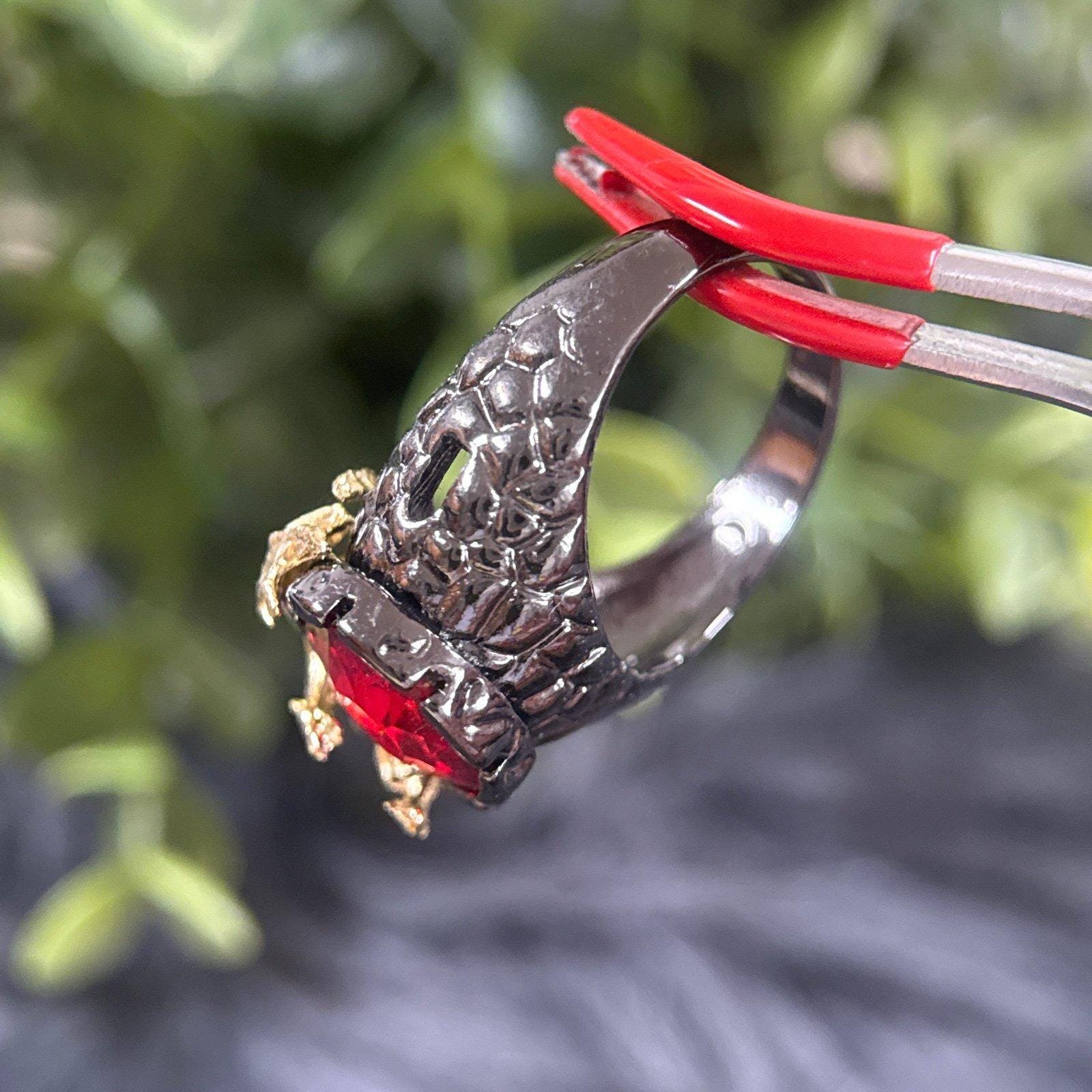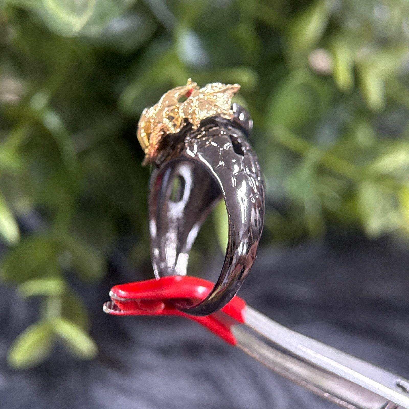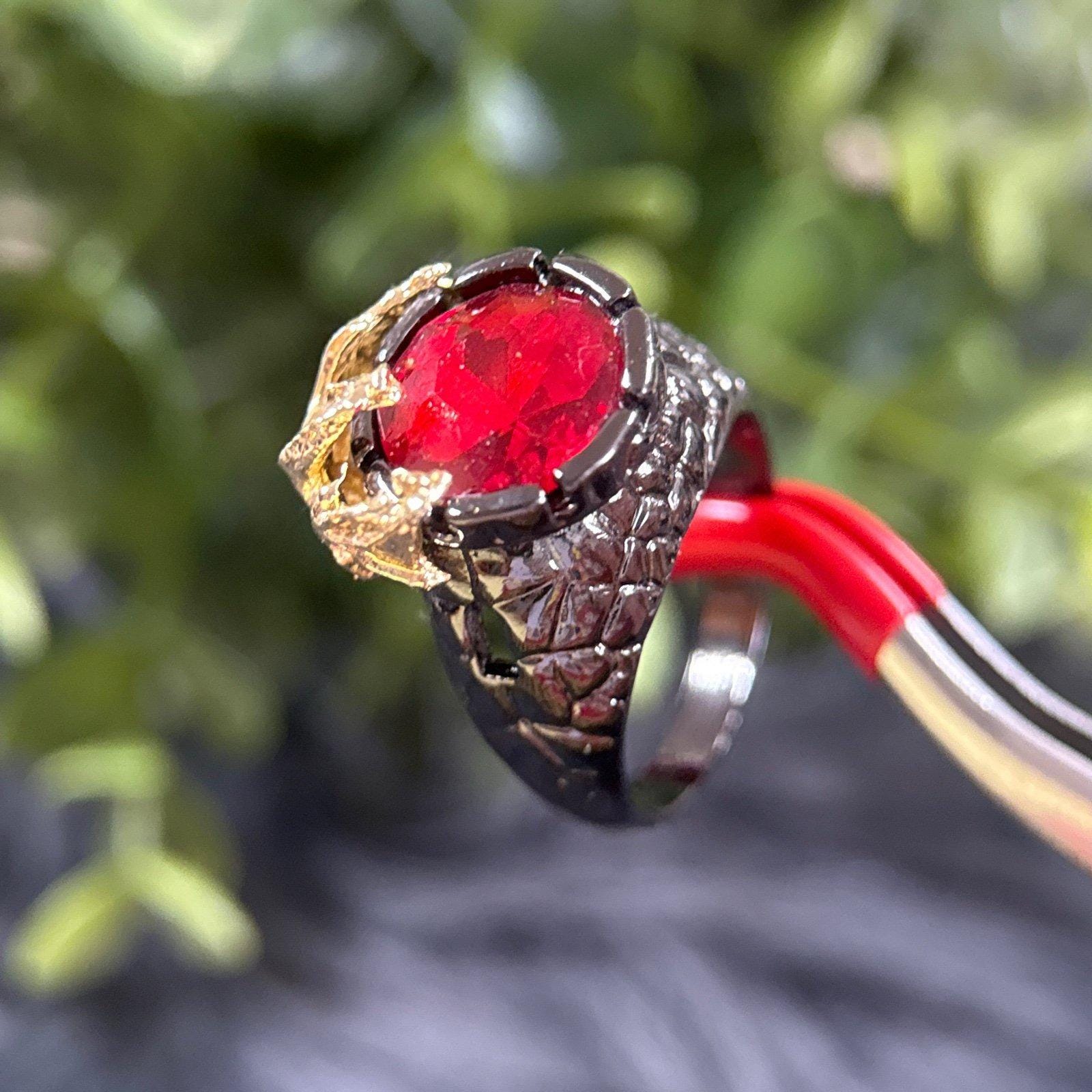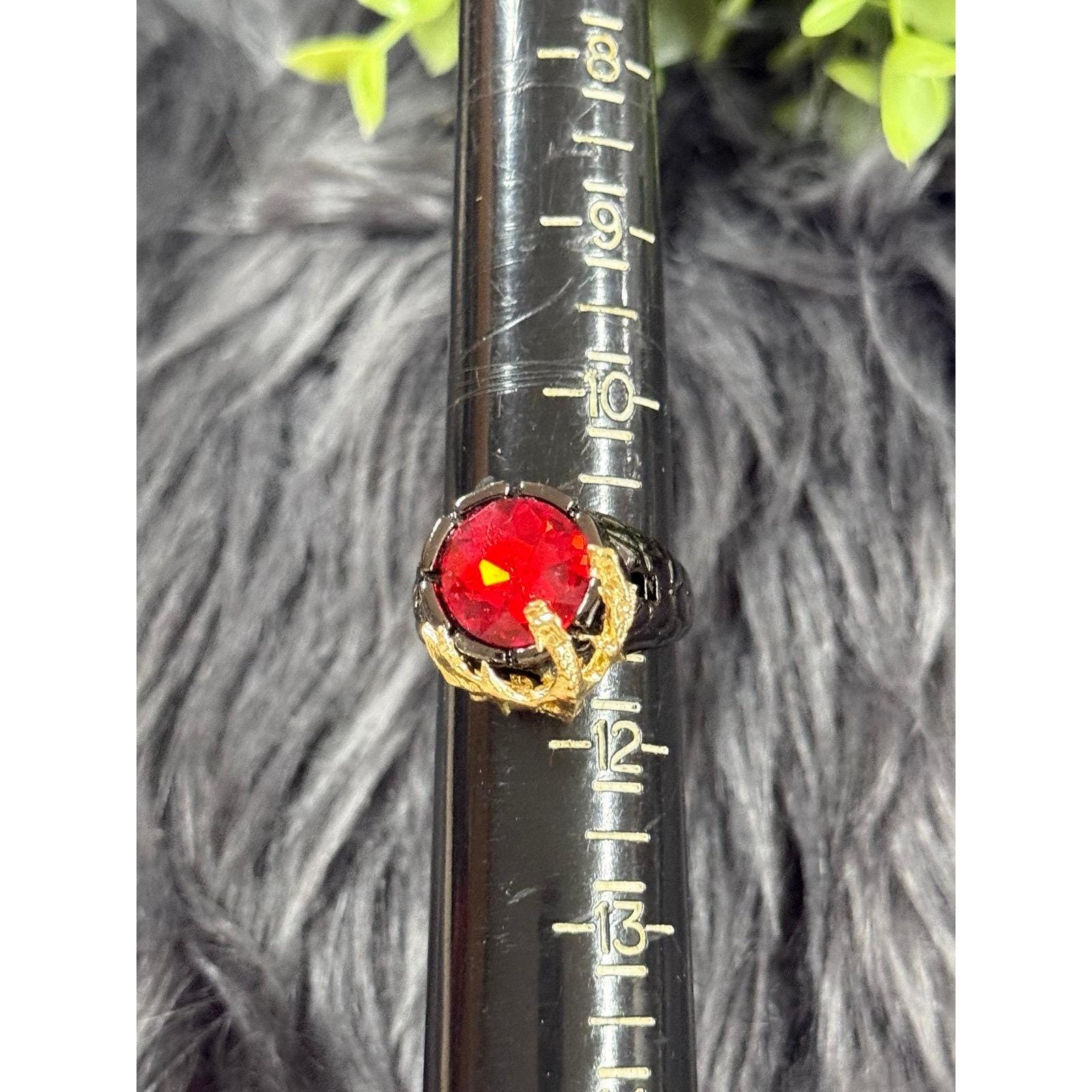 Be the first to review “Black Band Ring Faux Garnet With Gold Accent”