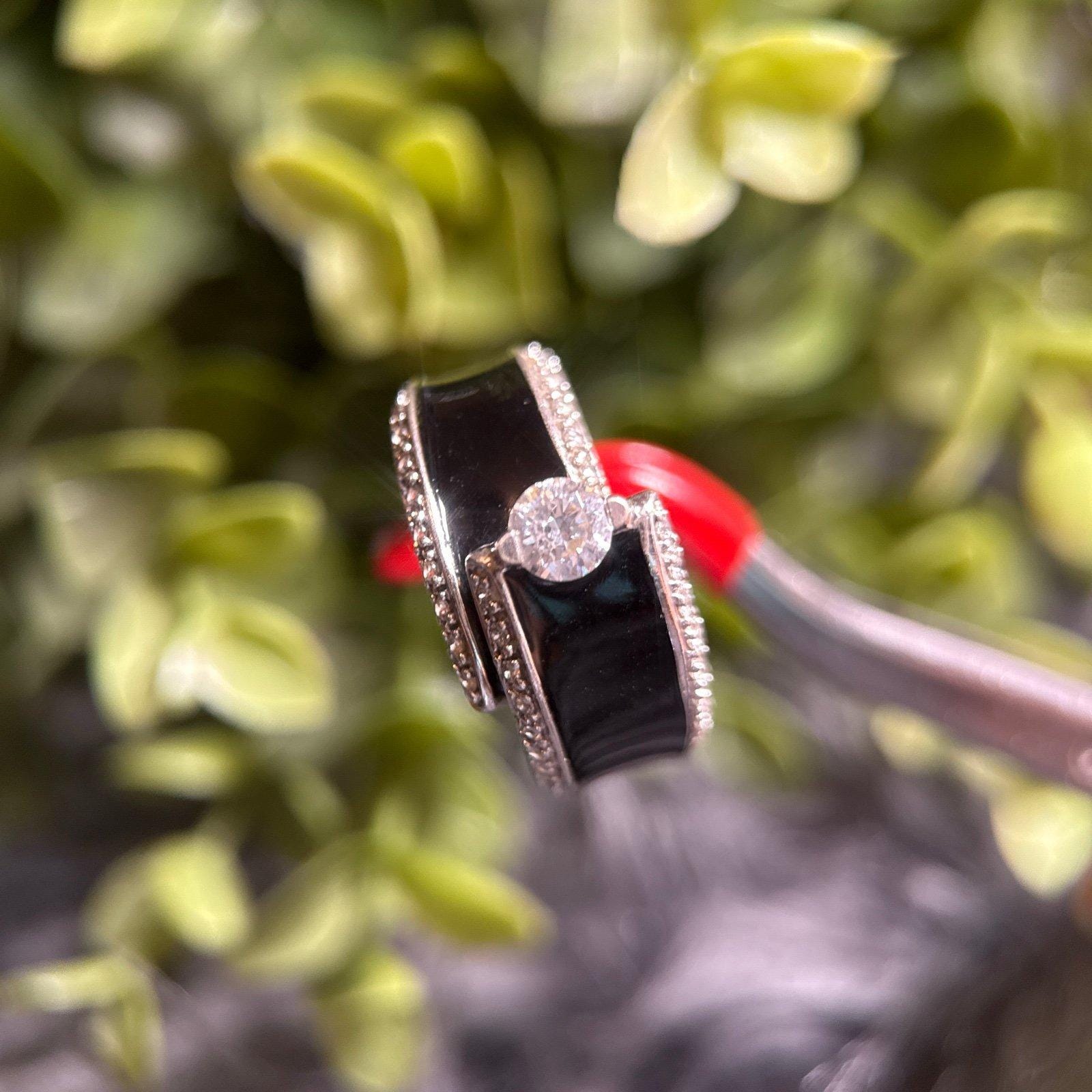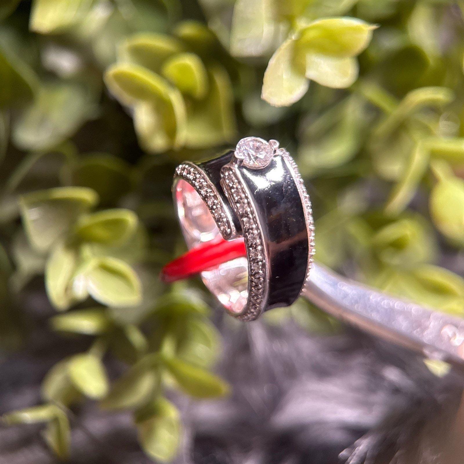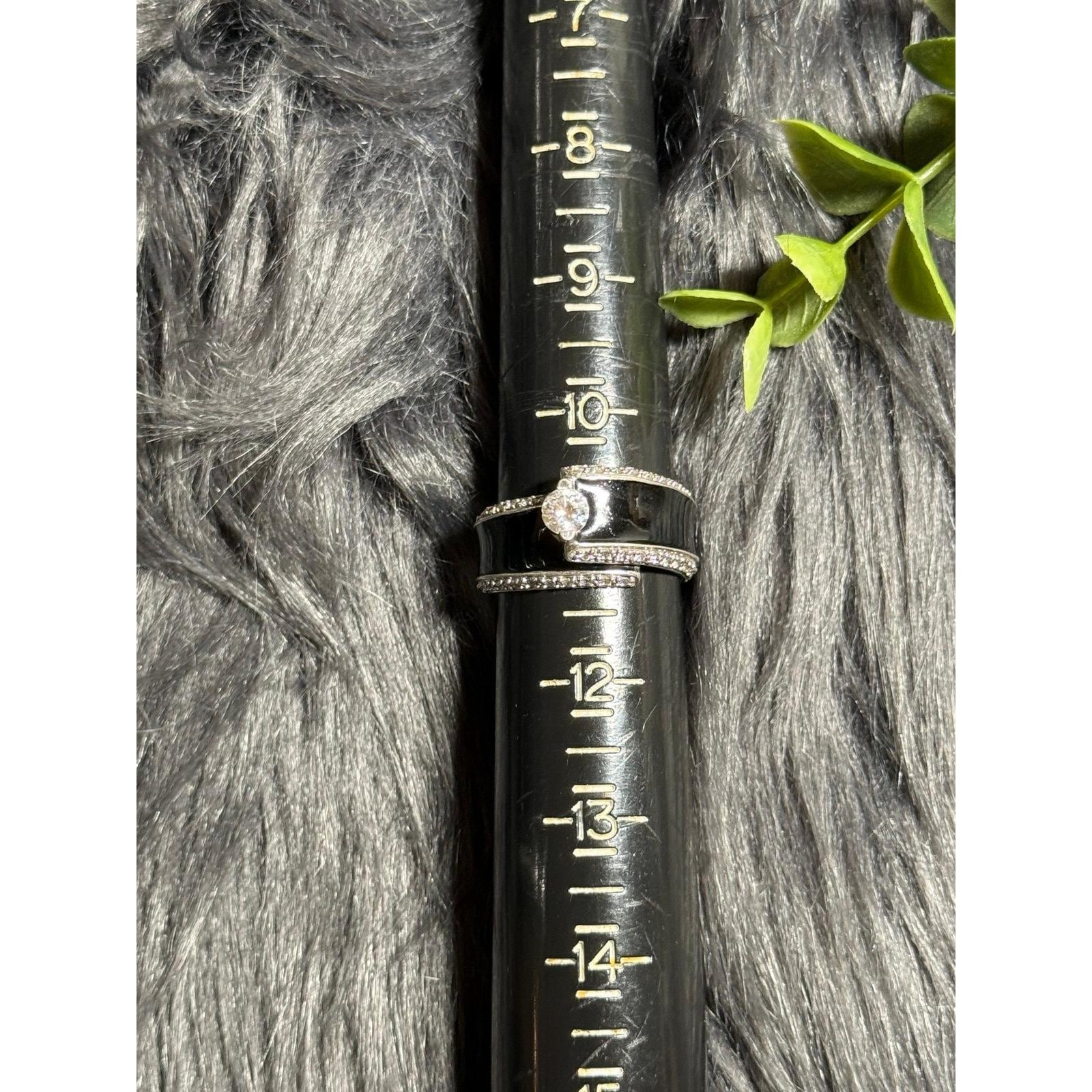 Sterling Silver 925 Black Band Solitaire Cz with Smaller CZ’s Ring.