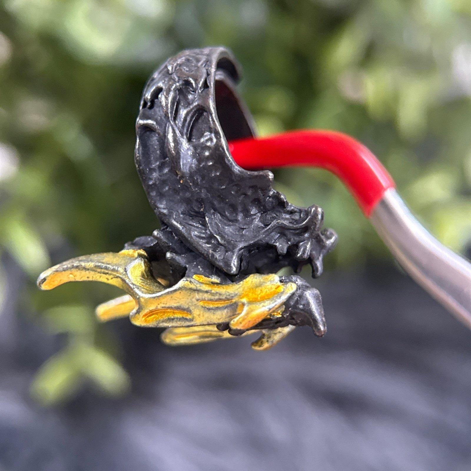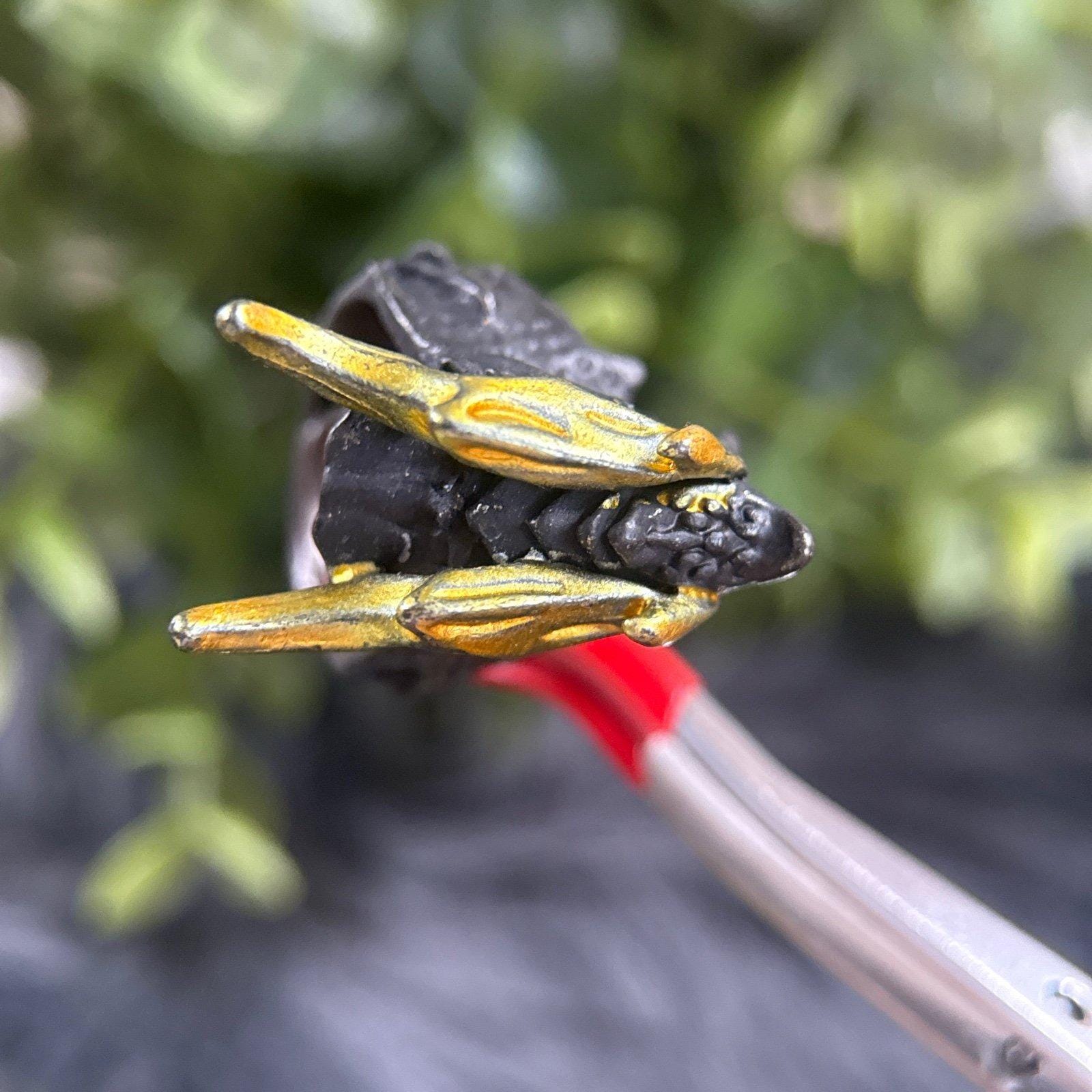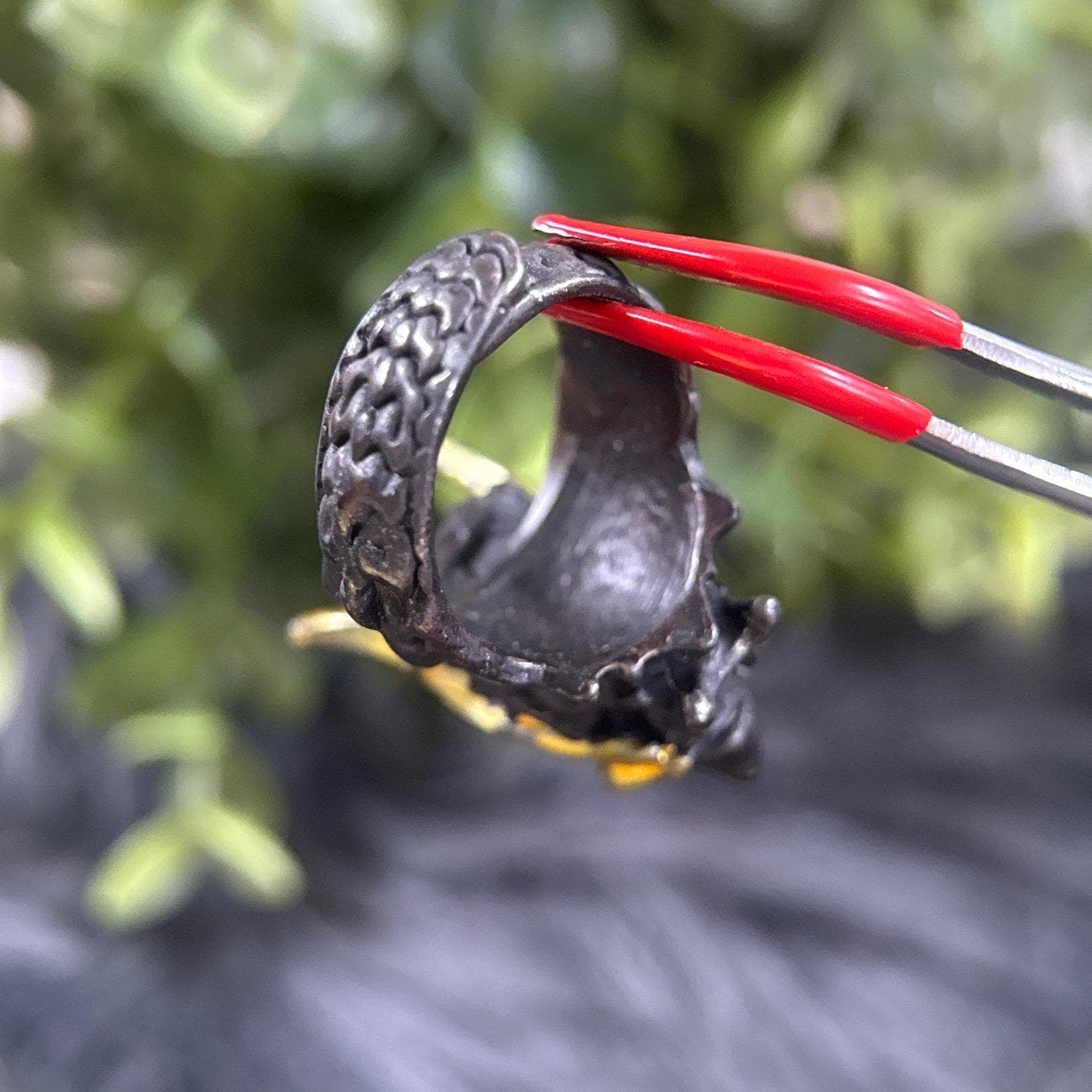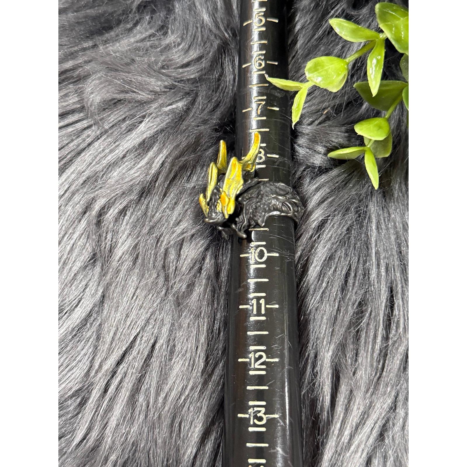 *Black Band Yellow Accent Dragon Ring *Adjustable *Preowned
