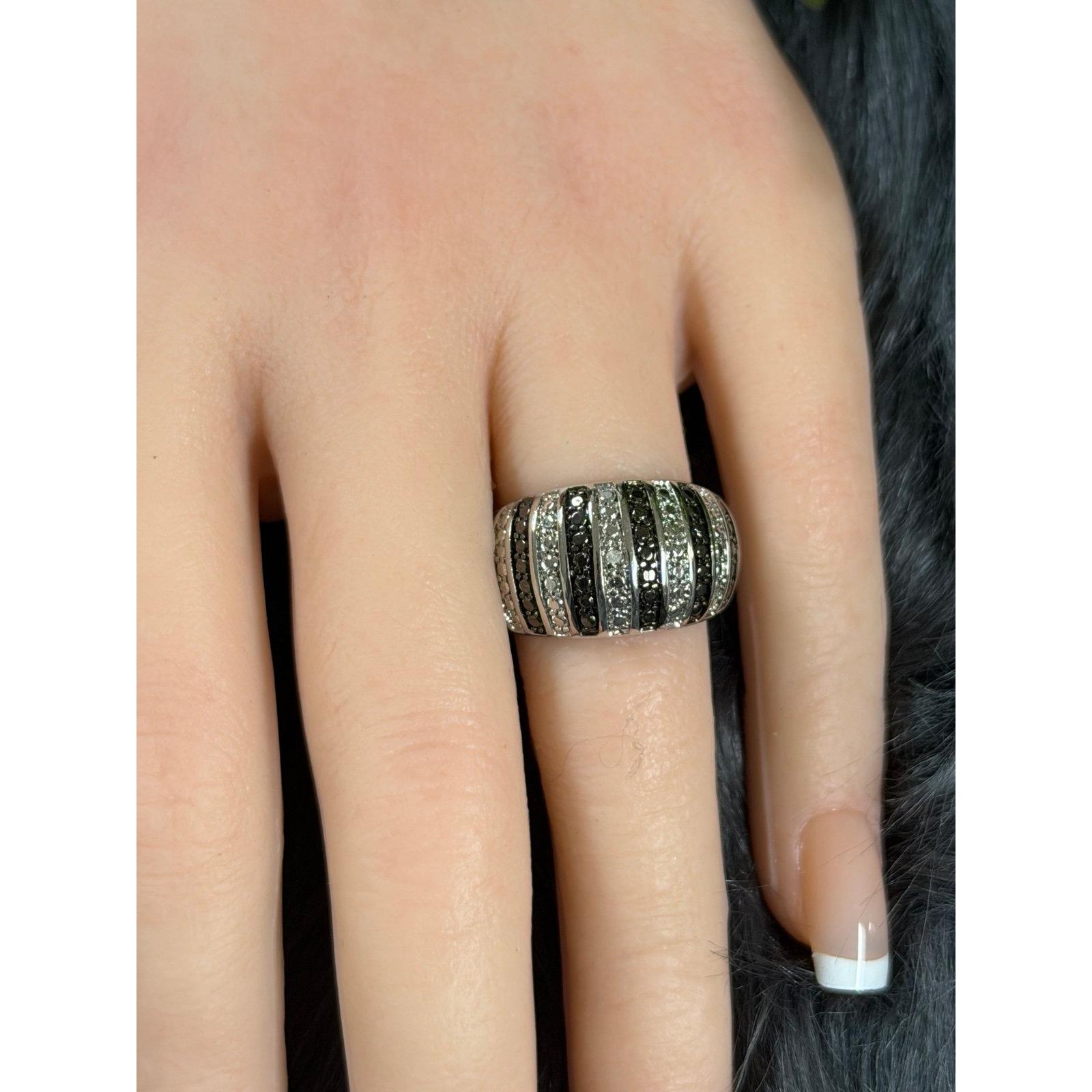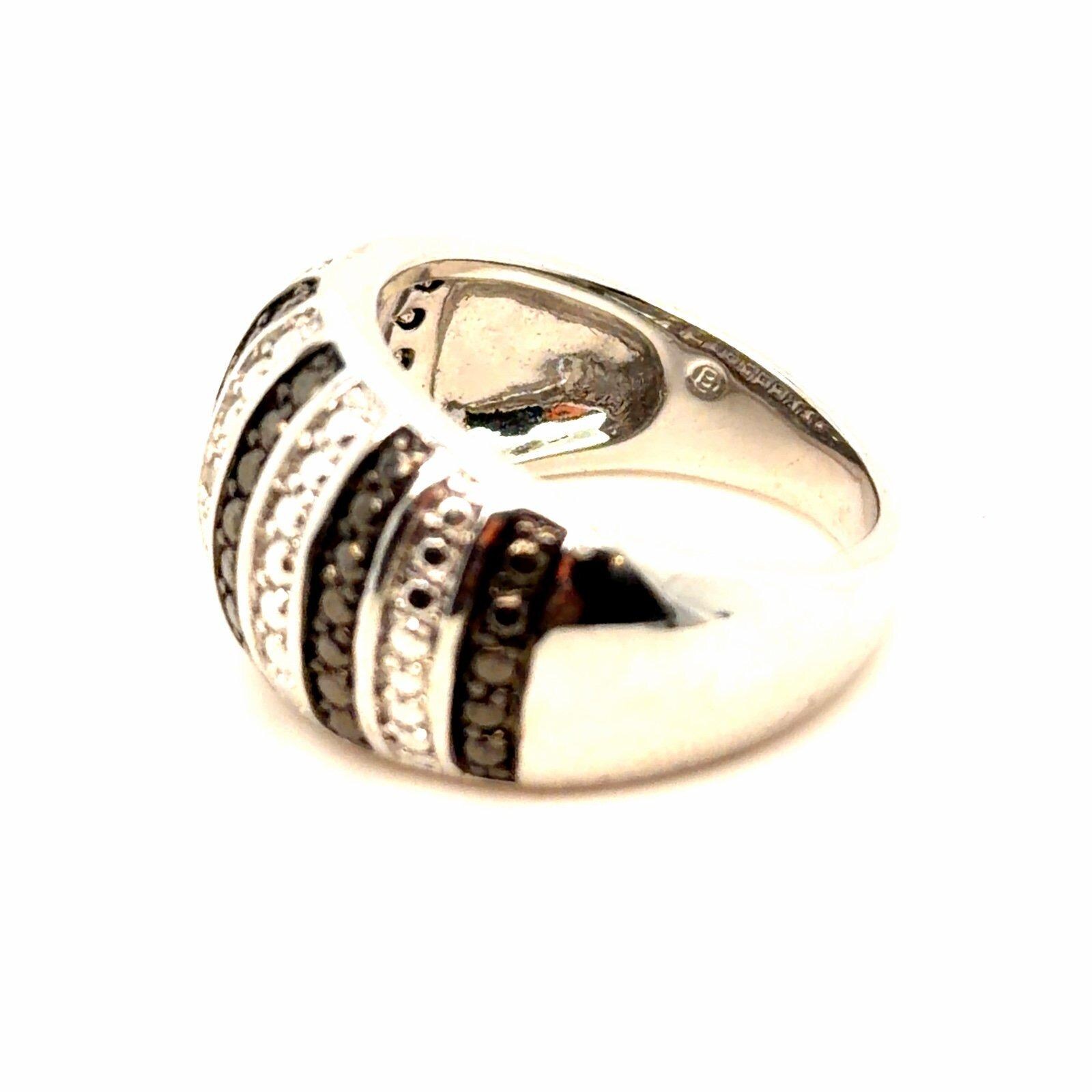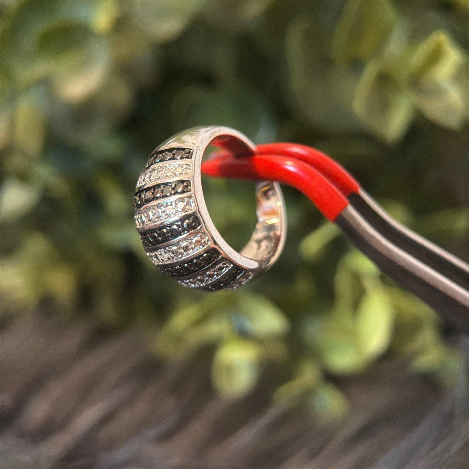 *Black/White Striped Ring *Silver color *Signed B and 7 *Size 7 *Excellent condition