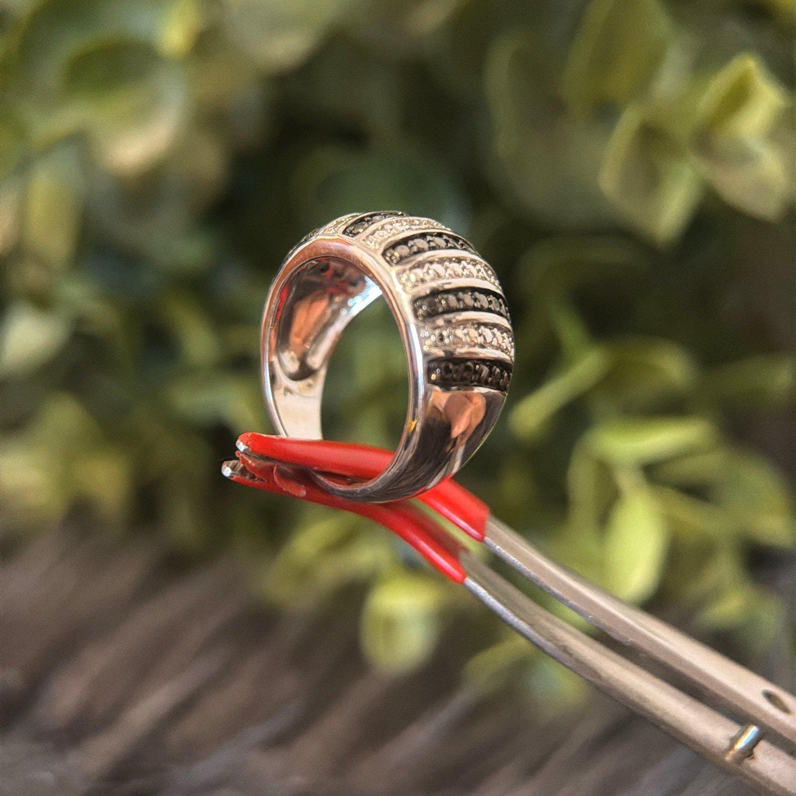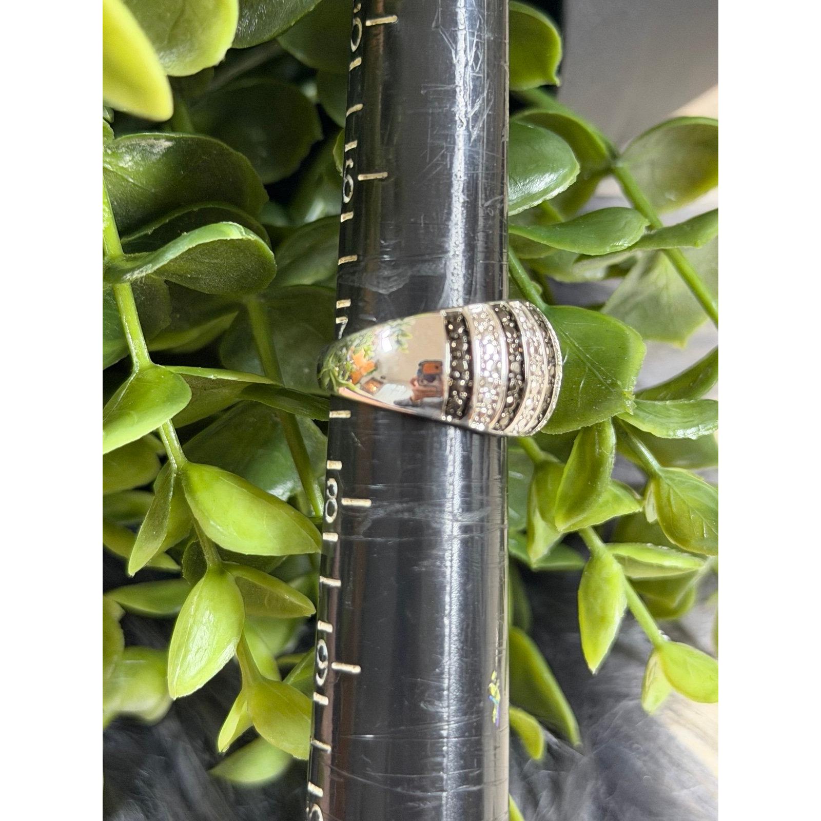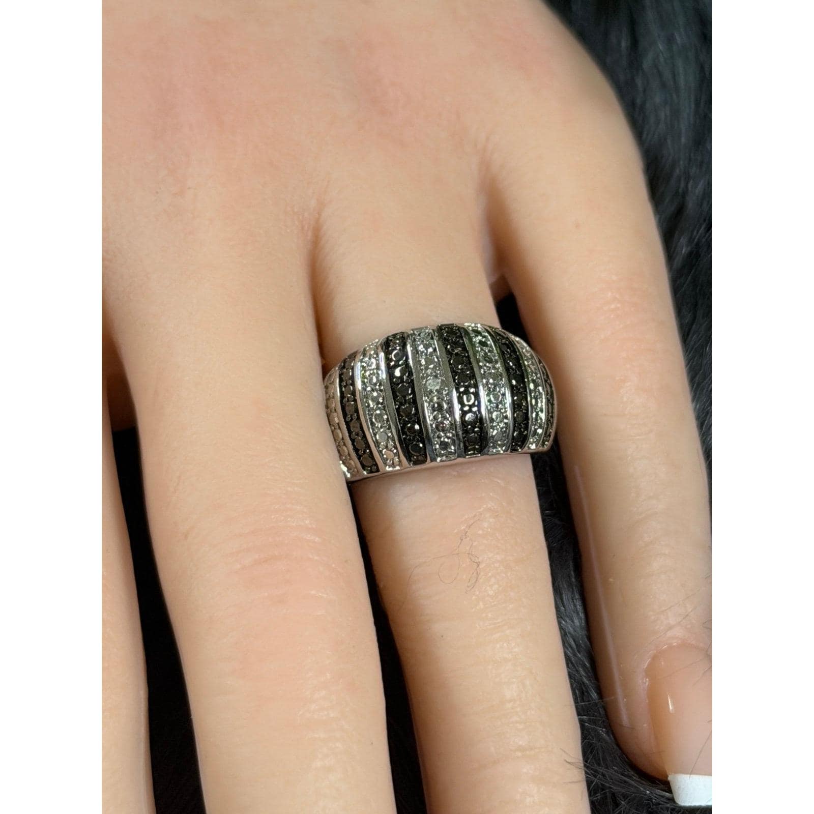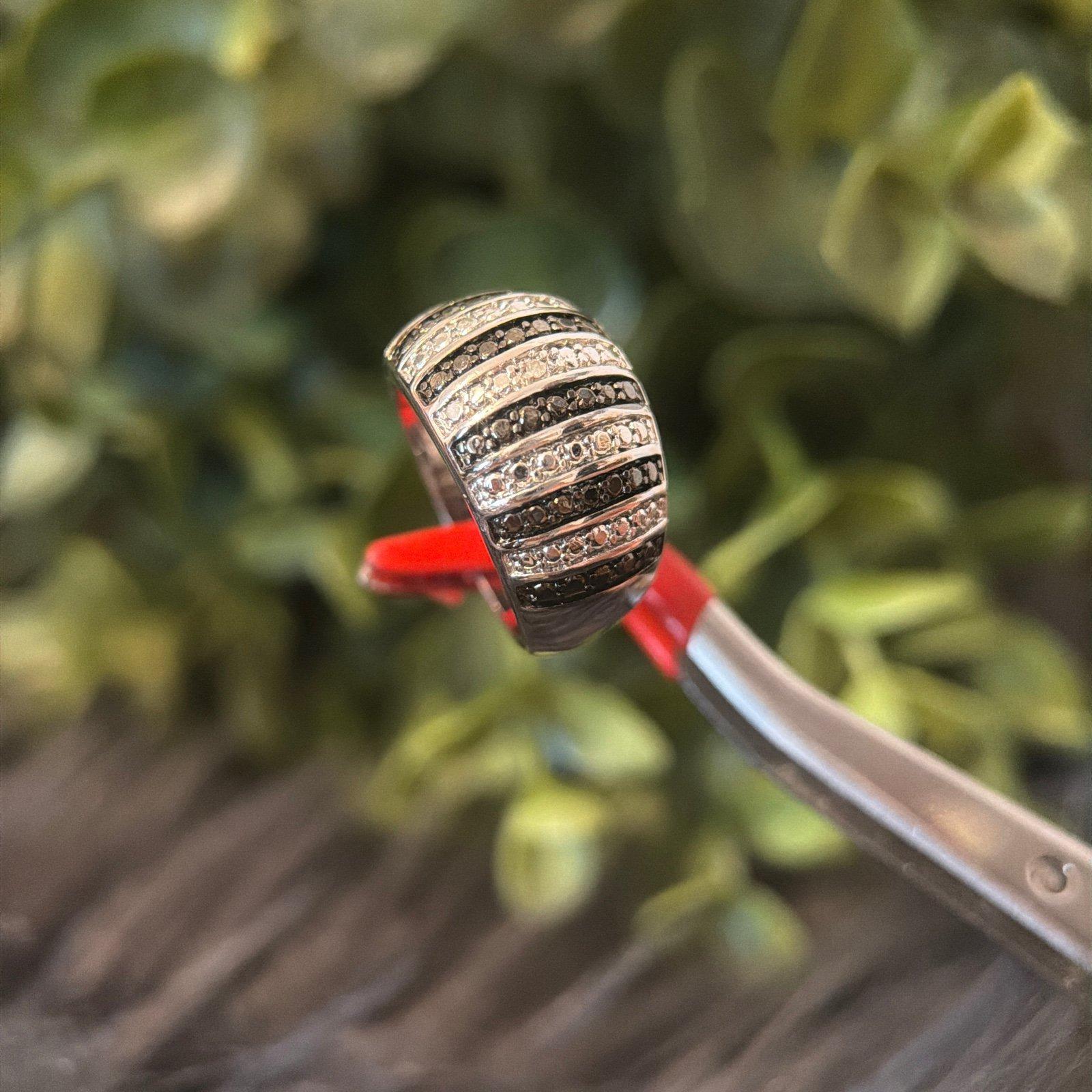 *Black/White Striped Ring *Silver color *Signed B and 7 *Size 7 *Excellent condition