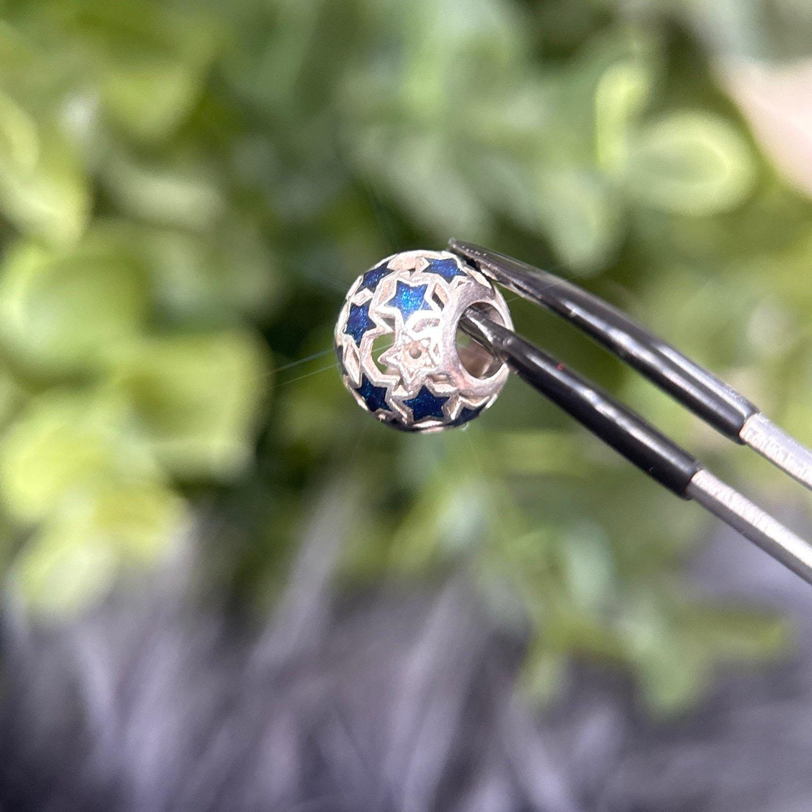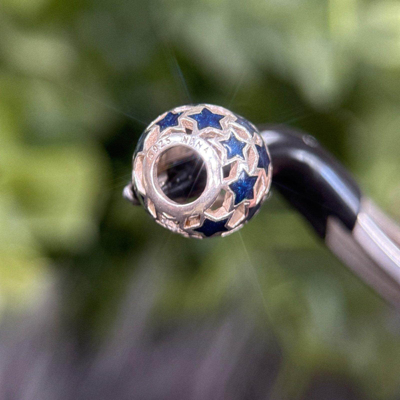 Sterling Silver 925 Blue Enamel Stars Charm.