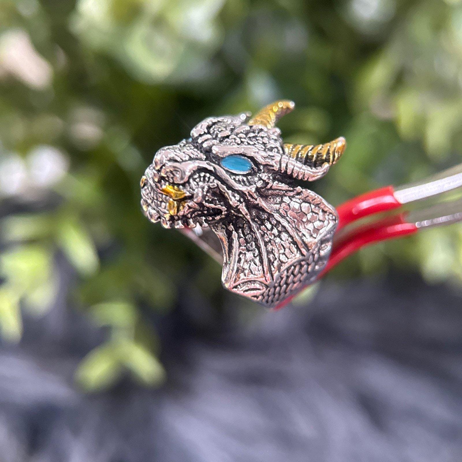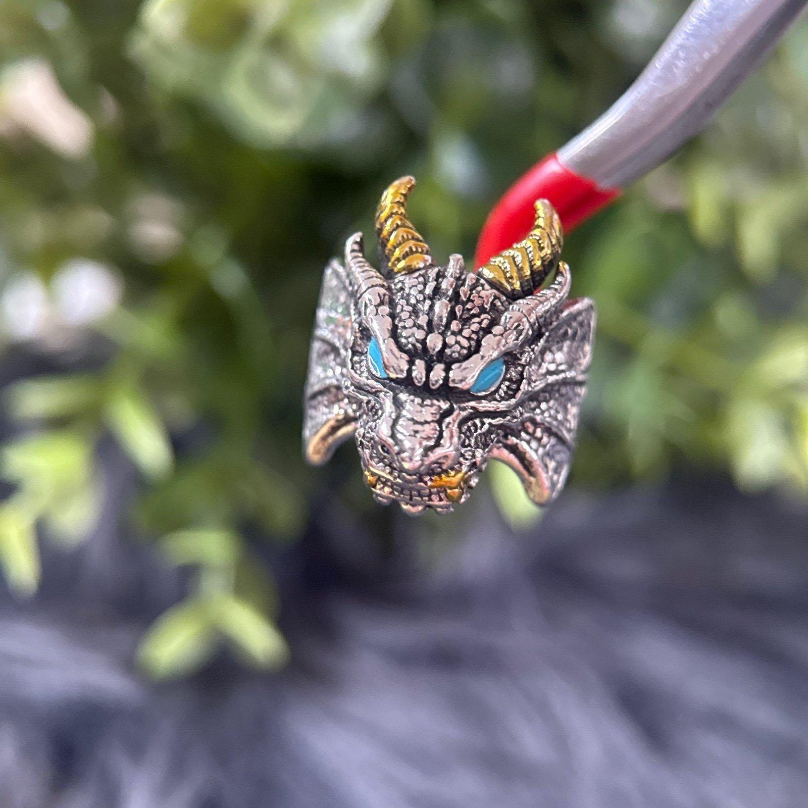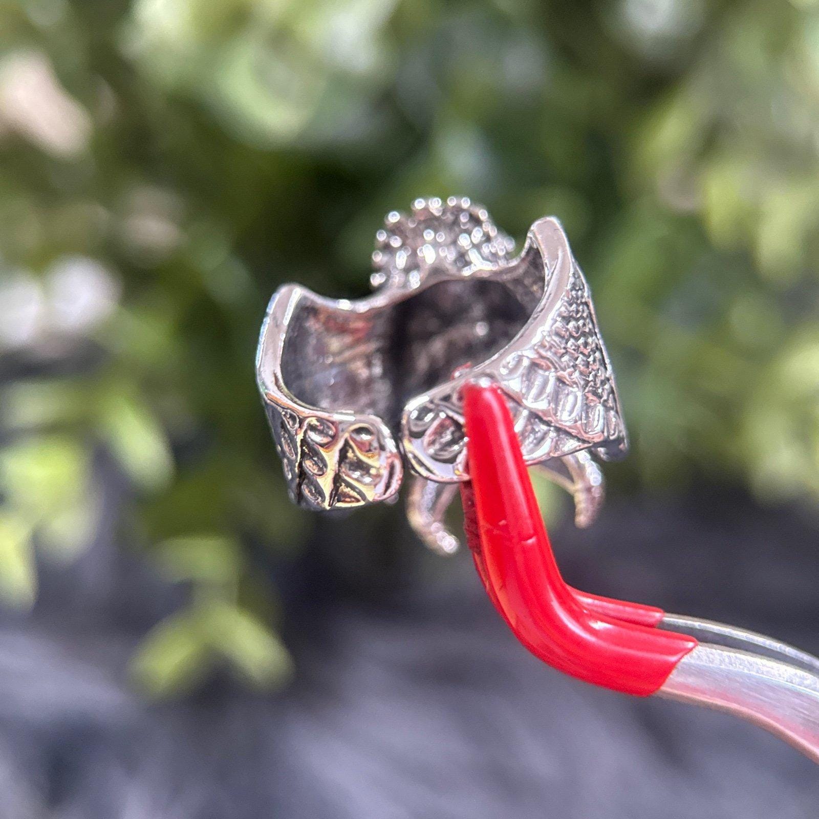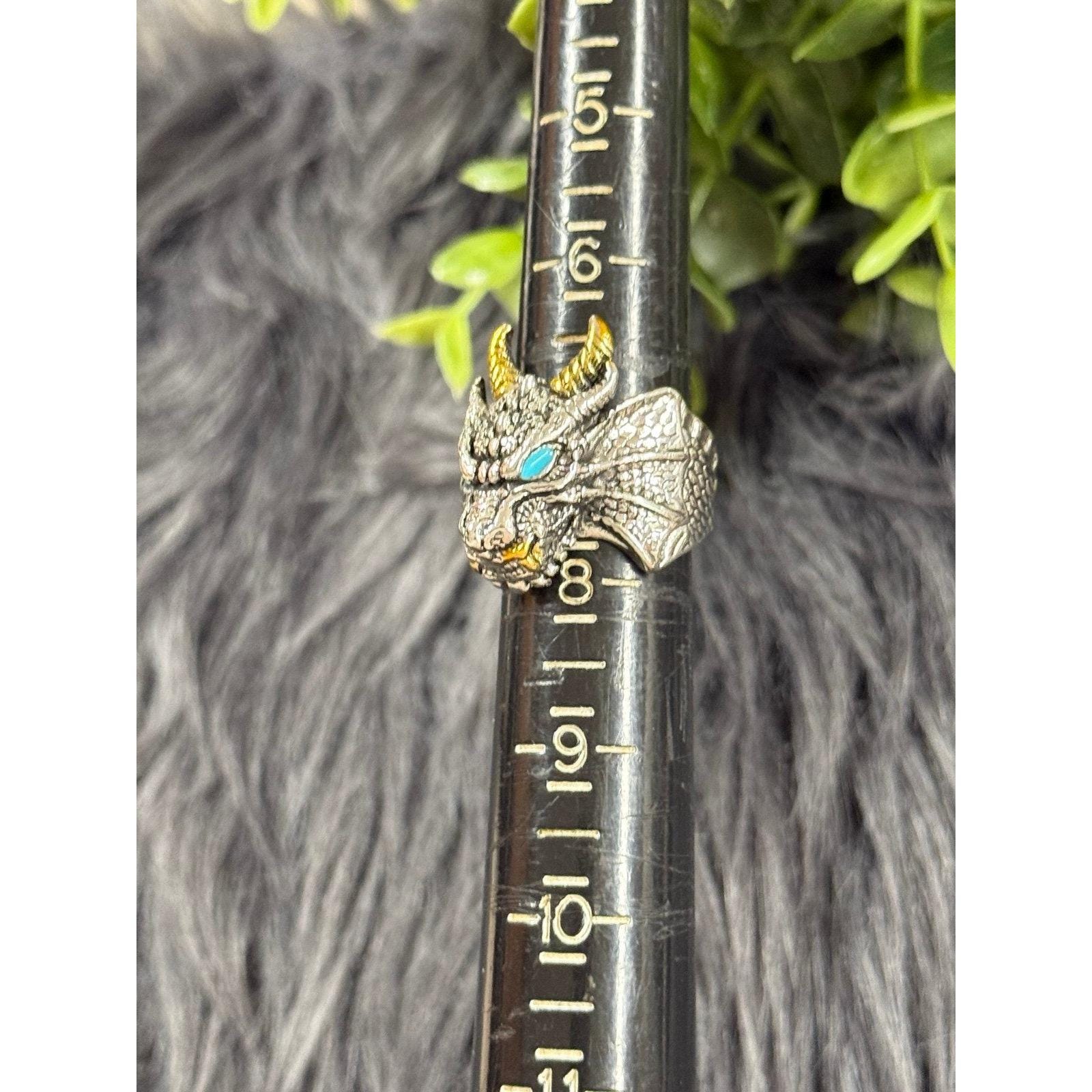 *Silver Blue Eyes Horned Dragon Ring *Not real silver *Open Back *Preowned