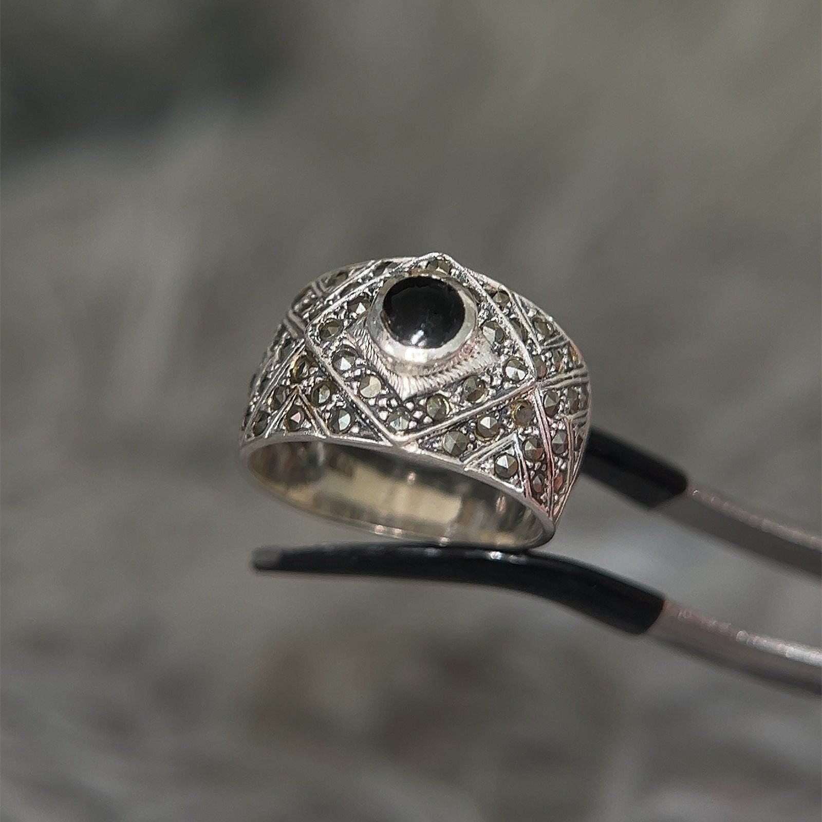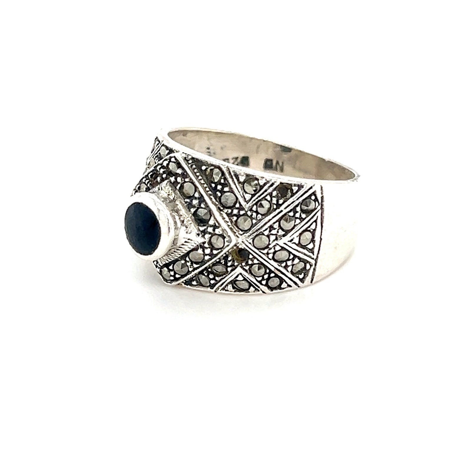 Sterling Silver 925 Onyx/Marcasites Ring.