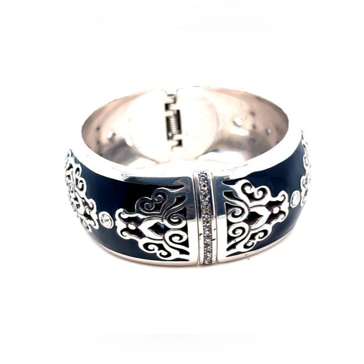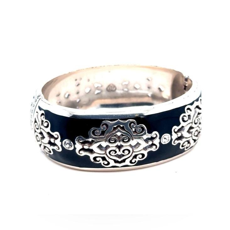 Be the first to review “Brighton Black Enamel Silver-Tone Filigree Bangle Bracelet”