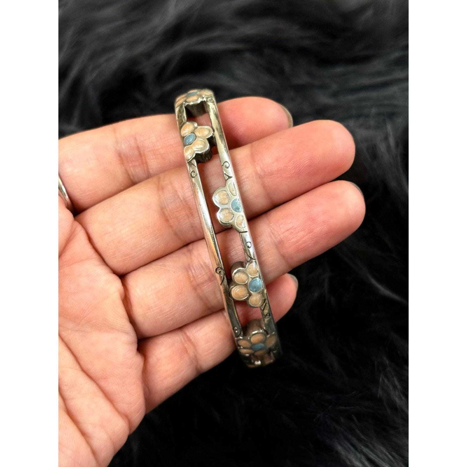 *Brighton Blue/Pink Enamel Flower Bangle Bracelet