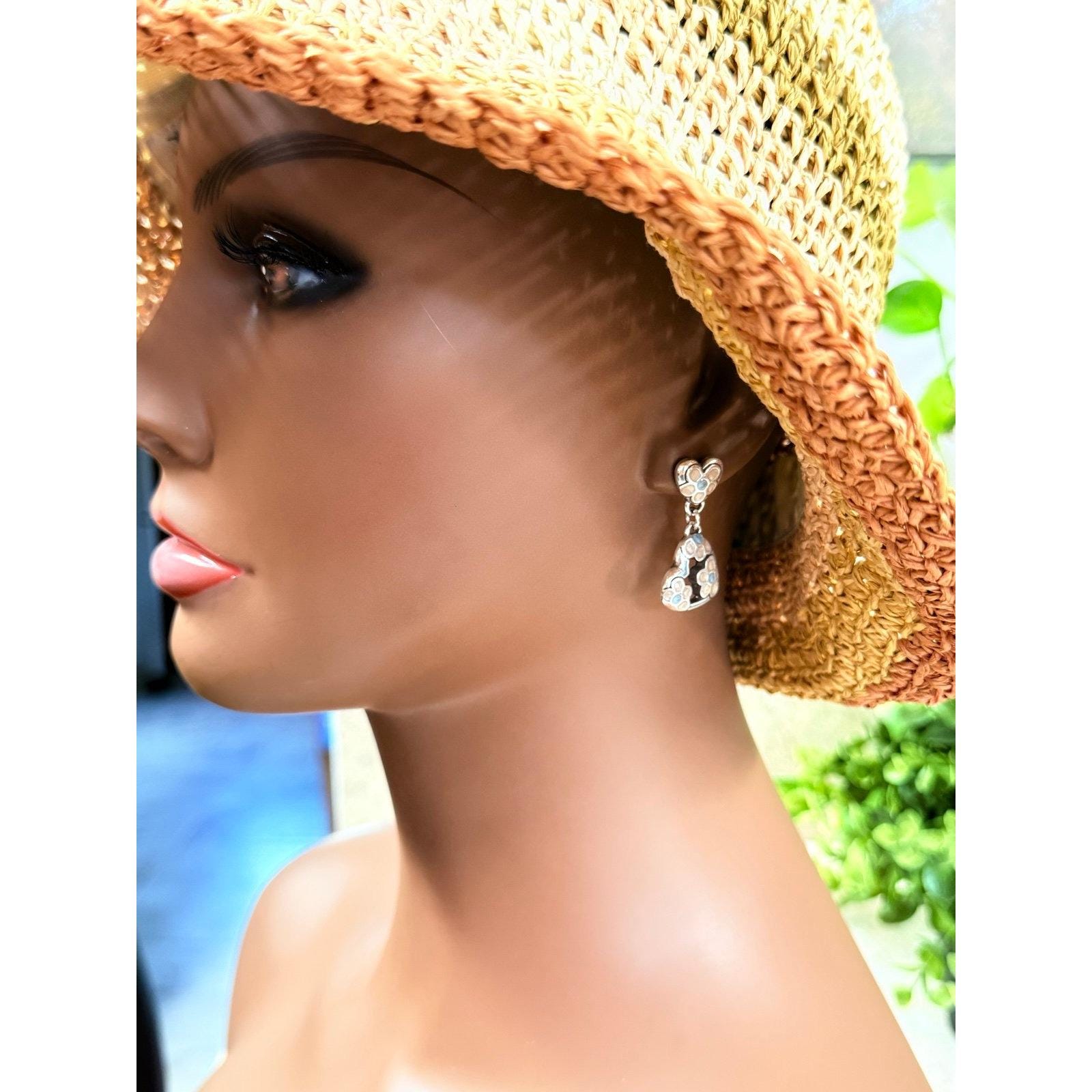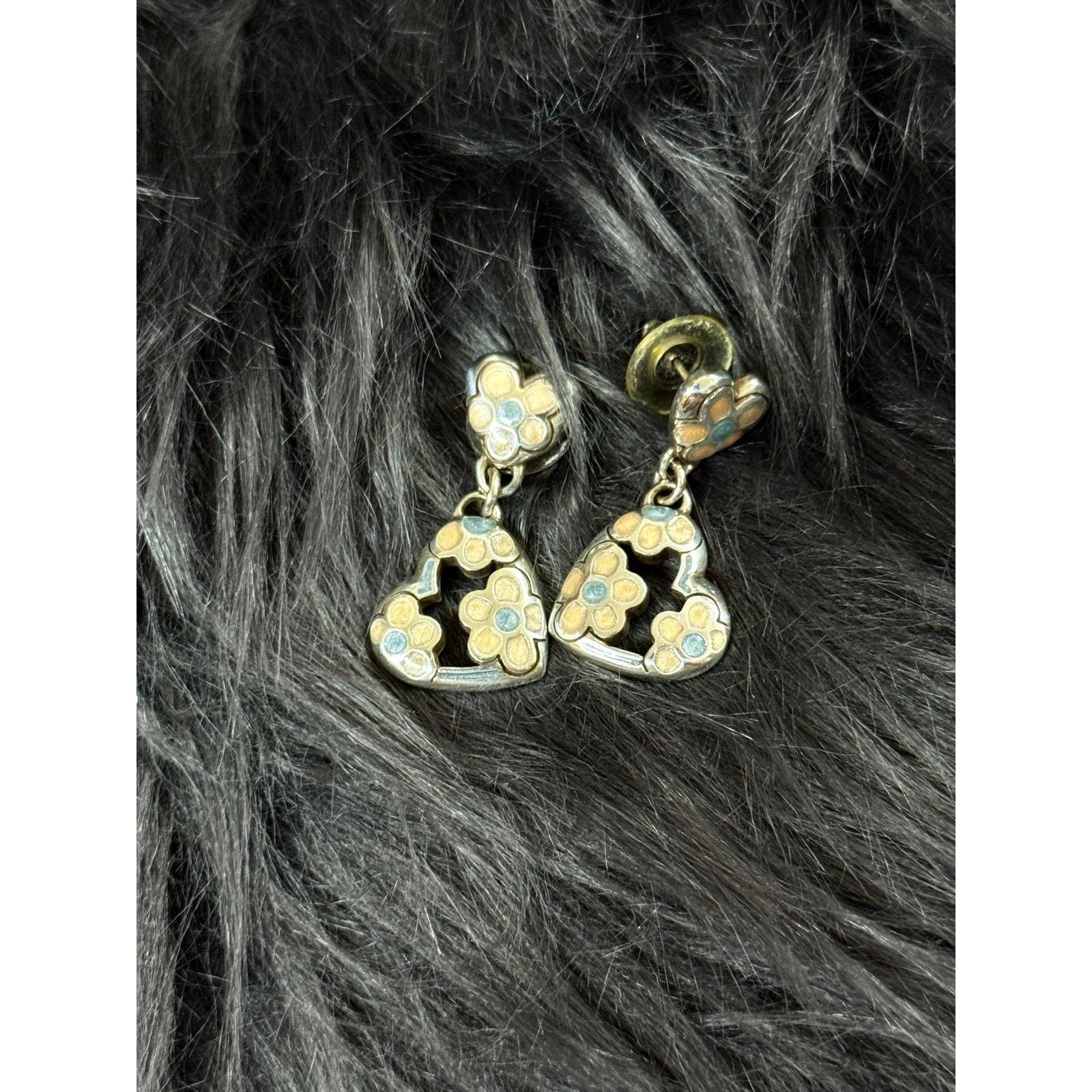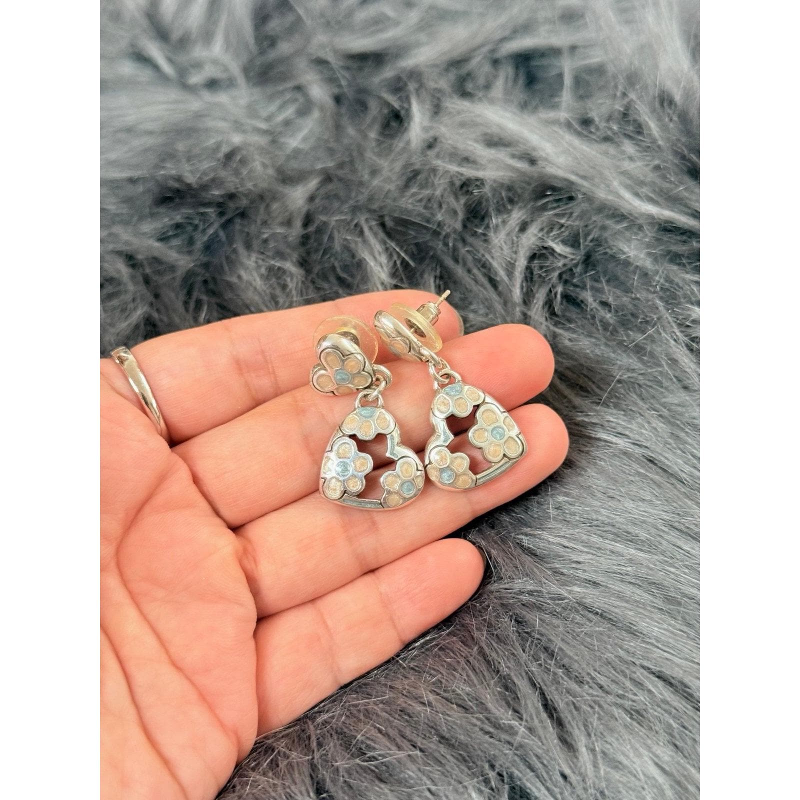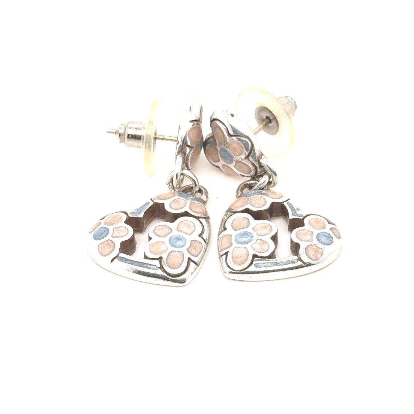 *Brighton Pink/Blue Enamel Flower Heart Dangle Earrings