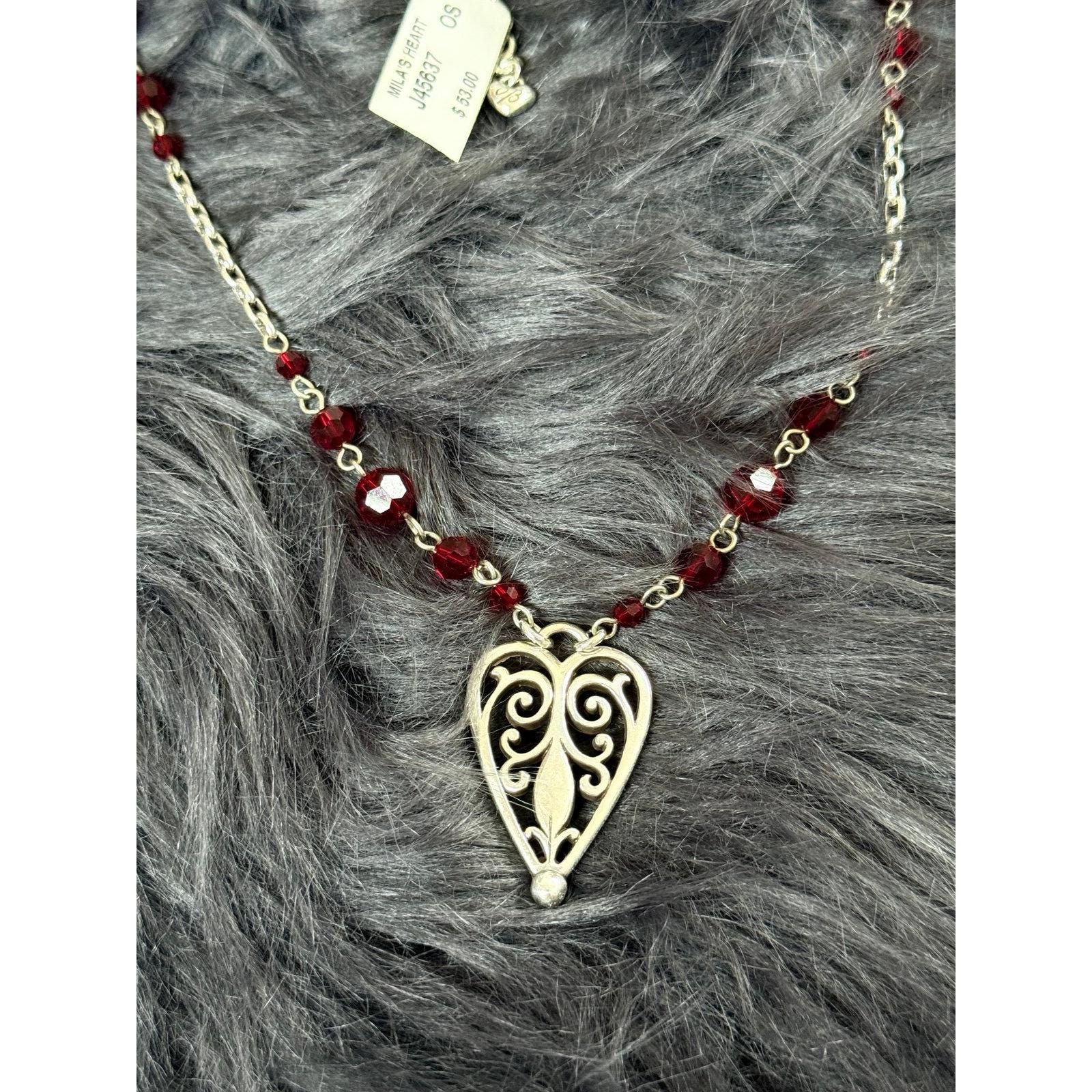 *Brighton Scroll Garnet Heart Necklace