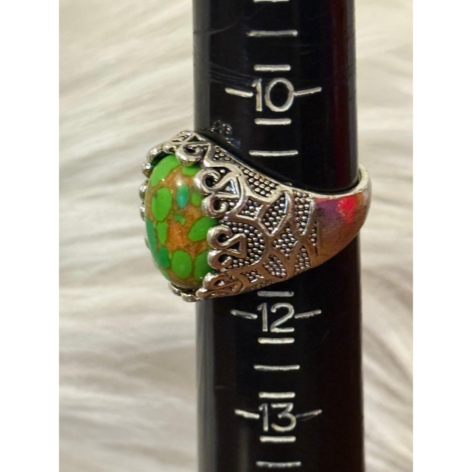 Brown and Green Mosaic RingNot real silverSize 11Excellent condition