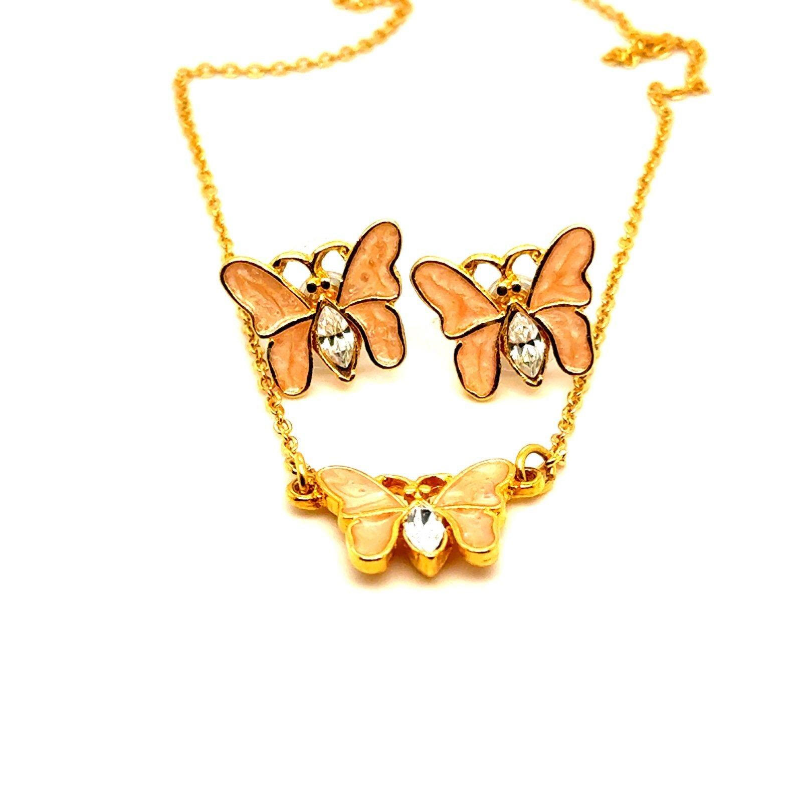 *Gold Plated Butterfly Necklace & Earrings Set *Necklace is 18.5” L *In excellent condition