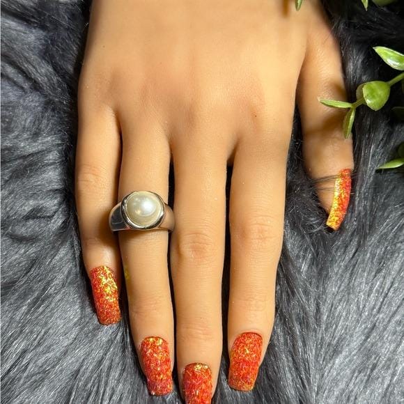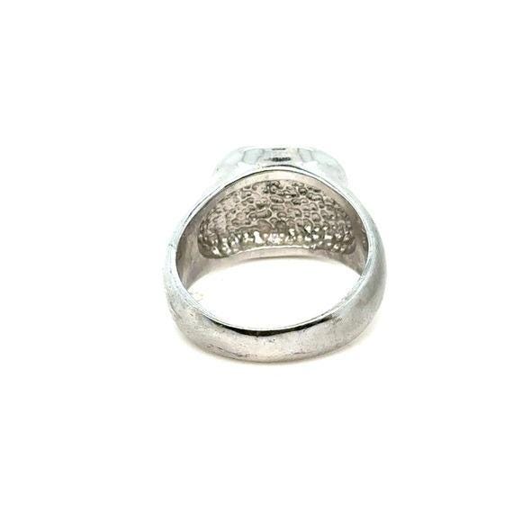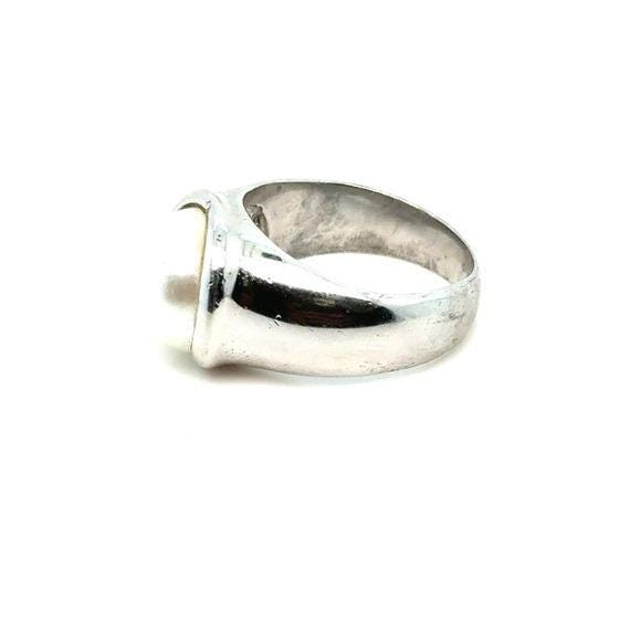 Elegant white pearl signet ring set in a silver-tone band. Simple, timeless design that complements any outfit. Lightweight and comfortable for everyday wear. Features a luminous white pearl center for refined style.