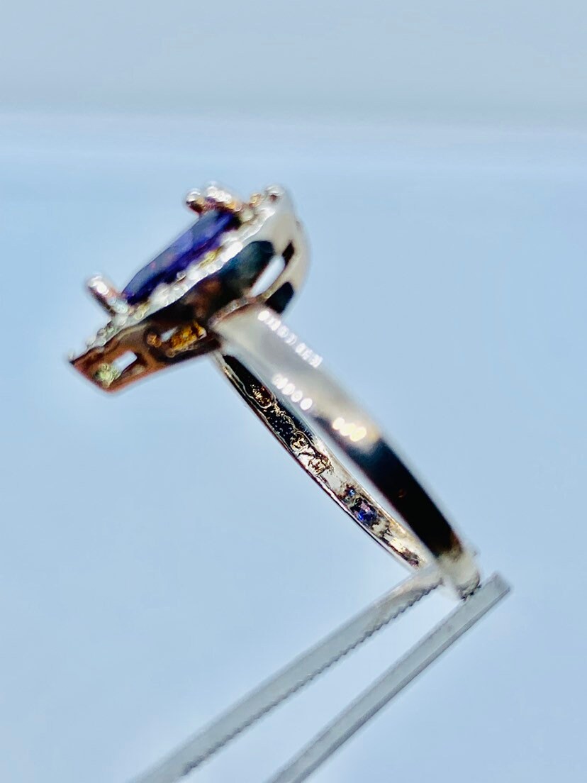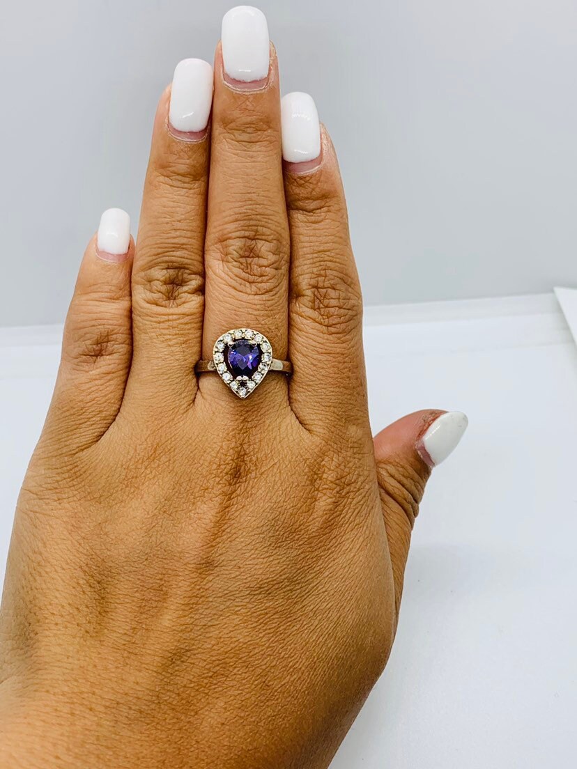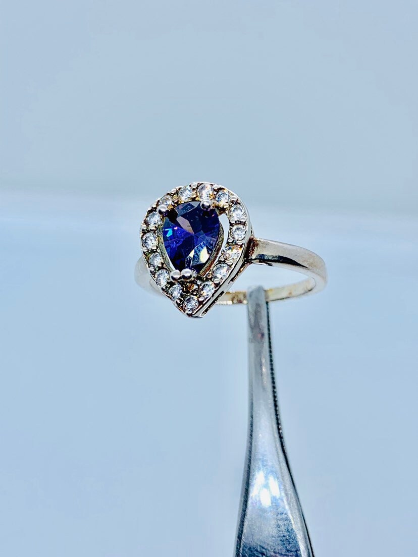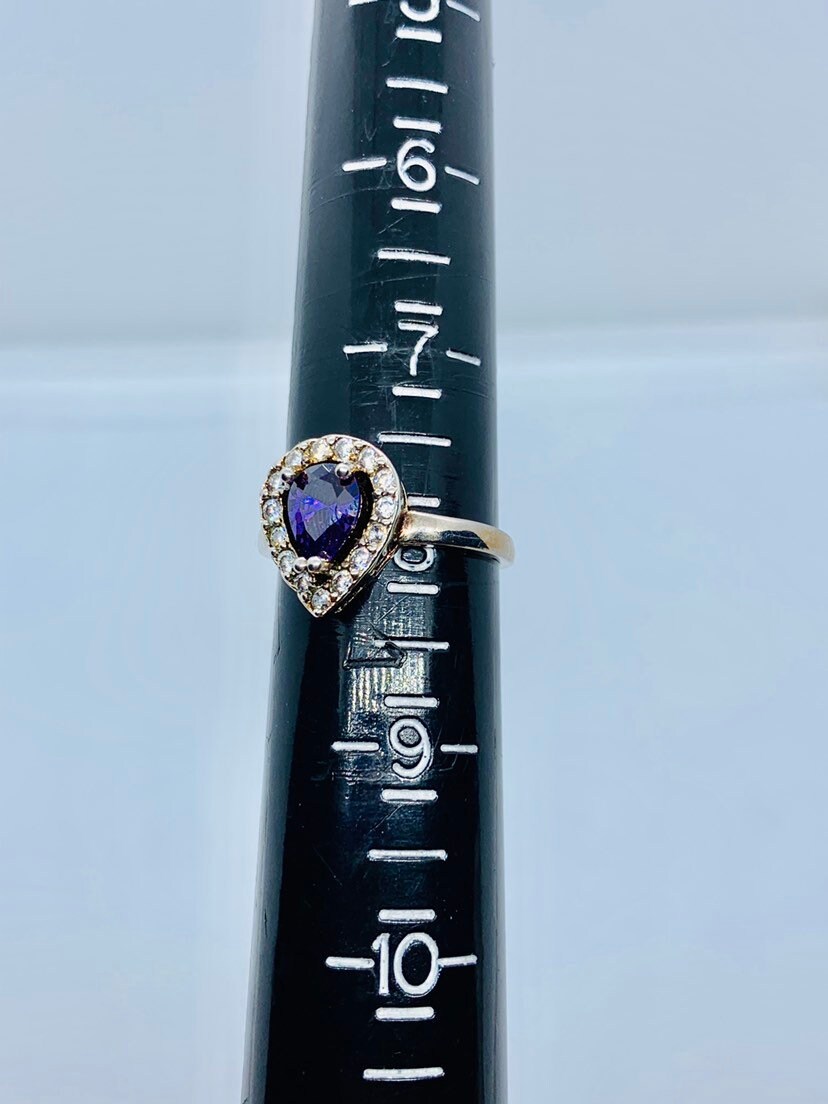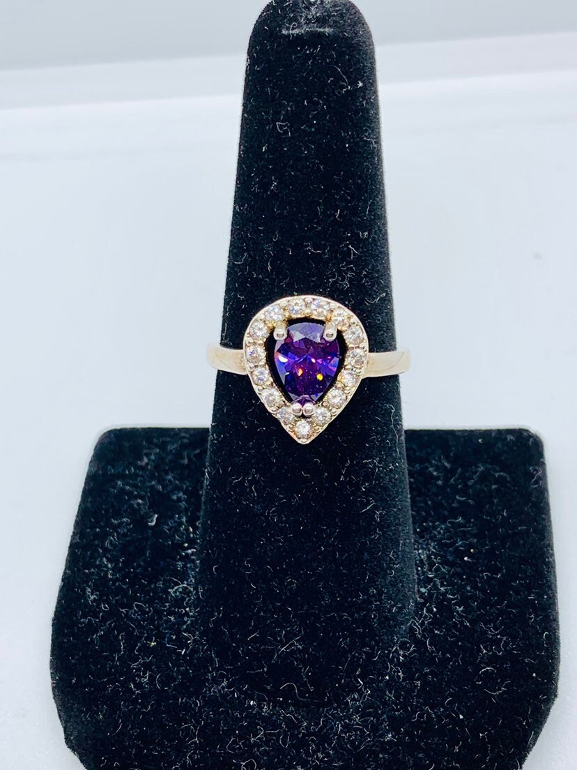 This ring looks like the real expensive one. It is just a beautiful piece of costume jewelry. Its in excellent condition. Stones are unknown. Sz 8