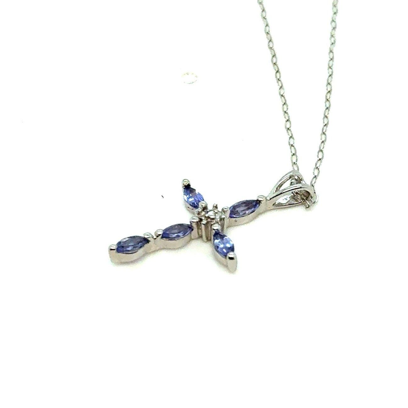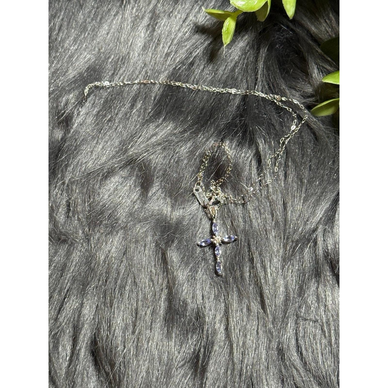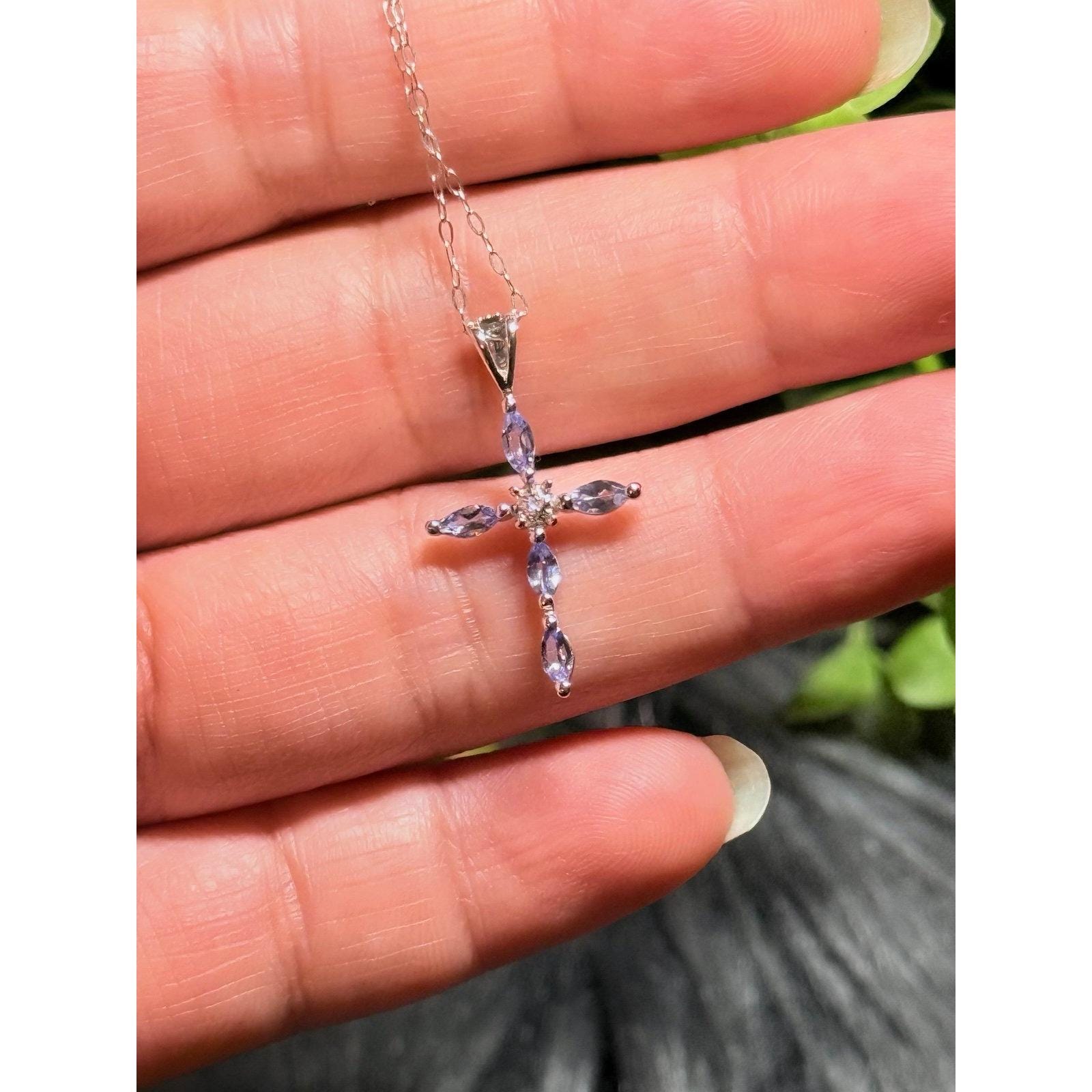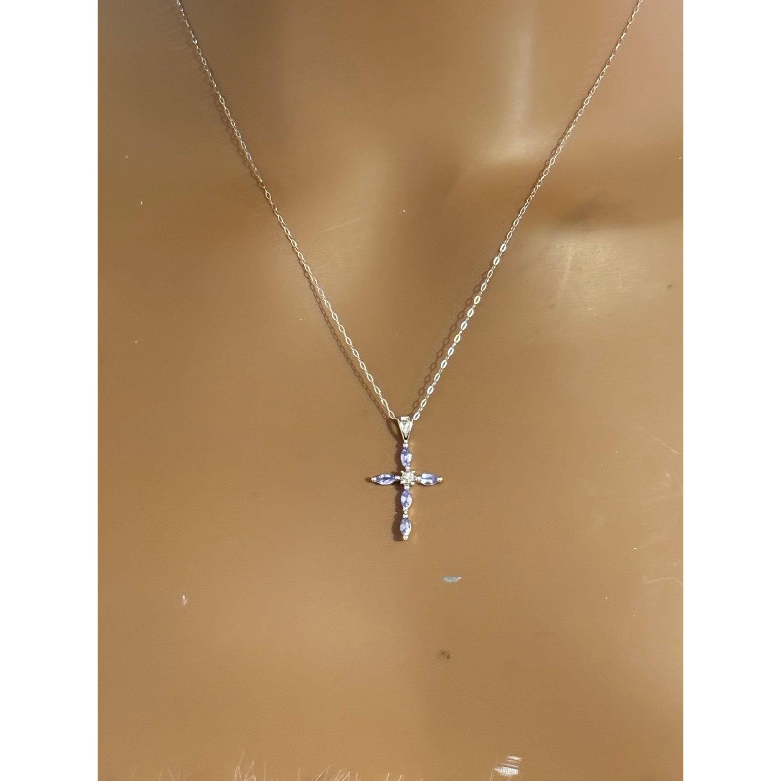 Real 10K White Gold Tanzanite Cross Necklace , NOT GOLD PLATED OR GOLD FILLED.
