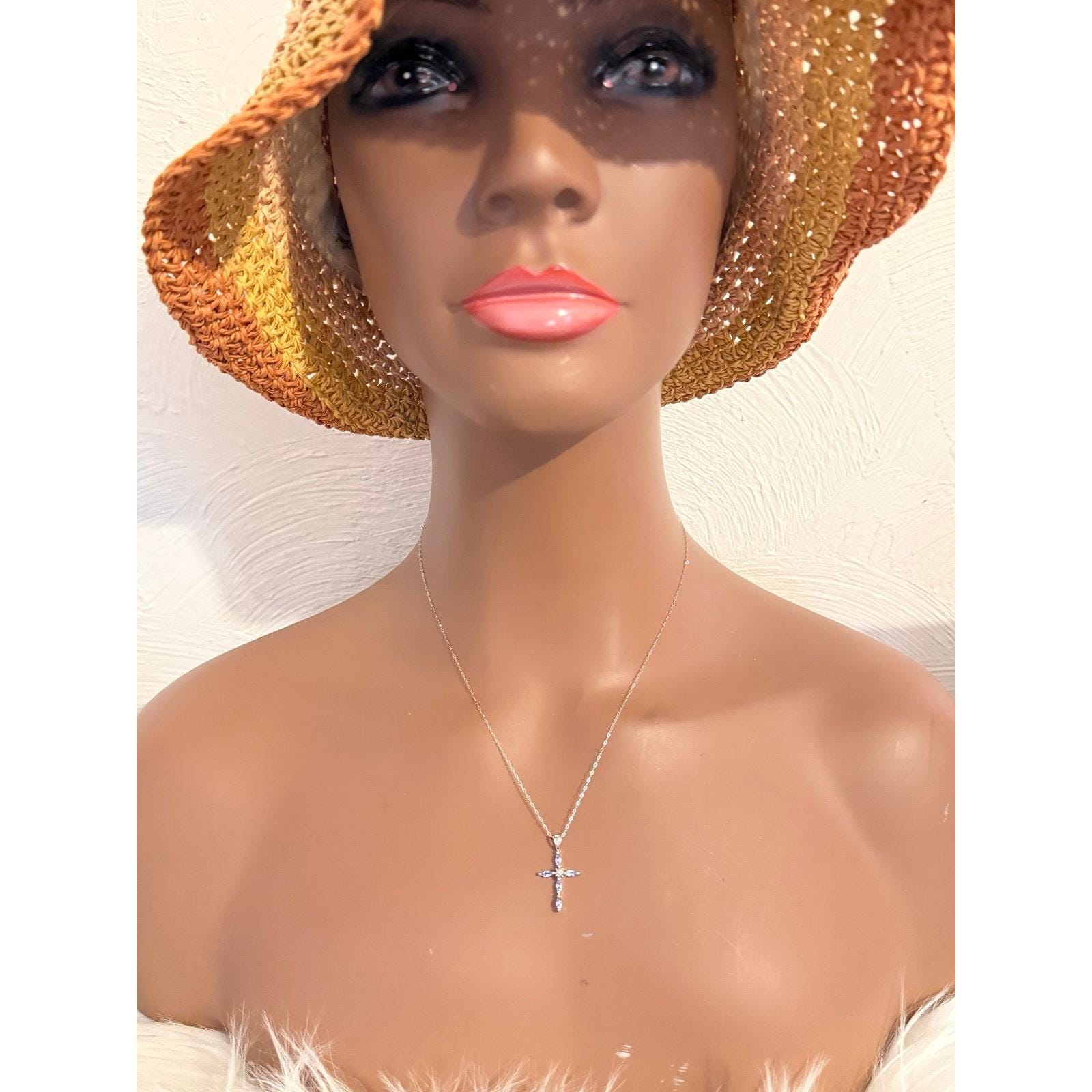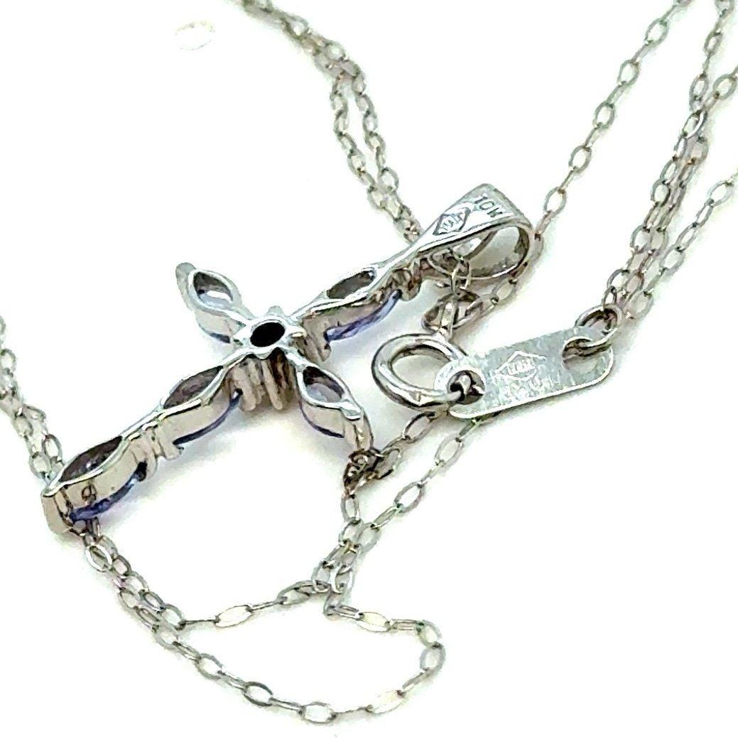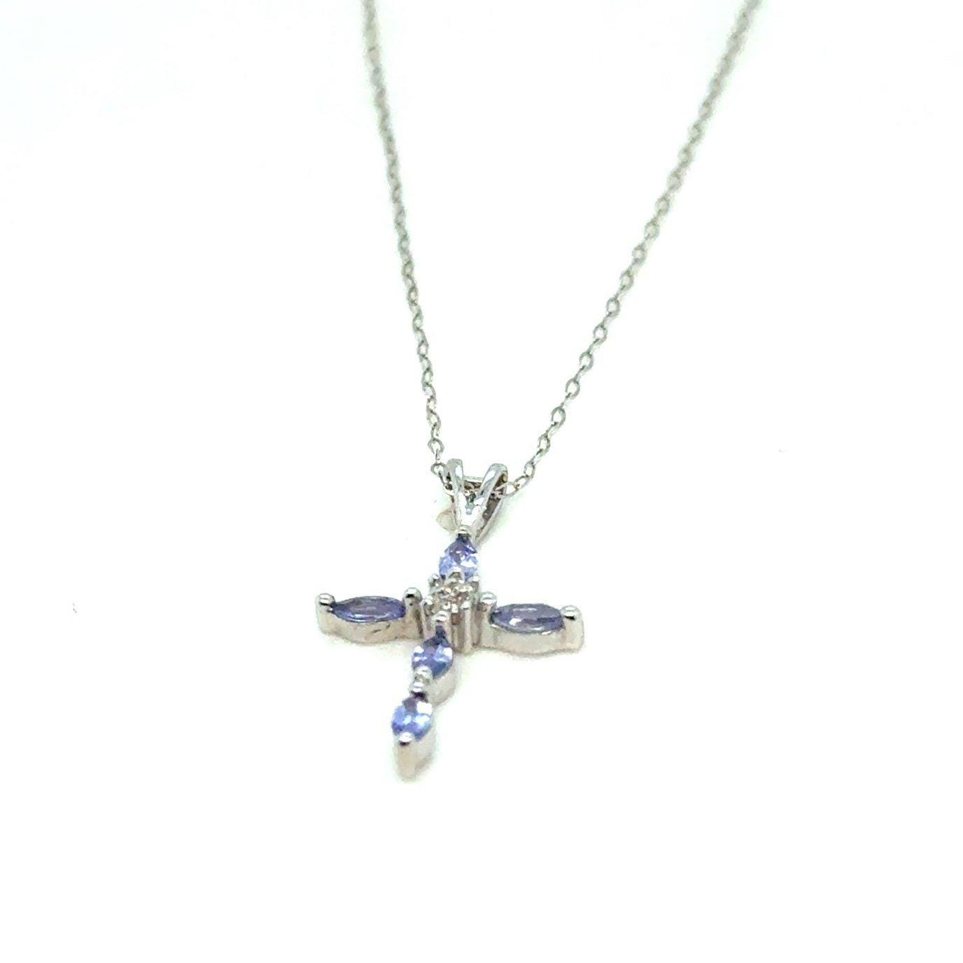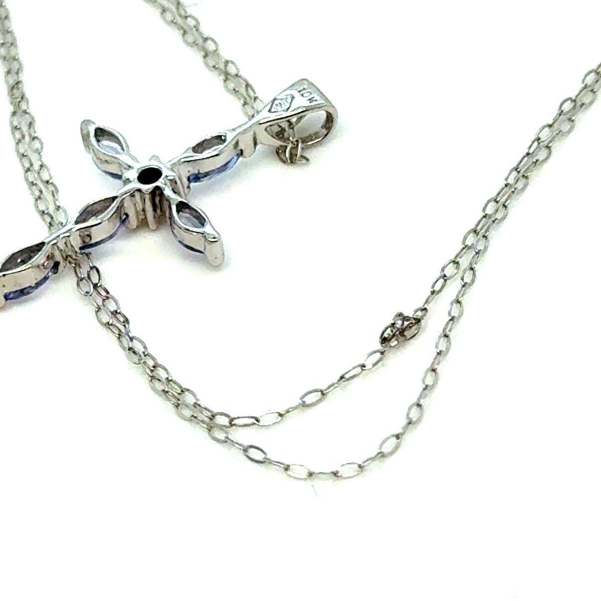 Real 10K White Gold Tanzanite Cross Necklace , NOT GOLD PLATED OR GOLD FILLED.