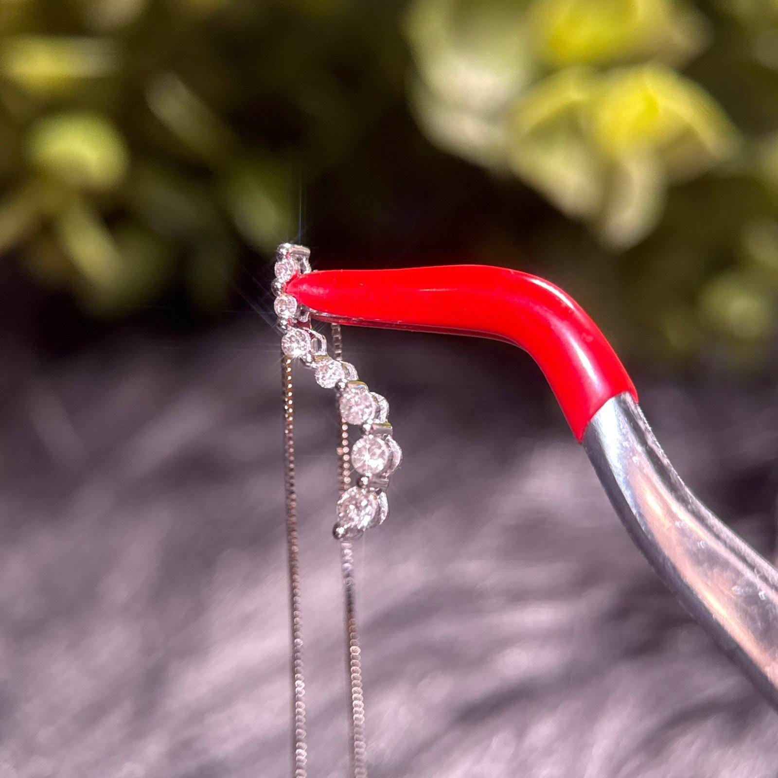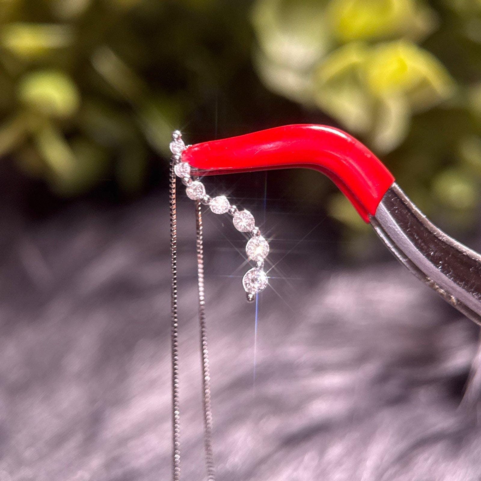 Real 14K White Gold Journey Necklace with Real Diamonds, NOT GOLD PLATED OR GOLD FILLED.
