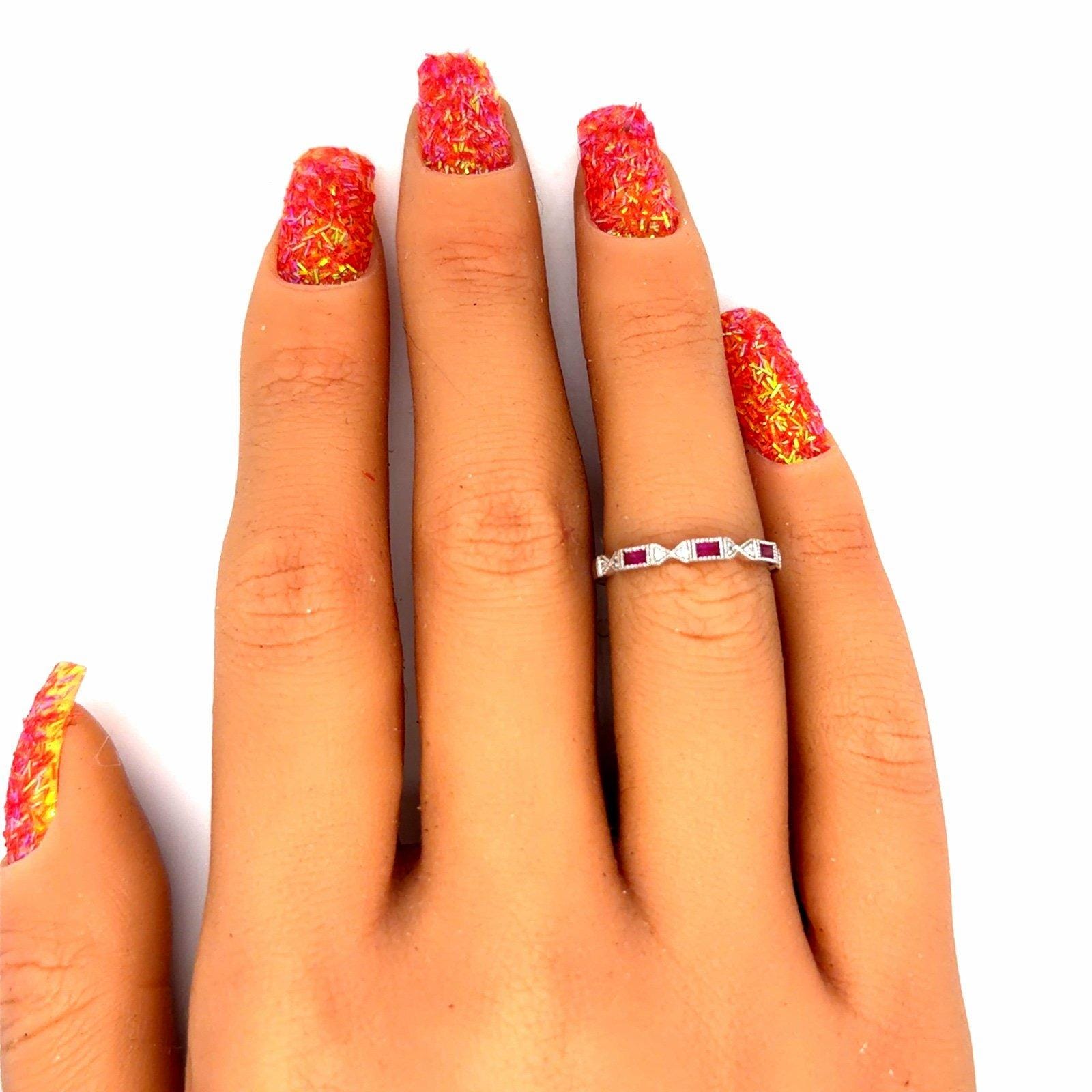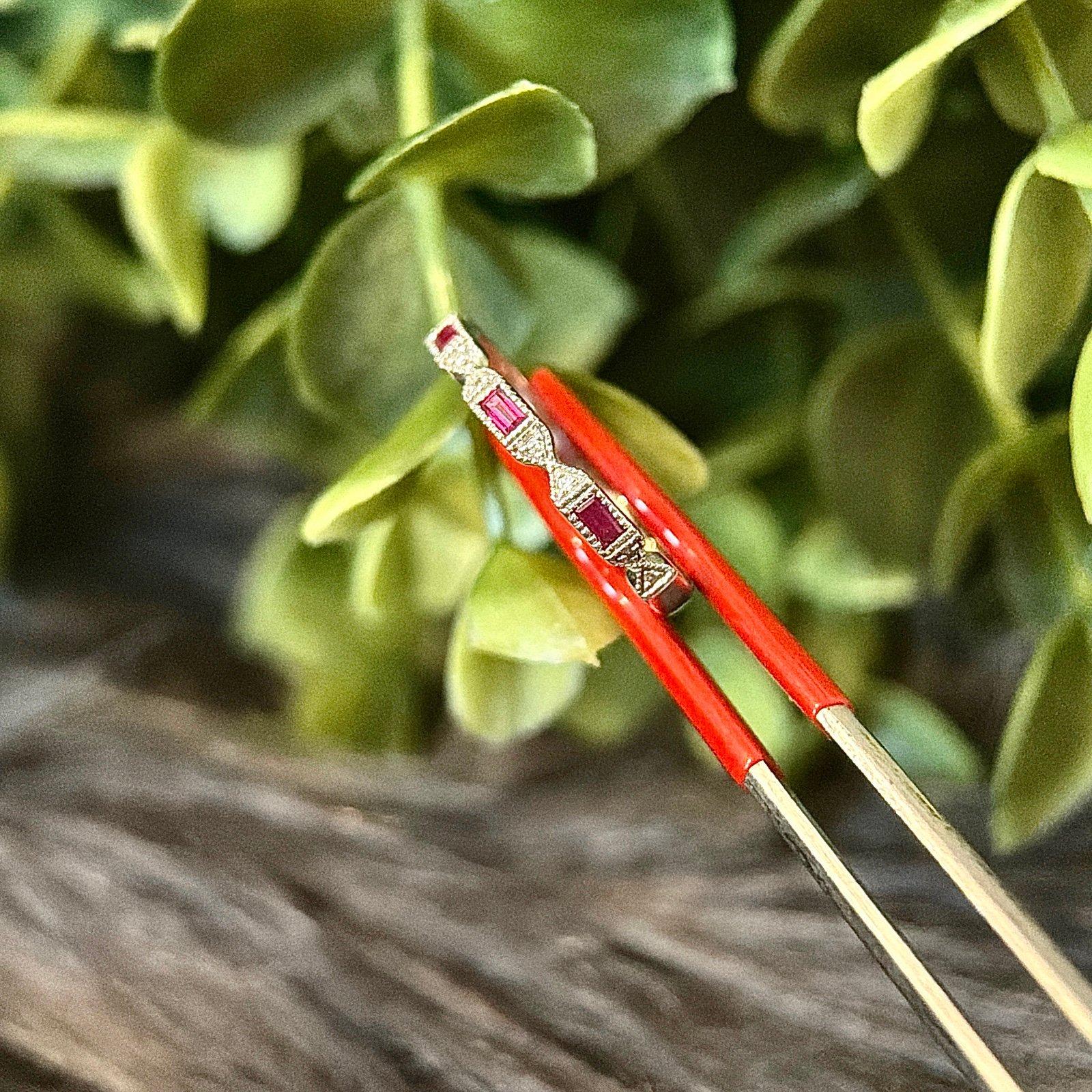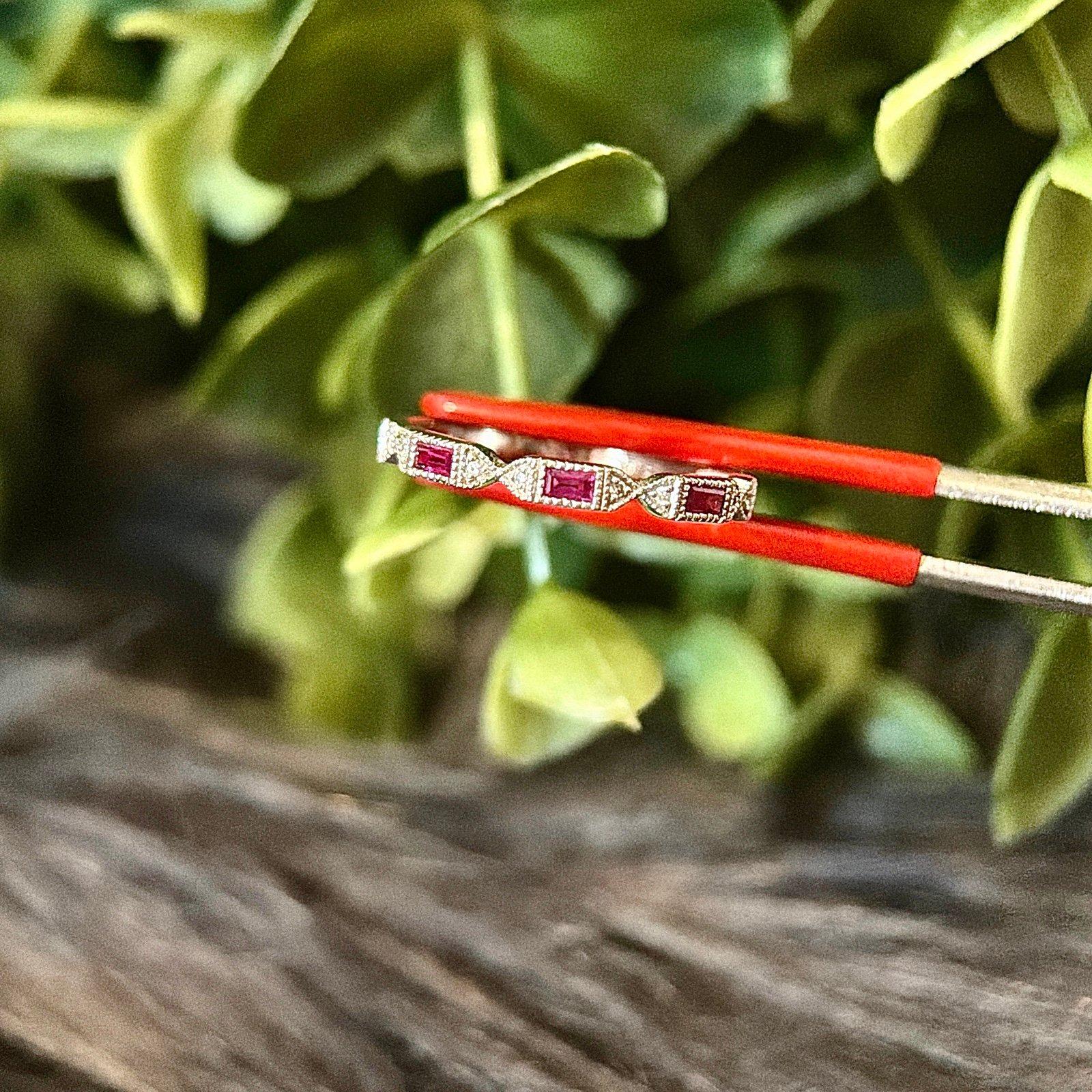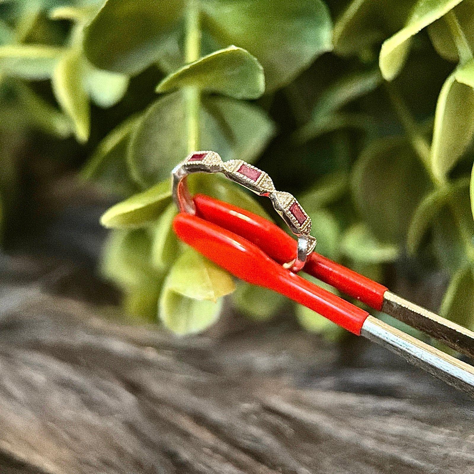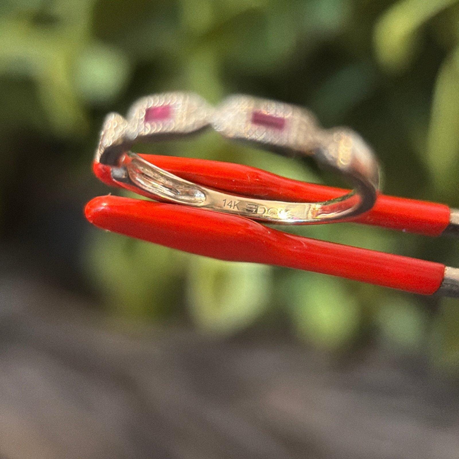 Real 14k White Gold Genuine Rubies and Diamonds Band Ring, REAL GOLD, NOT GOLD PLATED OR GOLD FILLED.