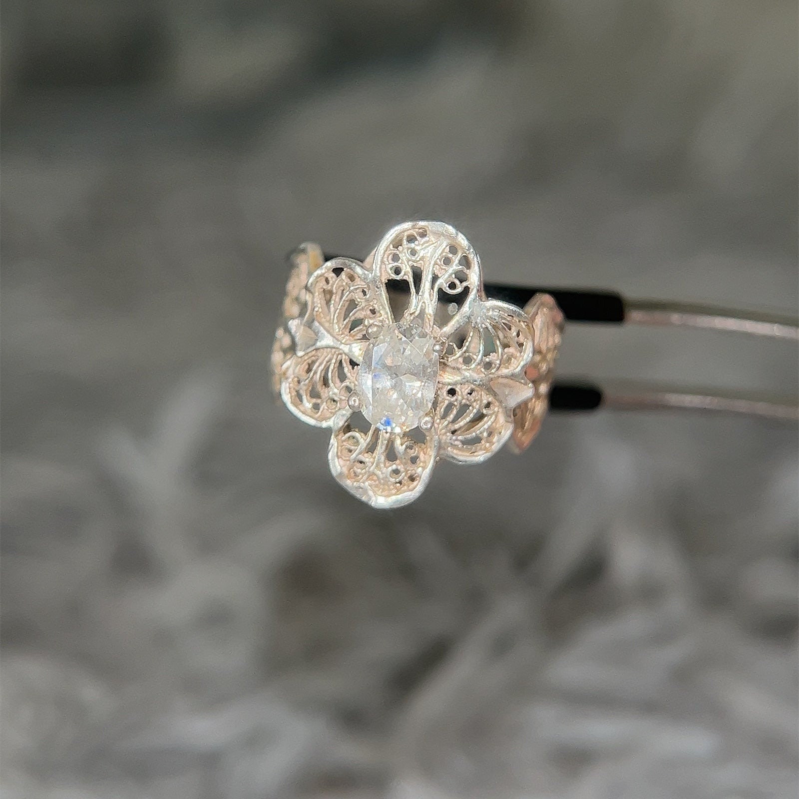 Sterling Silver 925 Sweet Zircon Flower Ring.