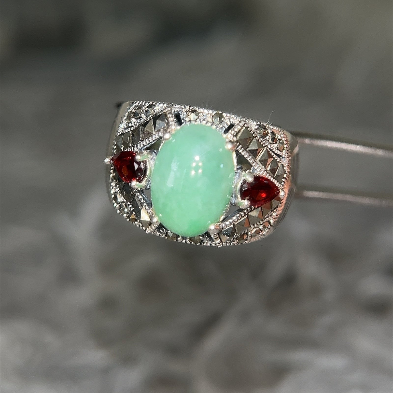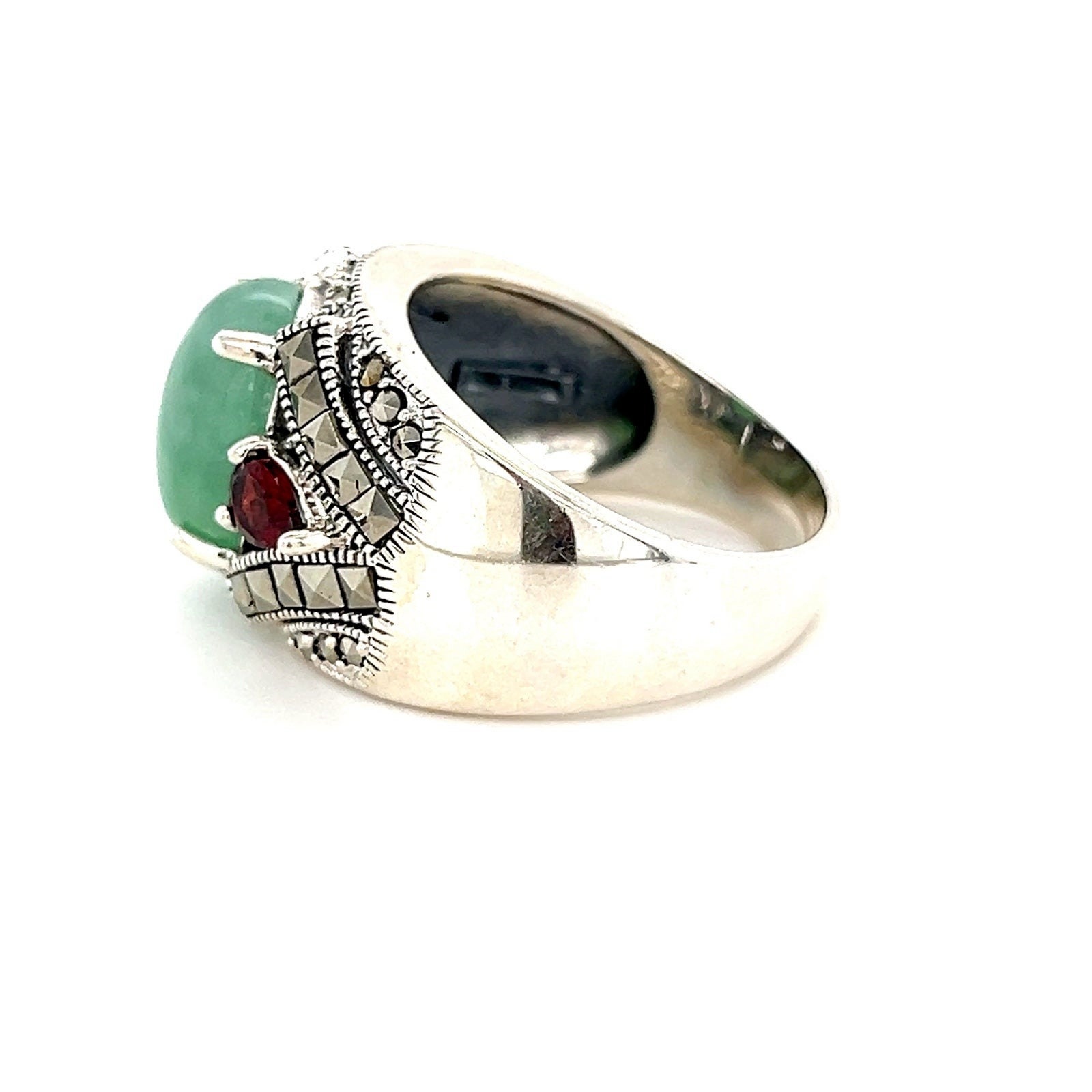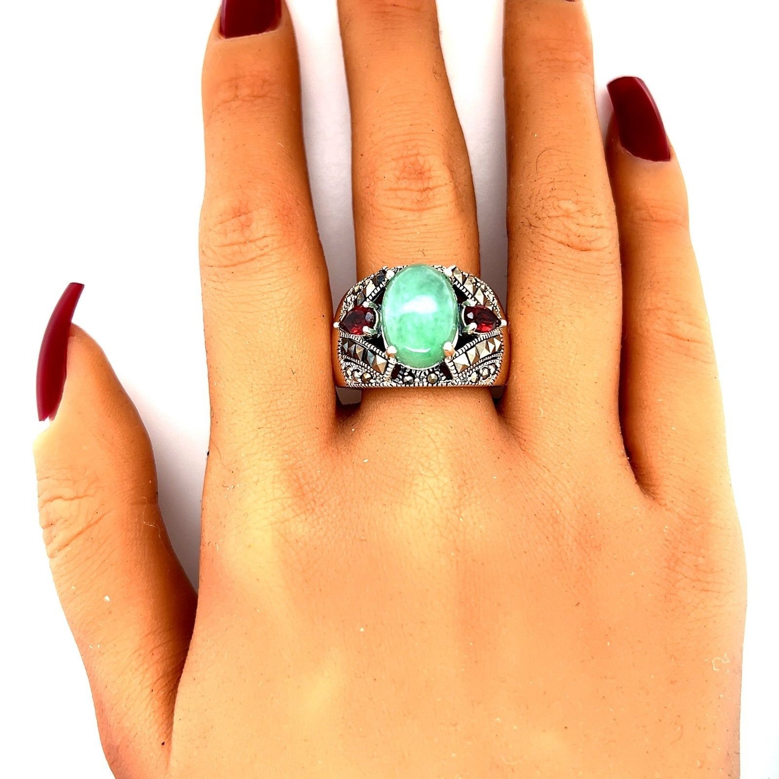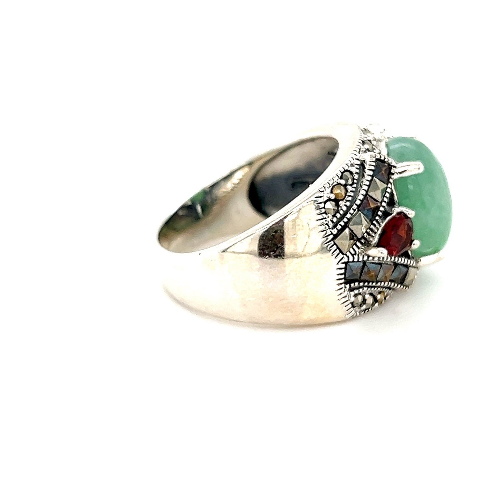 Sterling Silver 925 Jade/Garnet/Marcasite Ring.