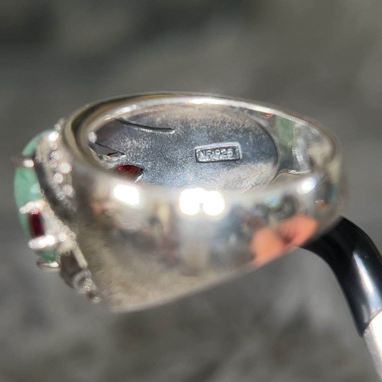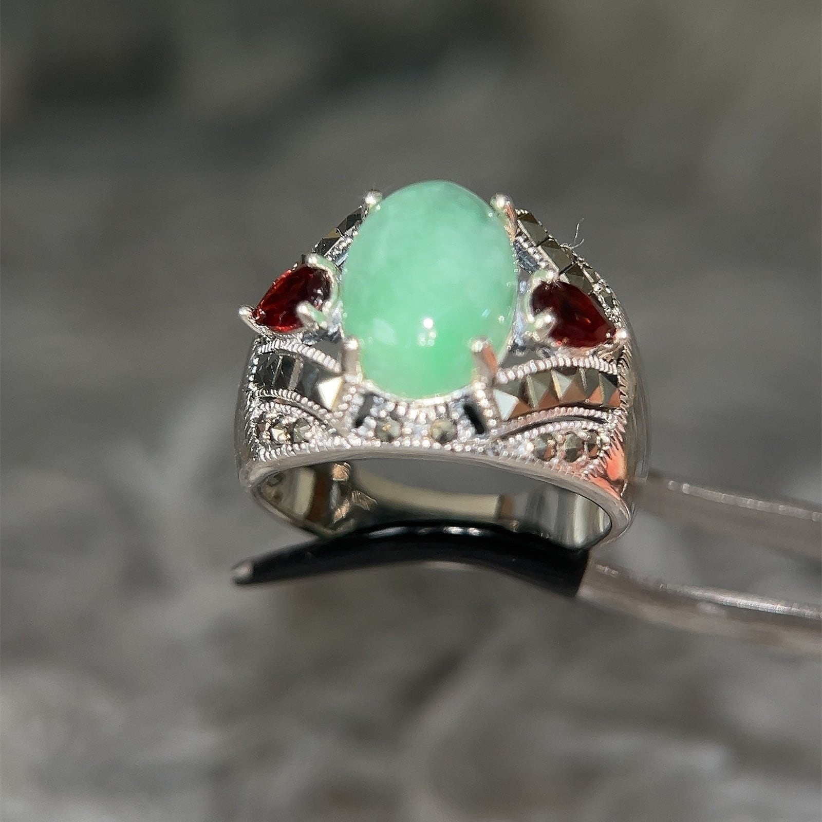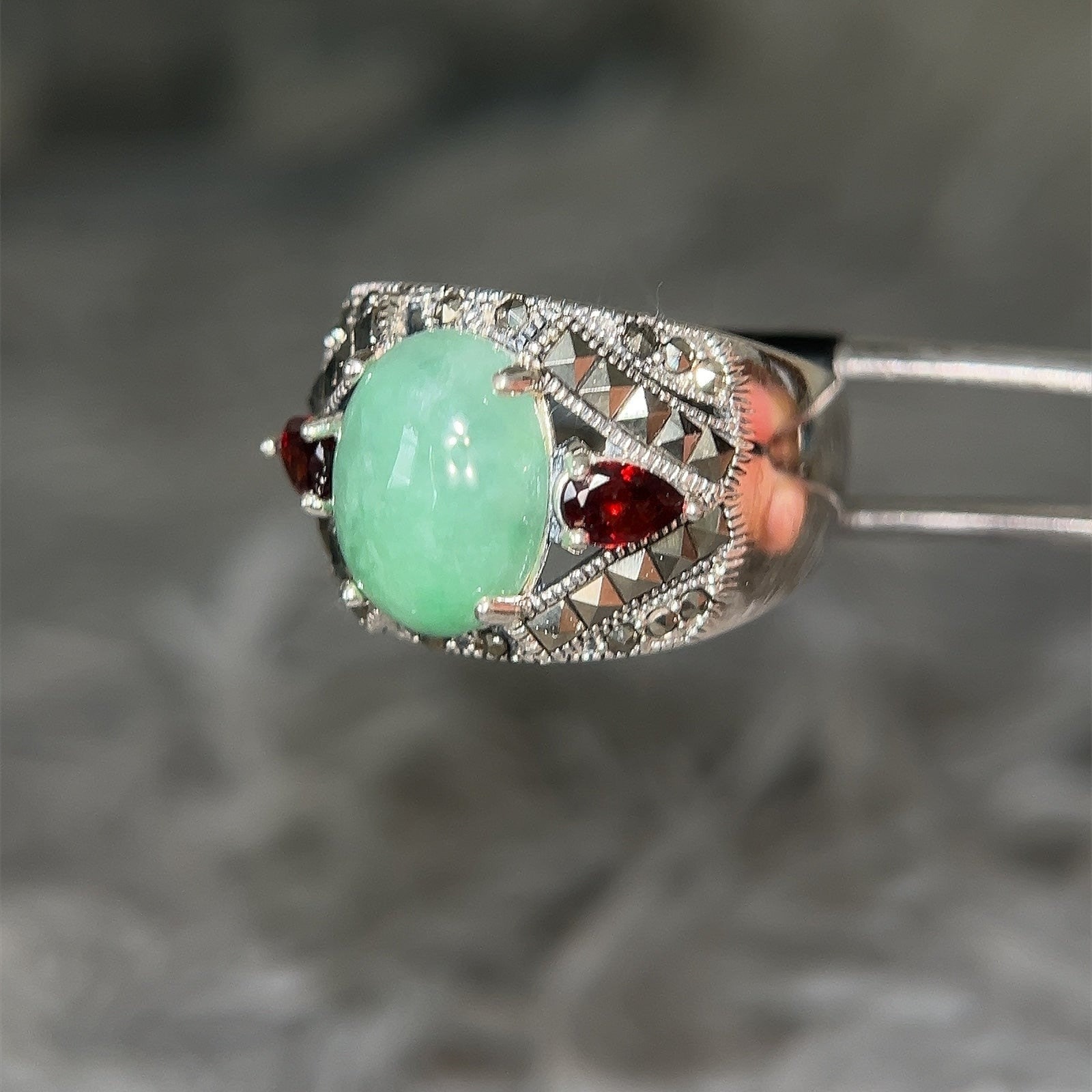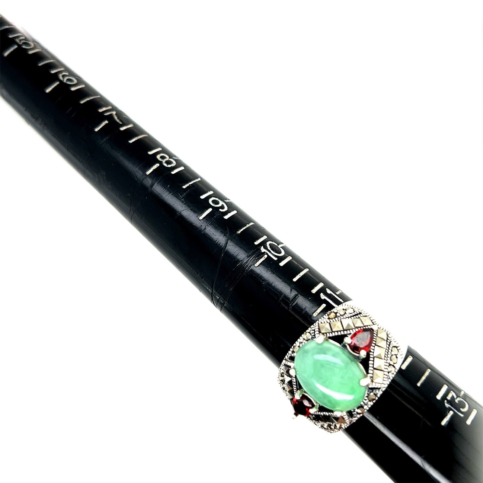 Sterling Silver 925 Jade/Garnet/Marcasite Ring.