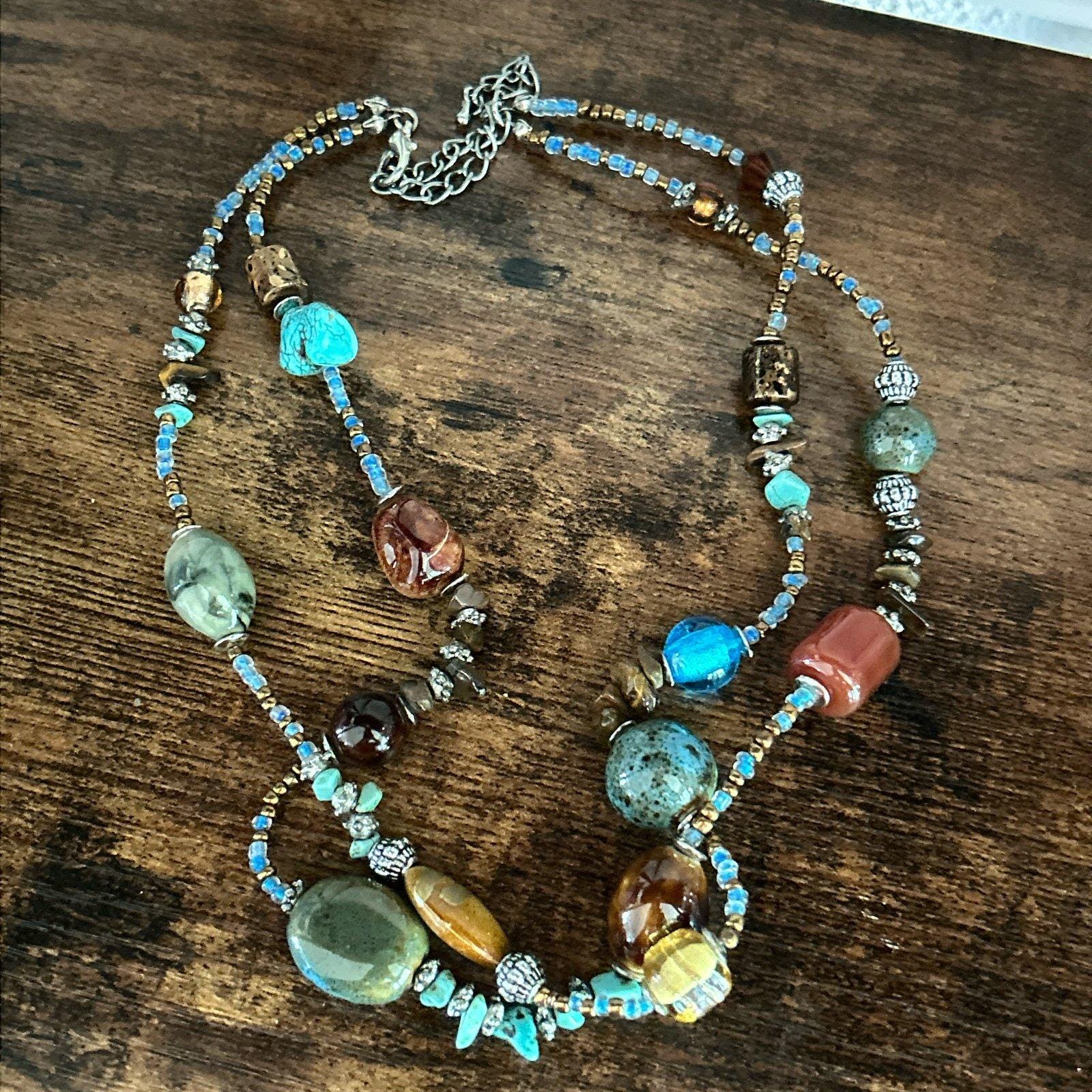 Double Strand Multicolor Necklace Adjustable Costume jewelry Preowned
