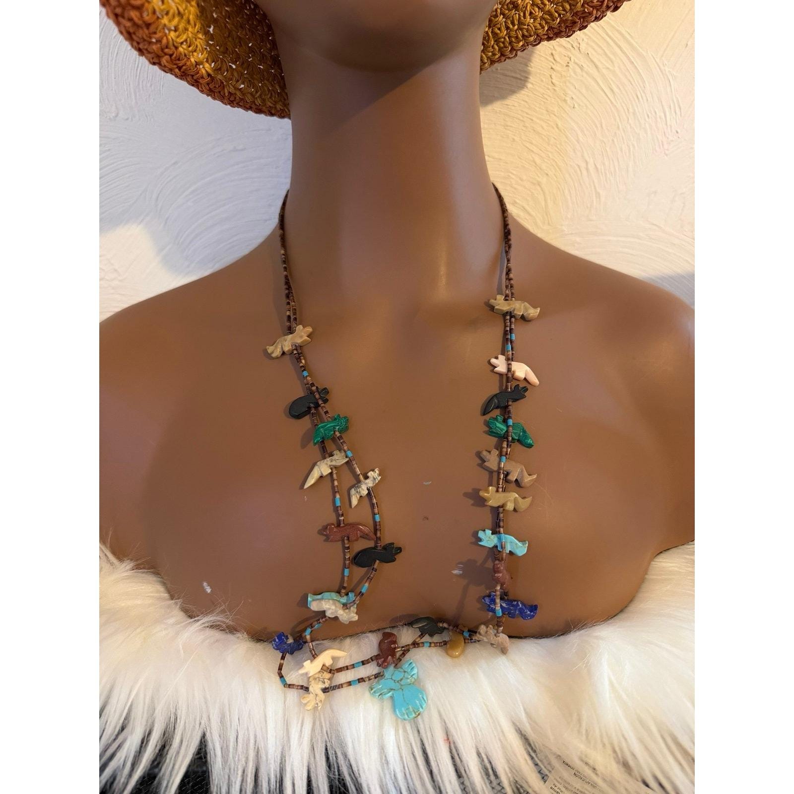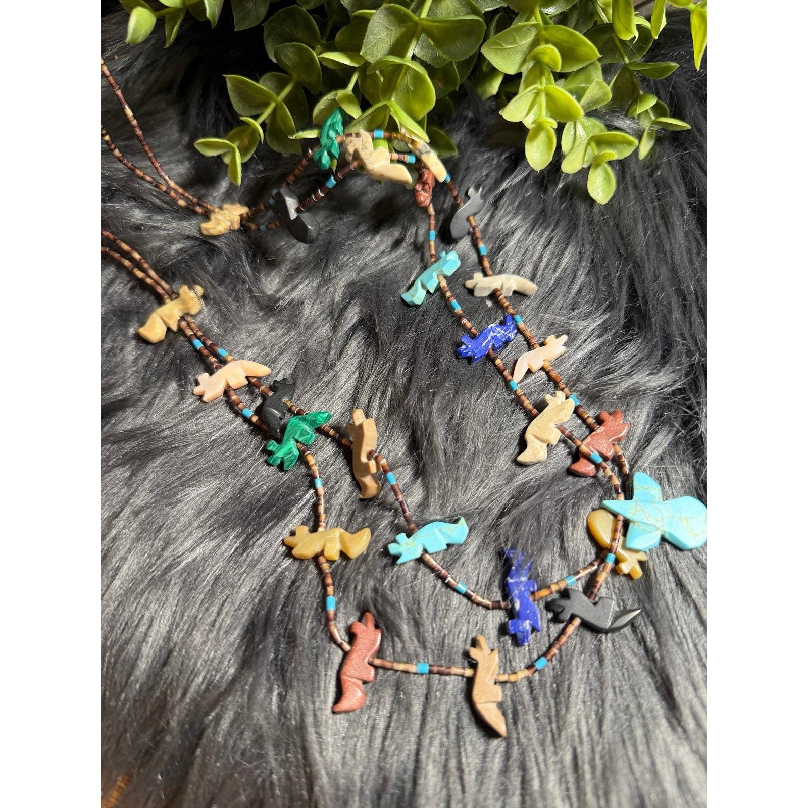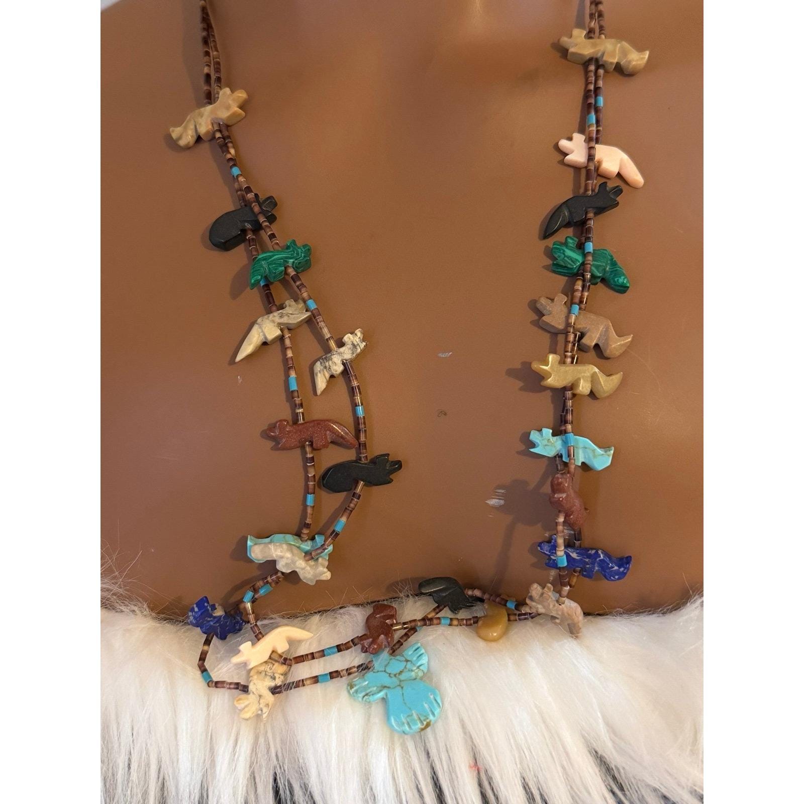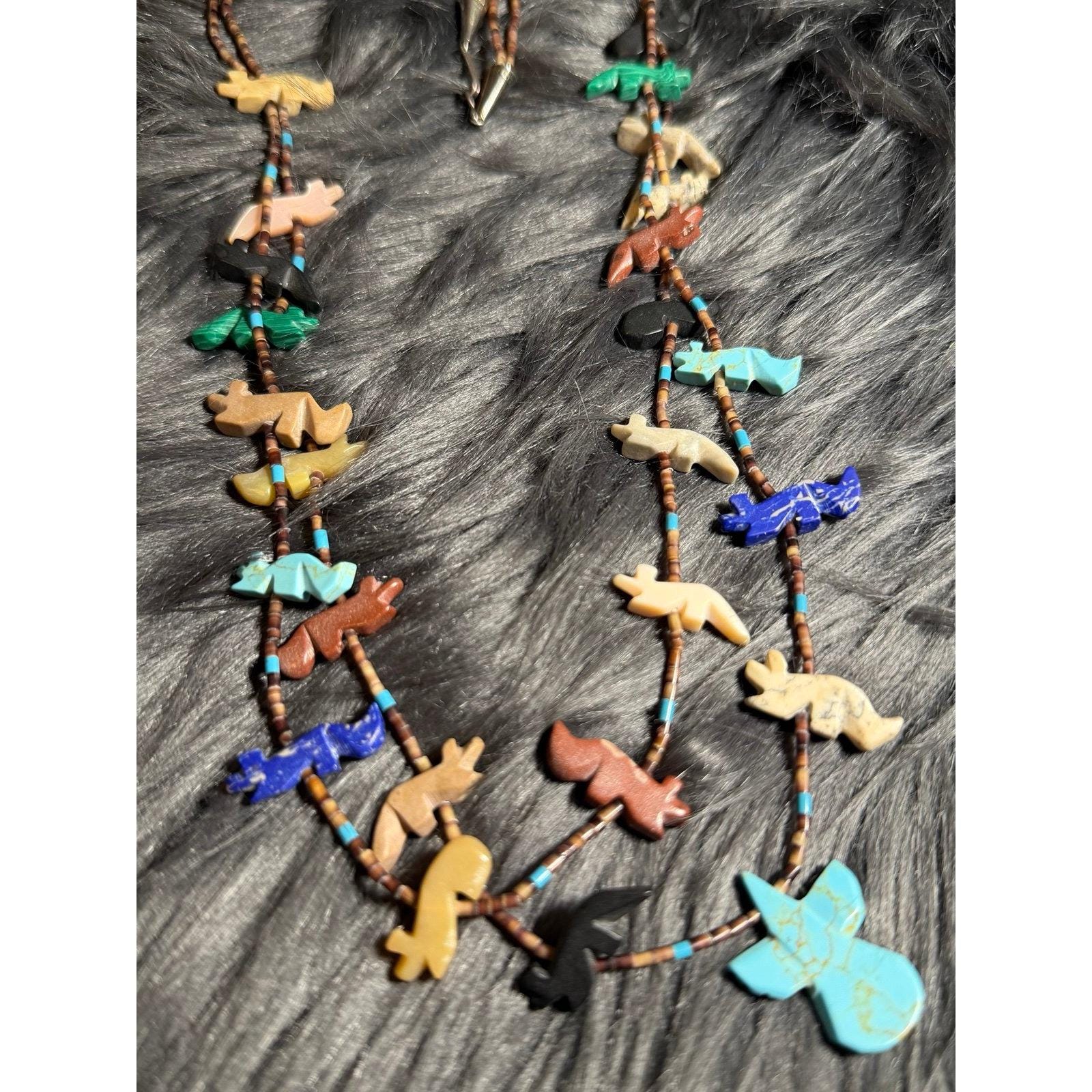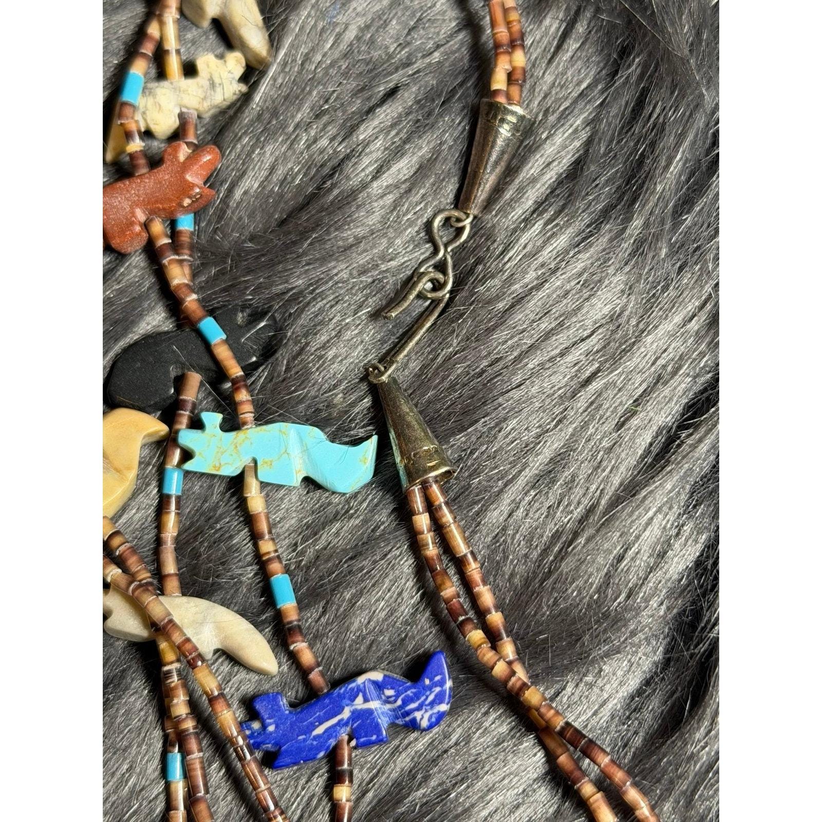 Vintage Zuni Fetish Multicolor Bird Necklace