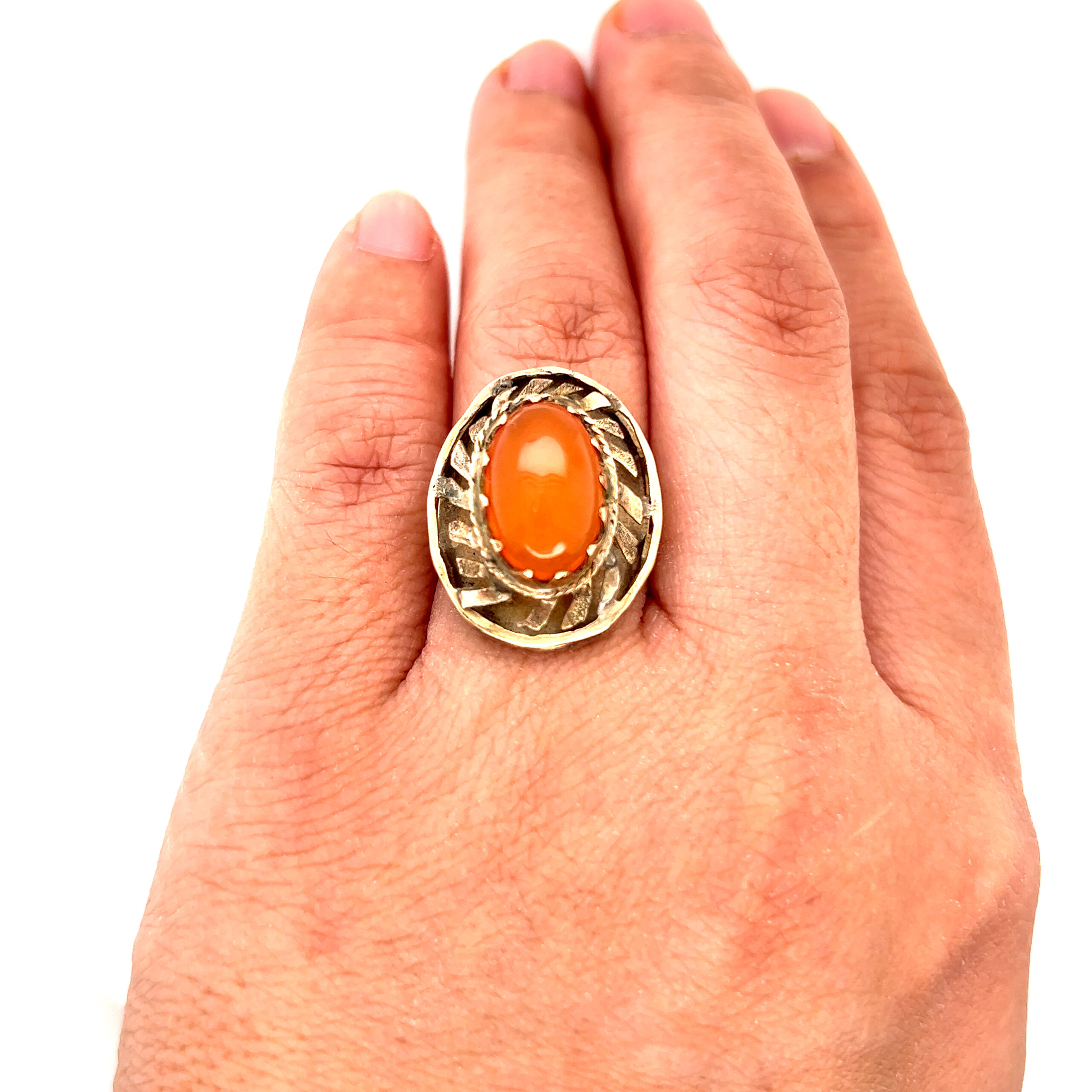 Real 14k Yellow Gold Orange Stone Vintage Ladies Ring, NOT GOLD PLATED OR GOLD FILLED.