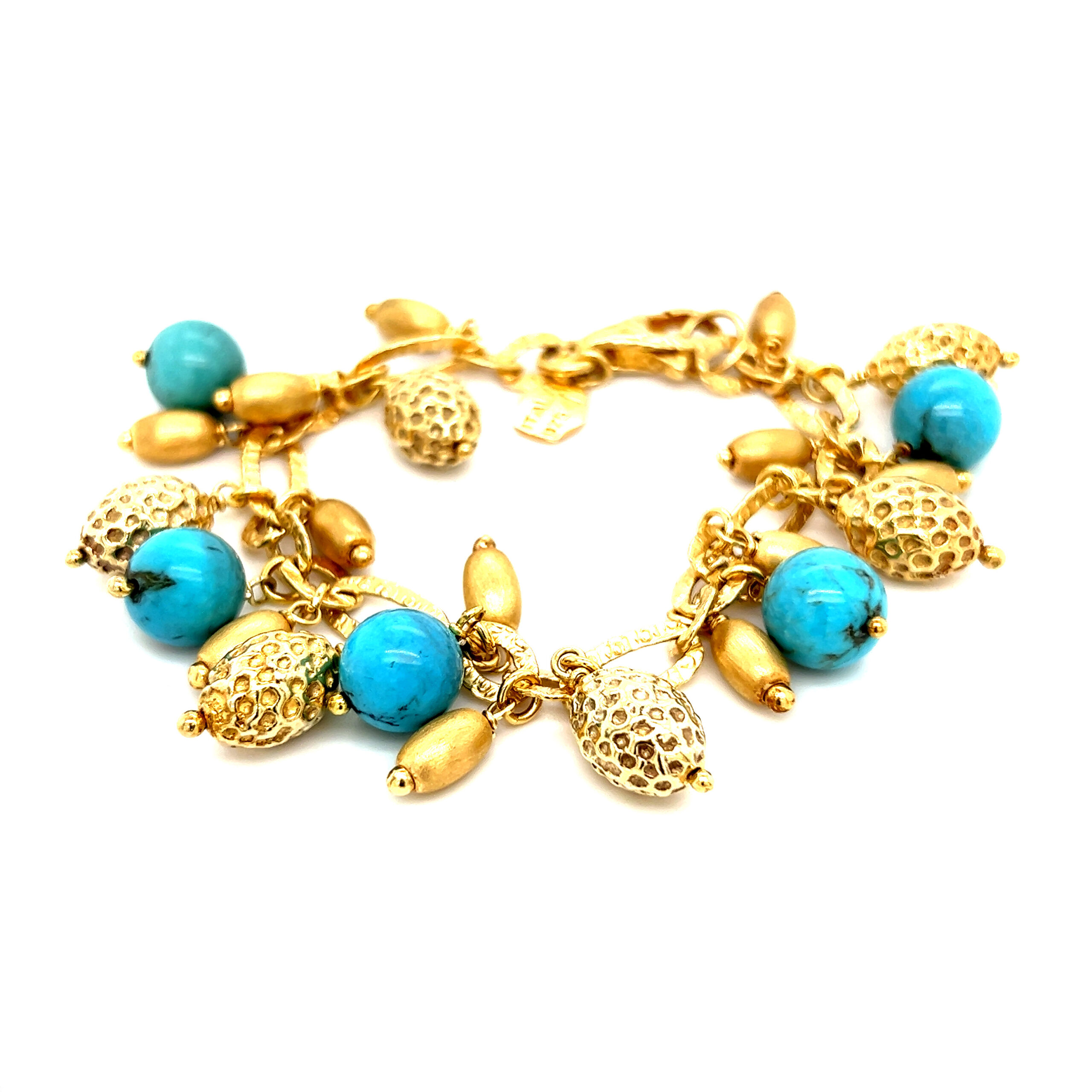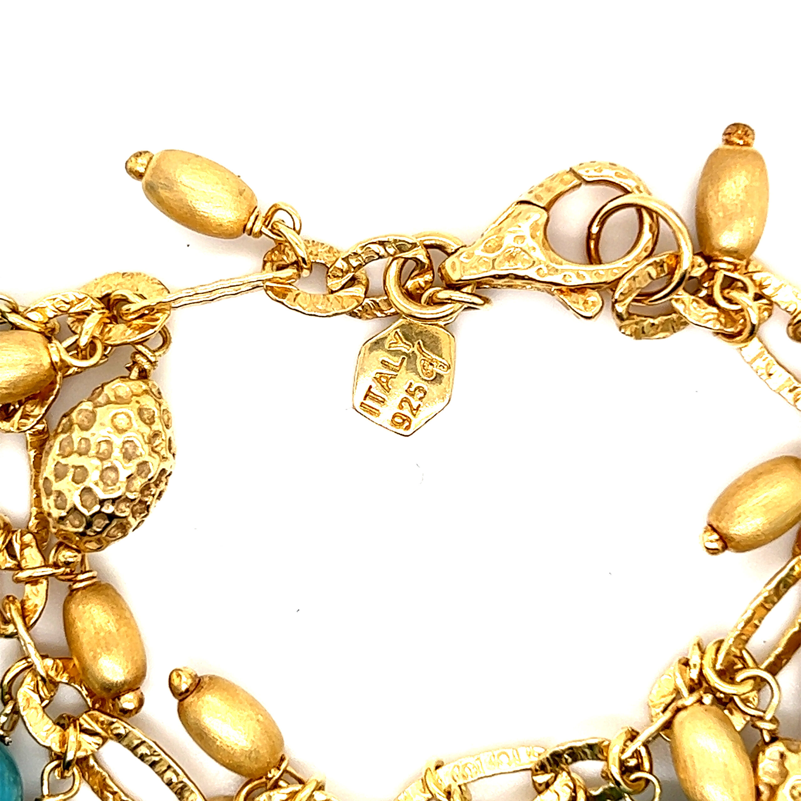 Stunning 925 Vermeil Turquoise and Gold Beads Charms Bracelet