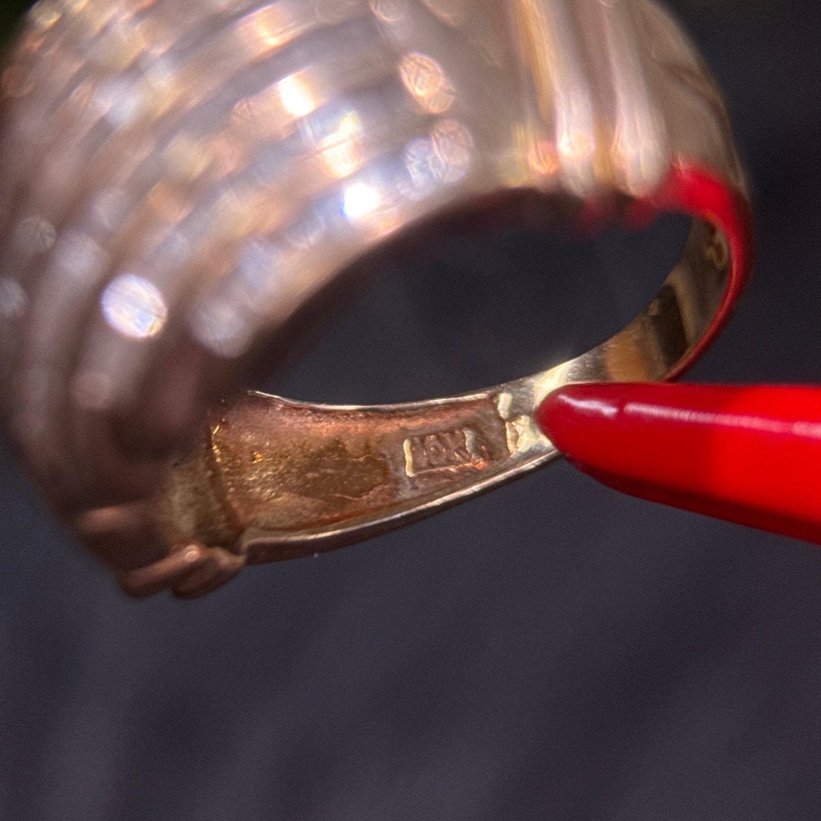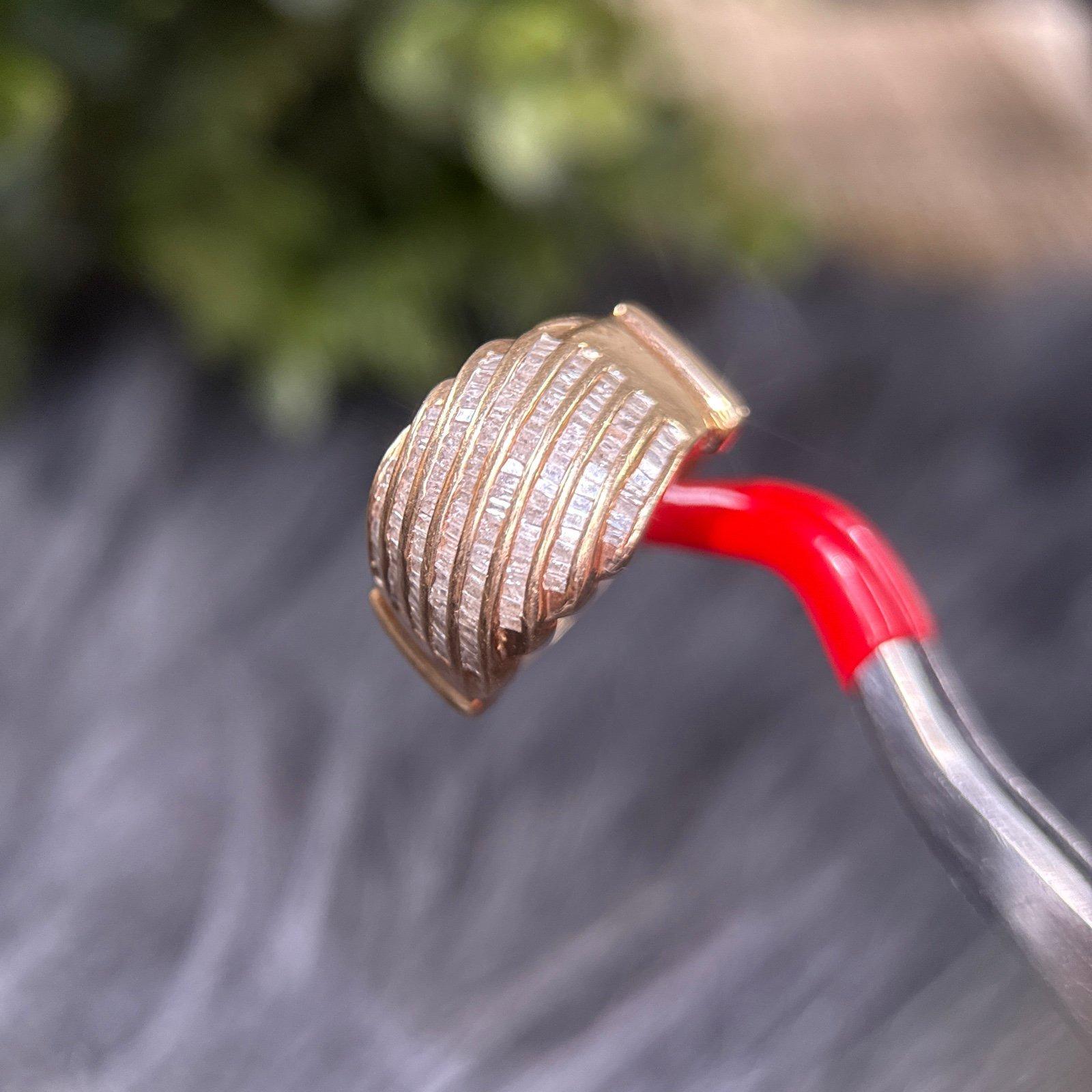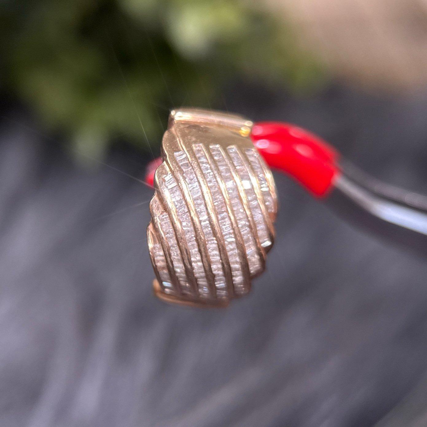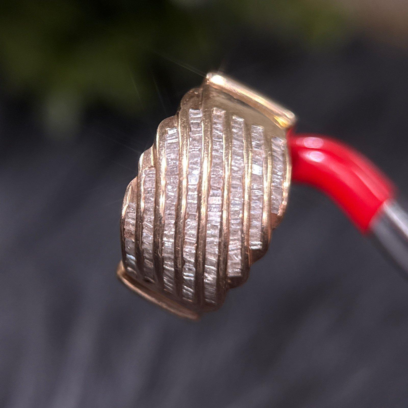 Real 10k Yellow Gold Pave Baguette Diamonds Ring, REAL