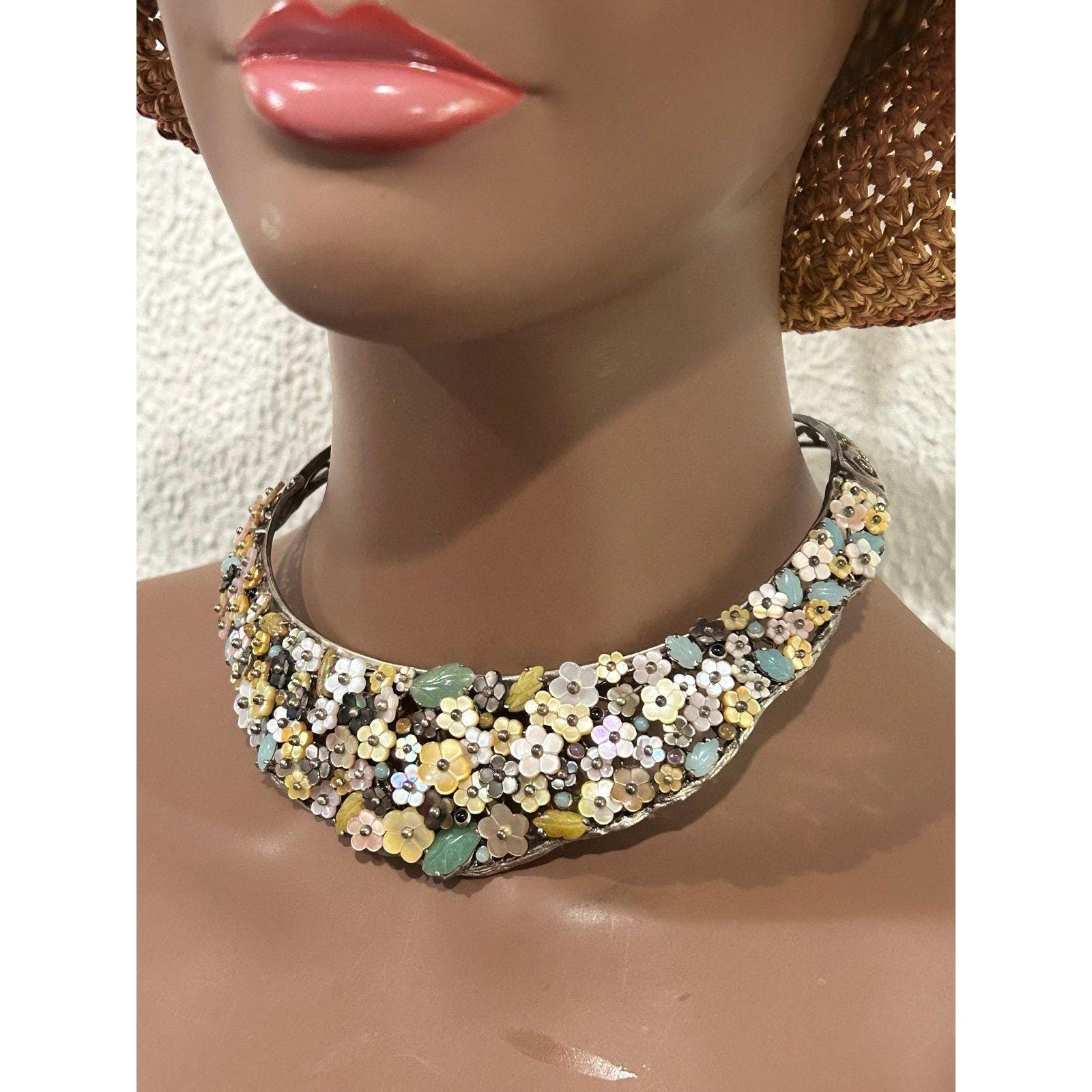 Exquisite 925 Silver Floral Stones Open Collar Necklace