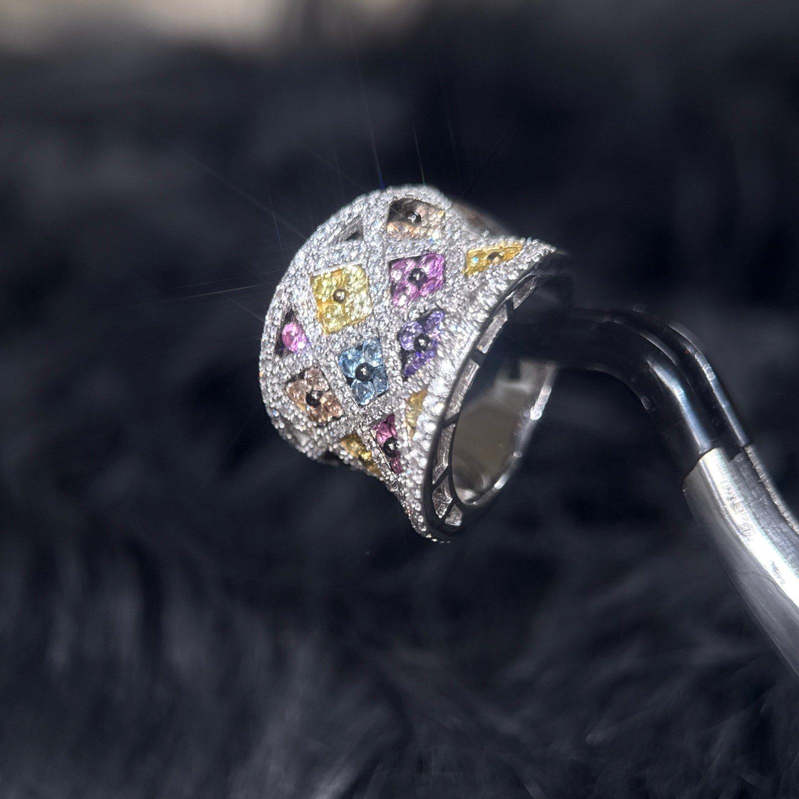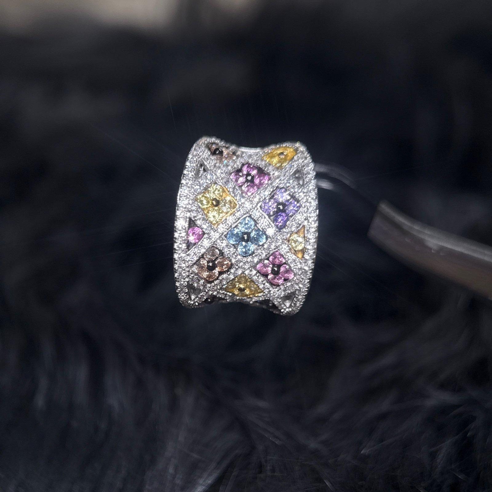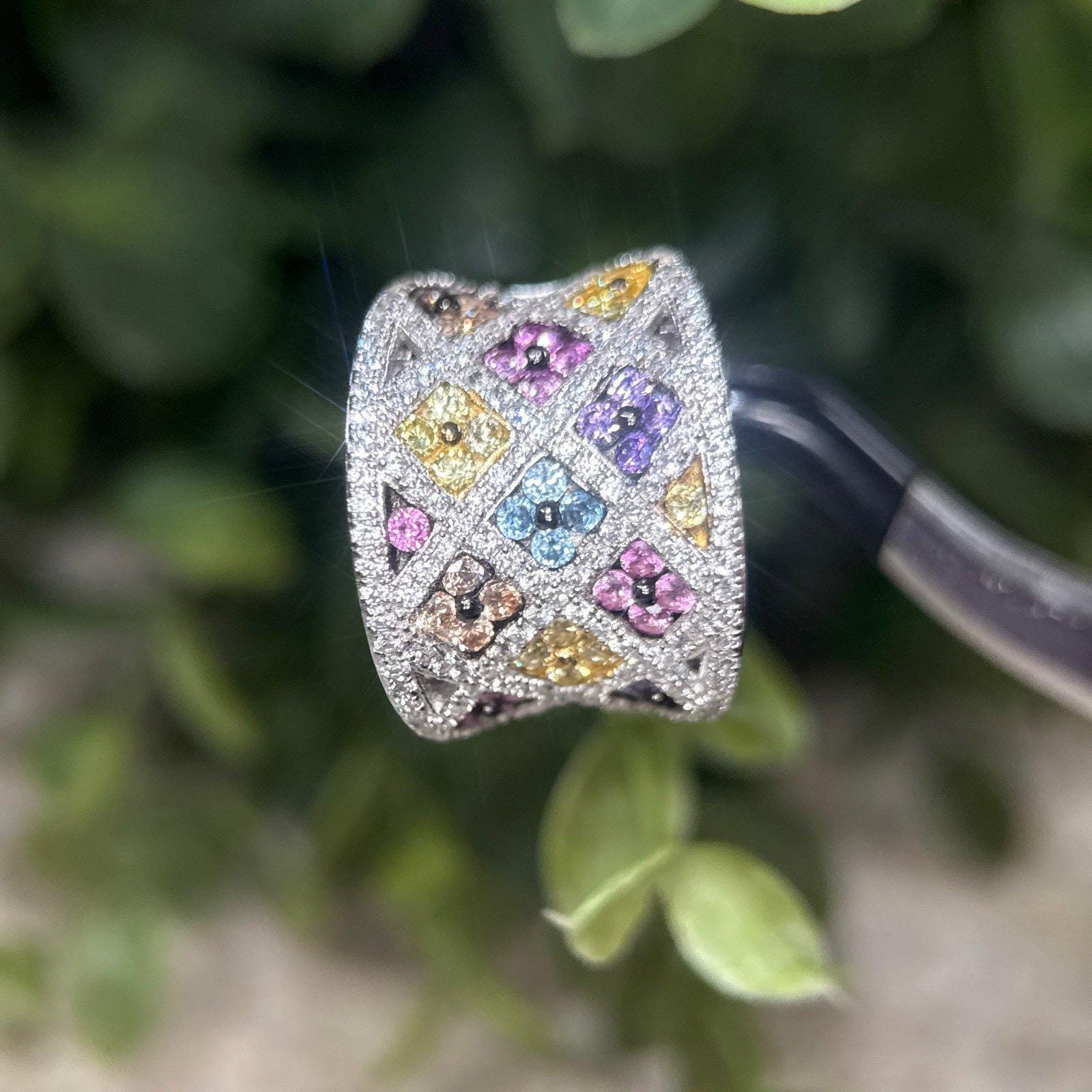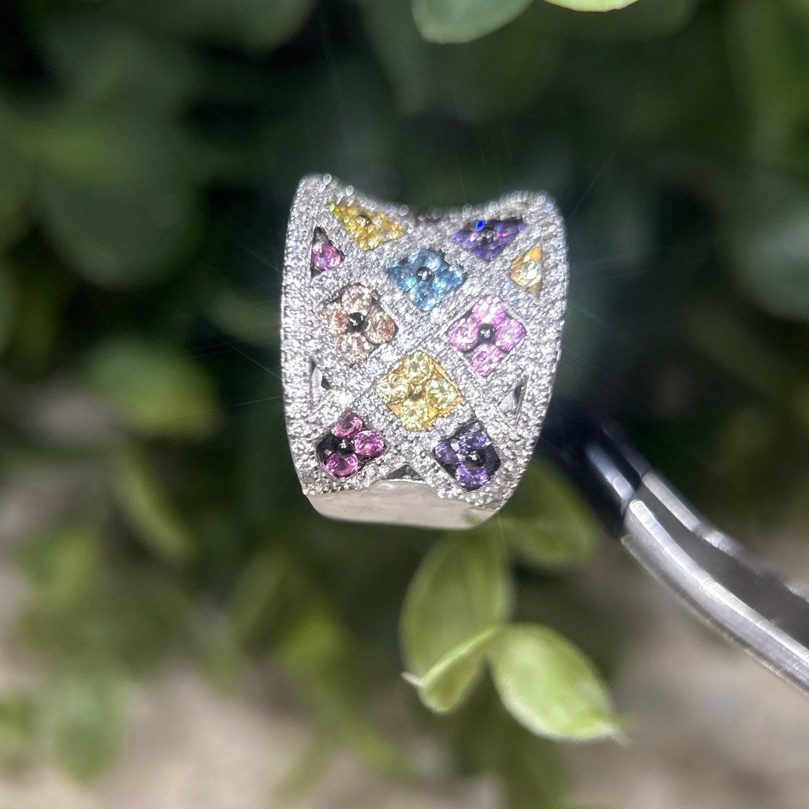 Stunning 925 Silver Multicolor Flower Gemstones Ring.