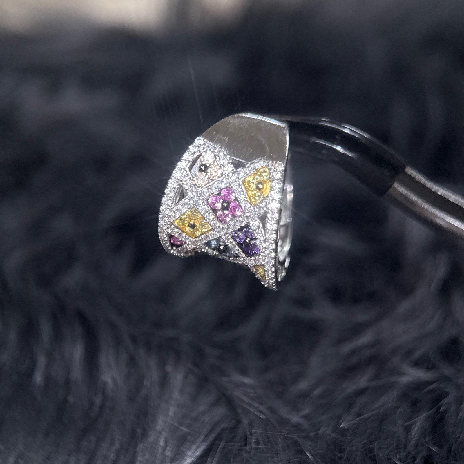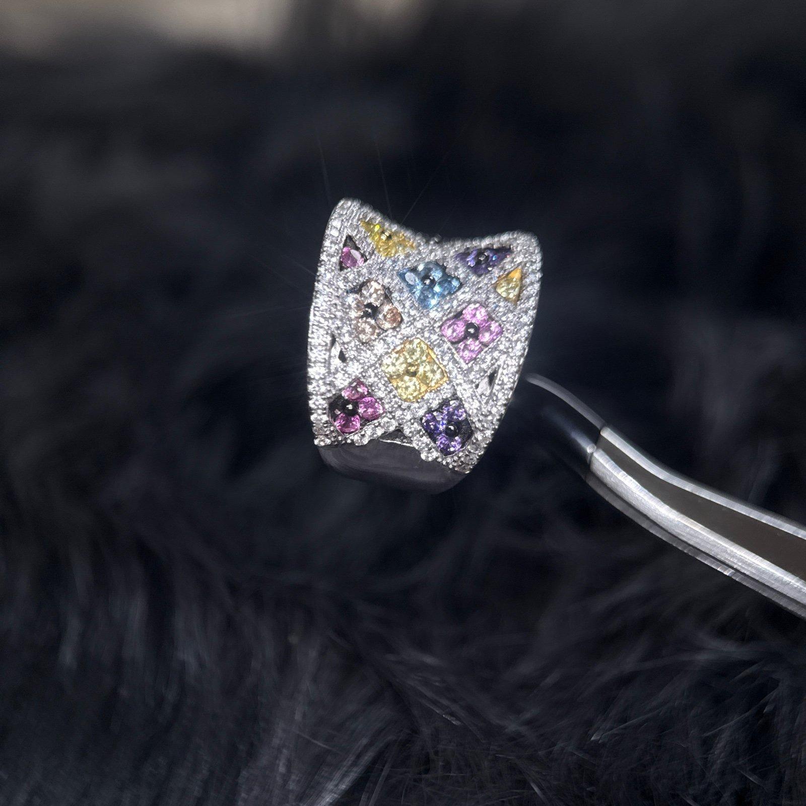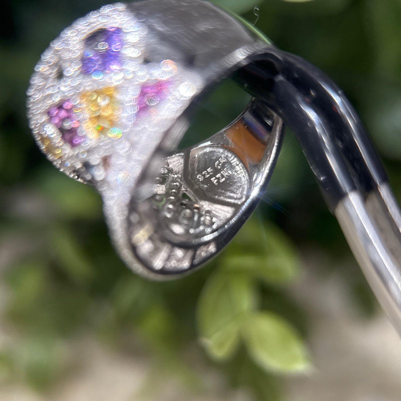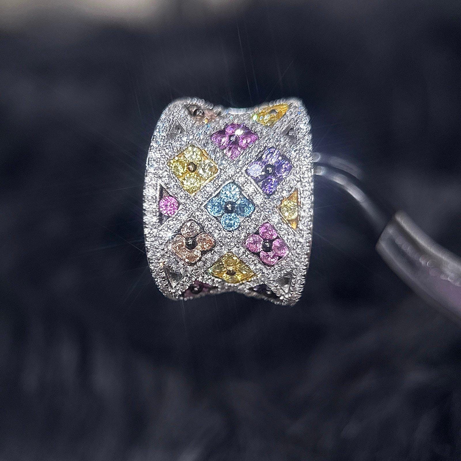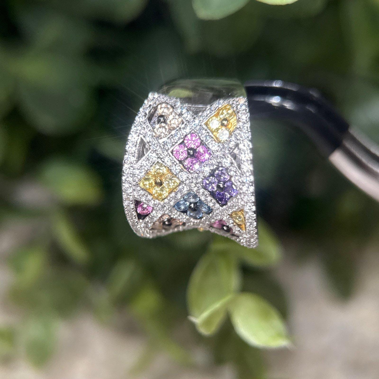 Stunning 925 Silver Multicolor Flower Gemstones Ring.