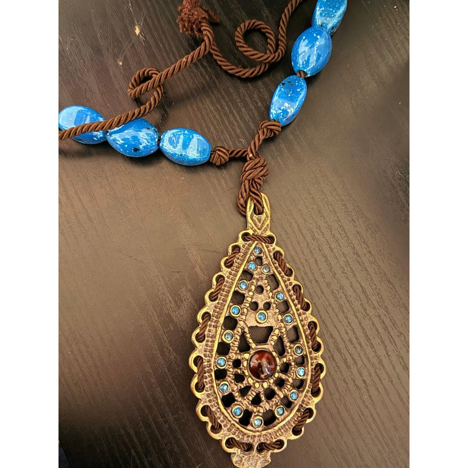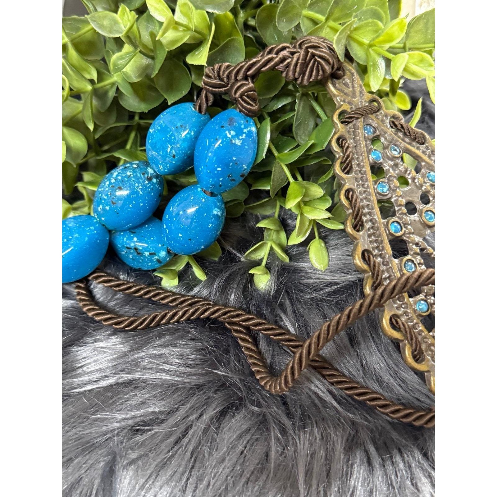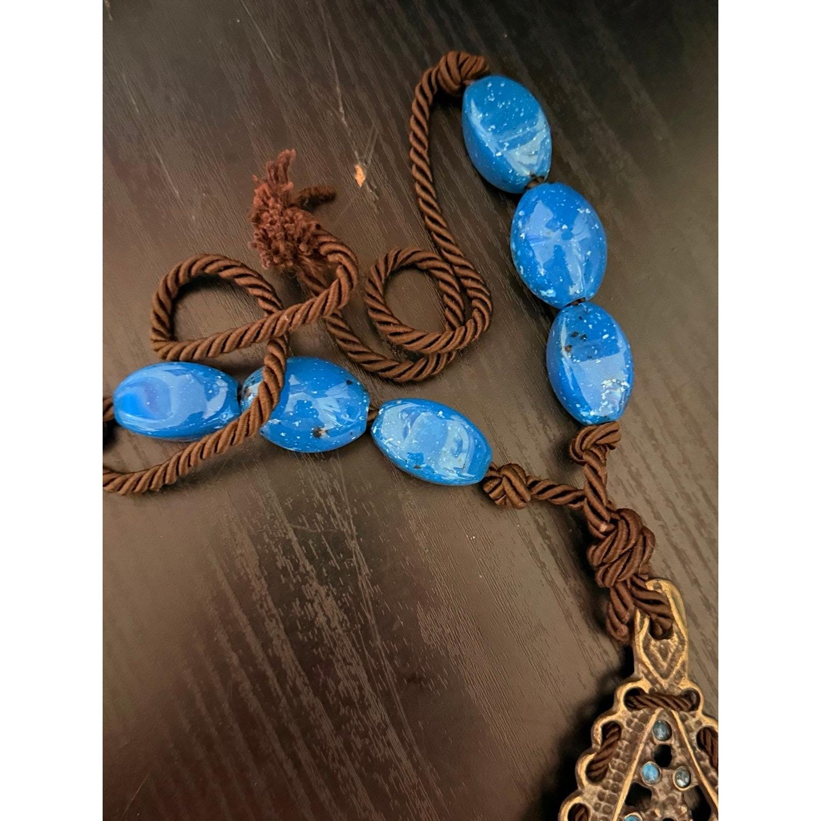 Be the first to review “Extra Large Pendant Blue Beads Brown Cord Necklace”