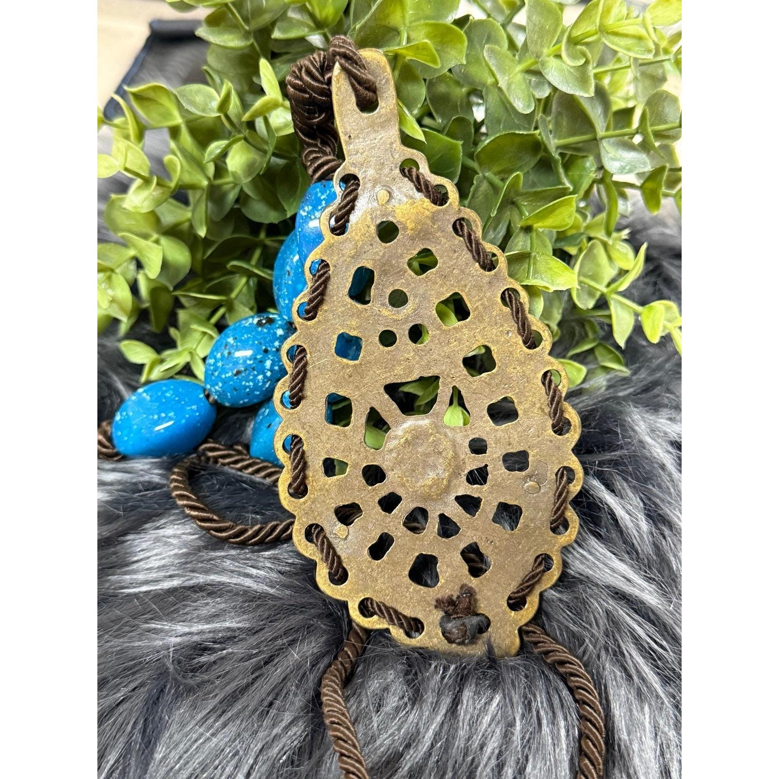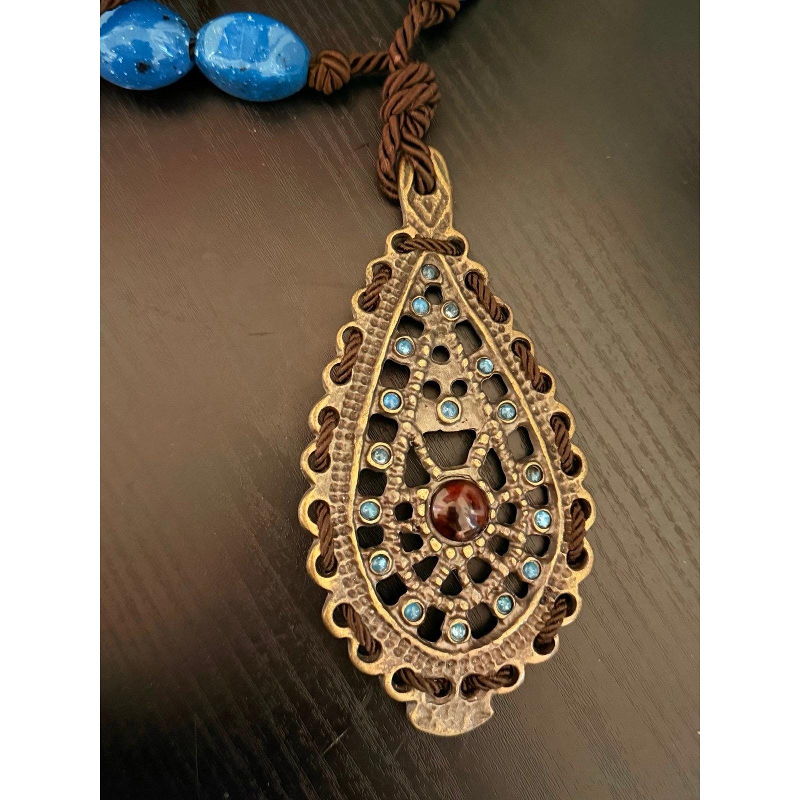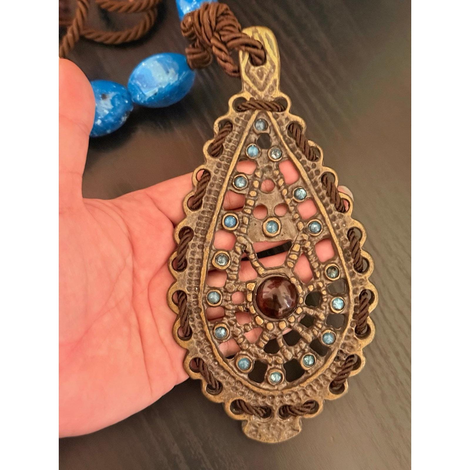 Be the first to review “Extra Large Pendant Blue Beads Brown Cord Necklace”