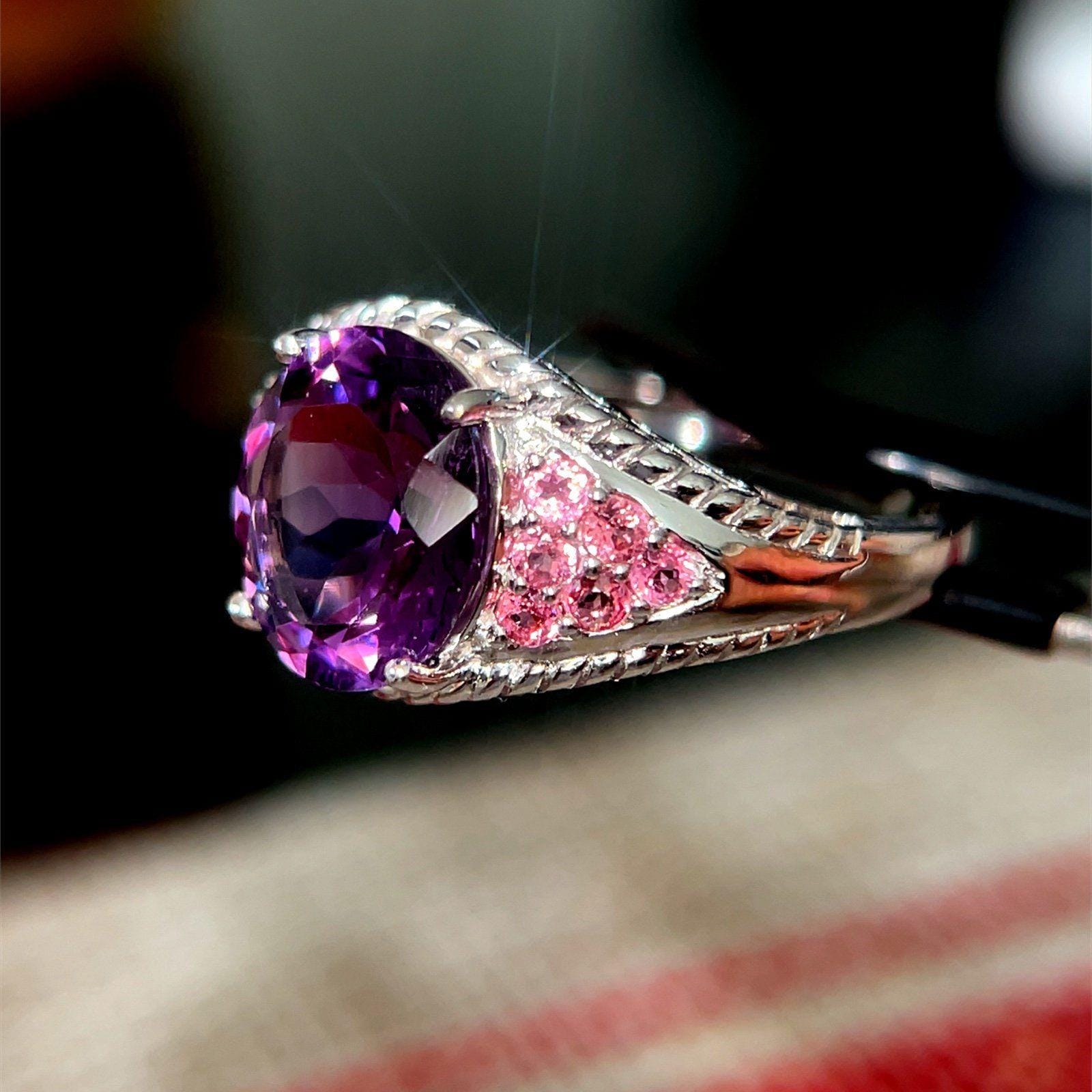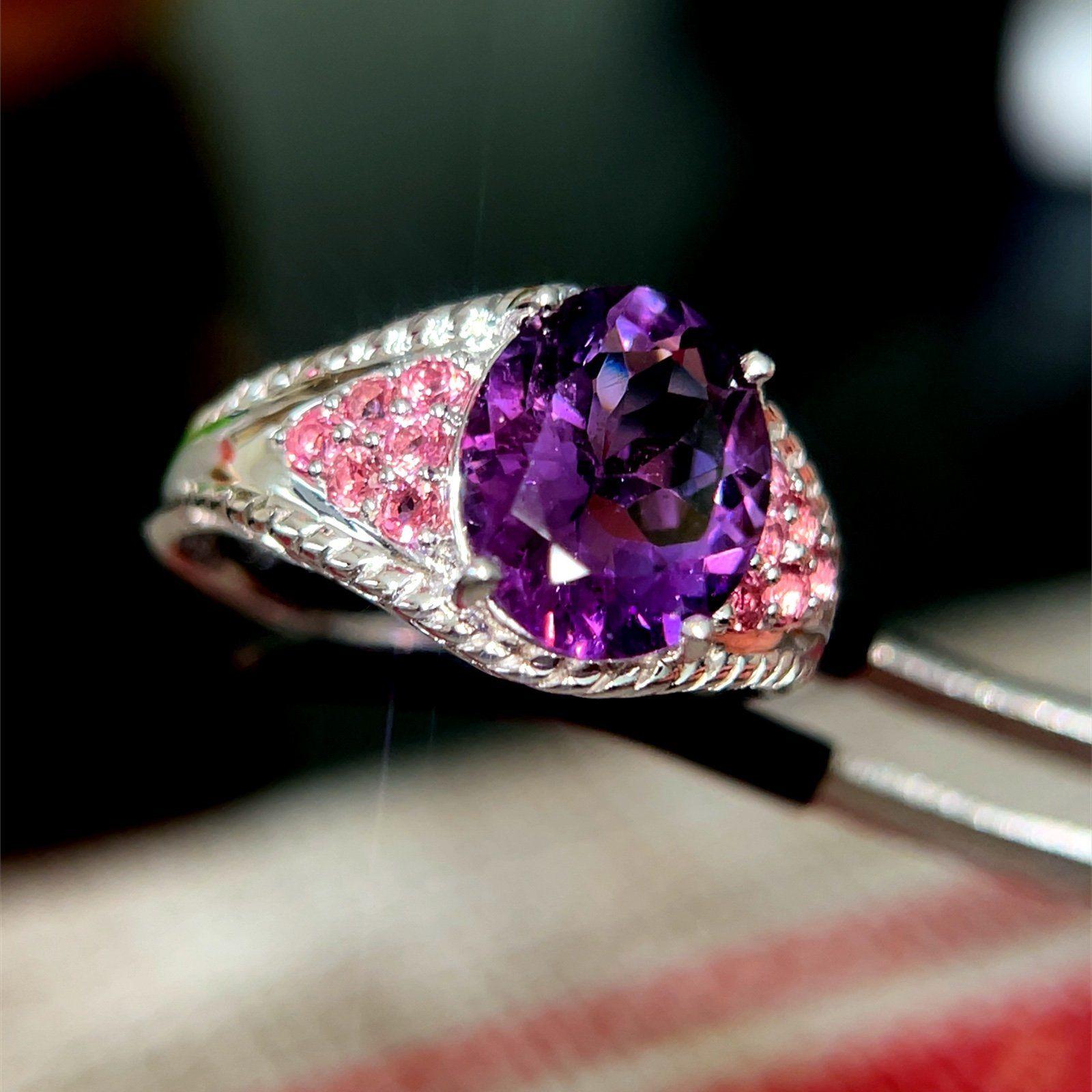 Gorgeous Sterling Silver 925 Amethyst/Pink Stones Ring