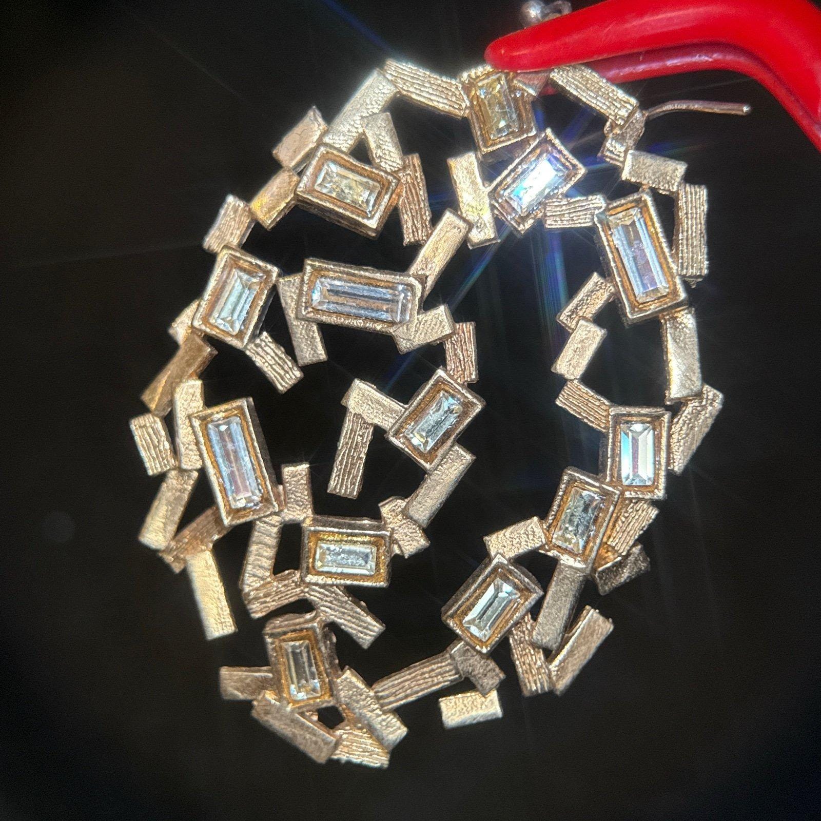 Stunning geometric crystals statement earringsSee photo for sizeLovelyAll stones are intact